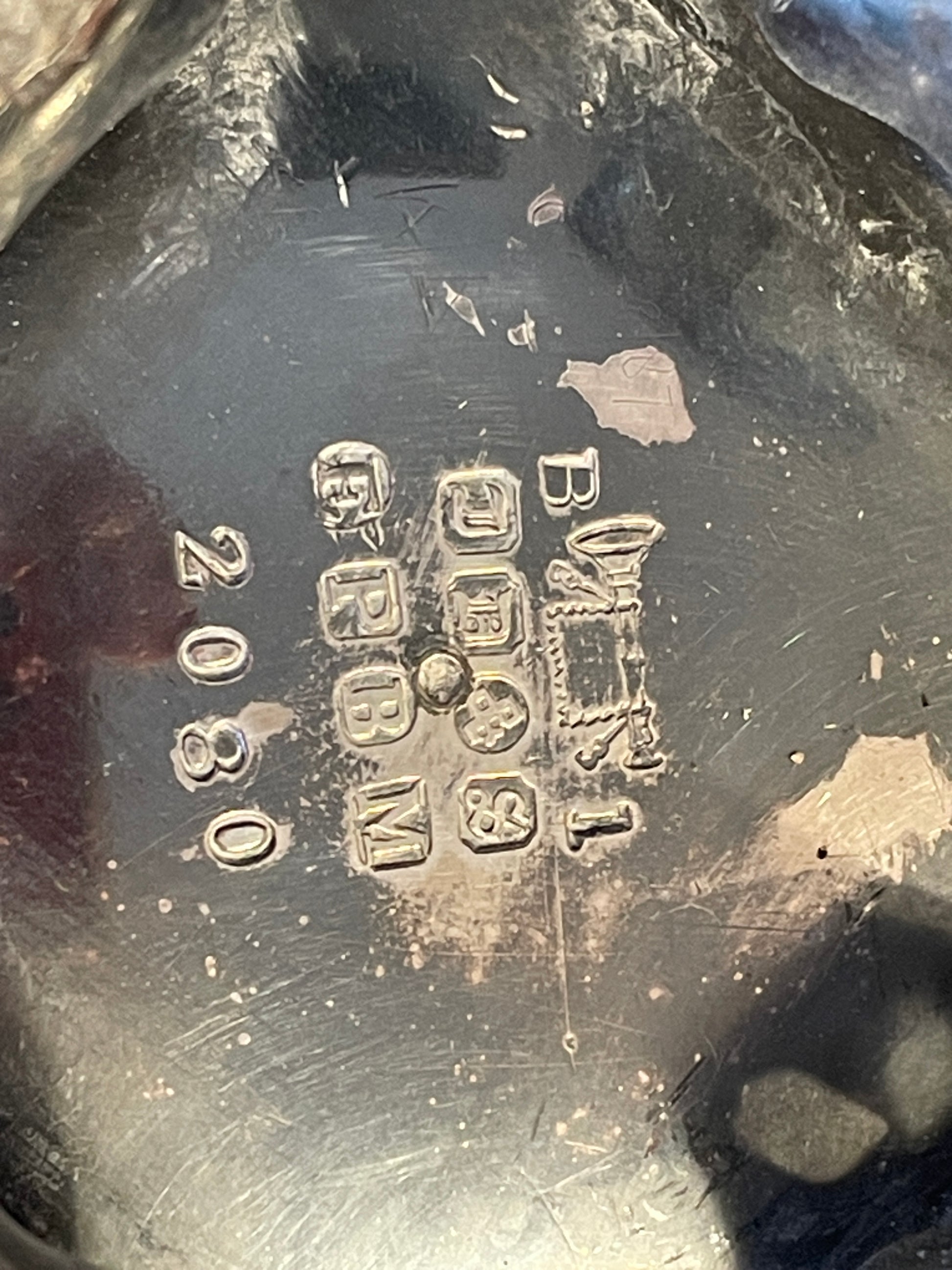The underside is stamped with the firm’s trumpet trademark and JD&S EPBM 2080, confirming it as a James Dixon & Sons design made from Electro Plated Britannia Metal.