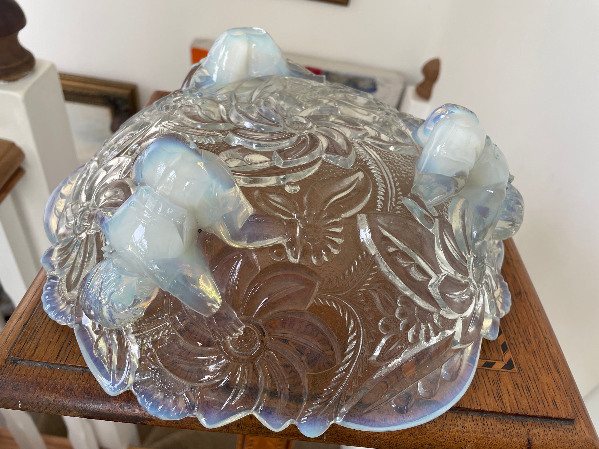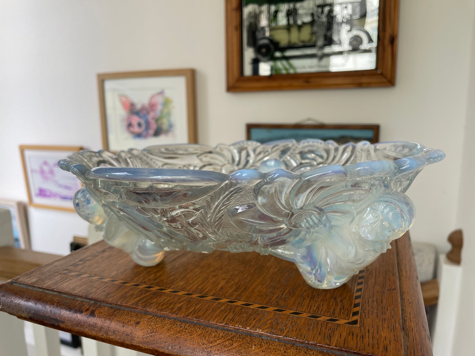 Art Deco Opalescent Glass Bowl by Samuel Reich, Czech 1930s, Three Elf Supports, Collectible Centrepiece