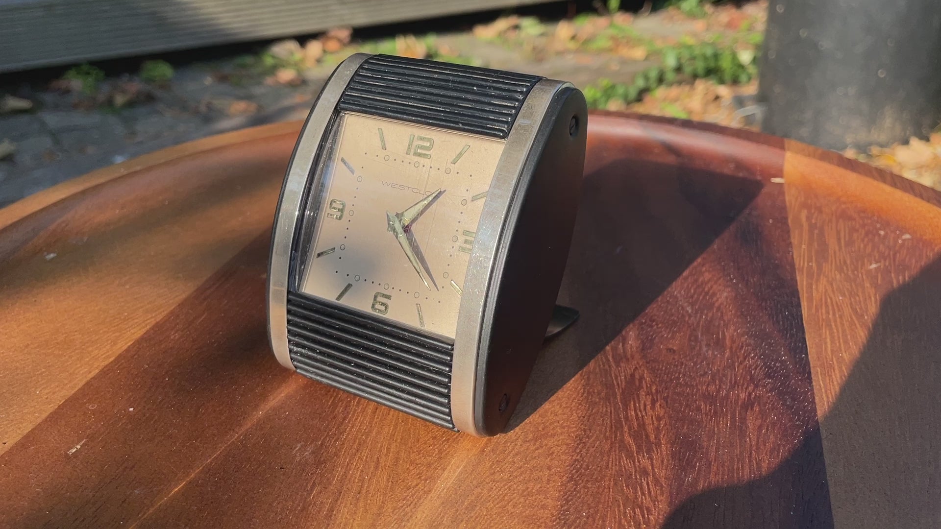 Art Deco Westclox Tambour front travel alarm clock 1960's