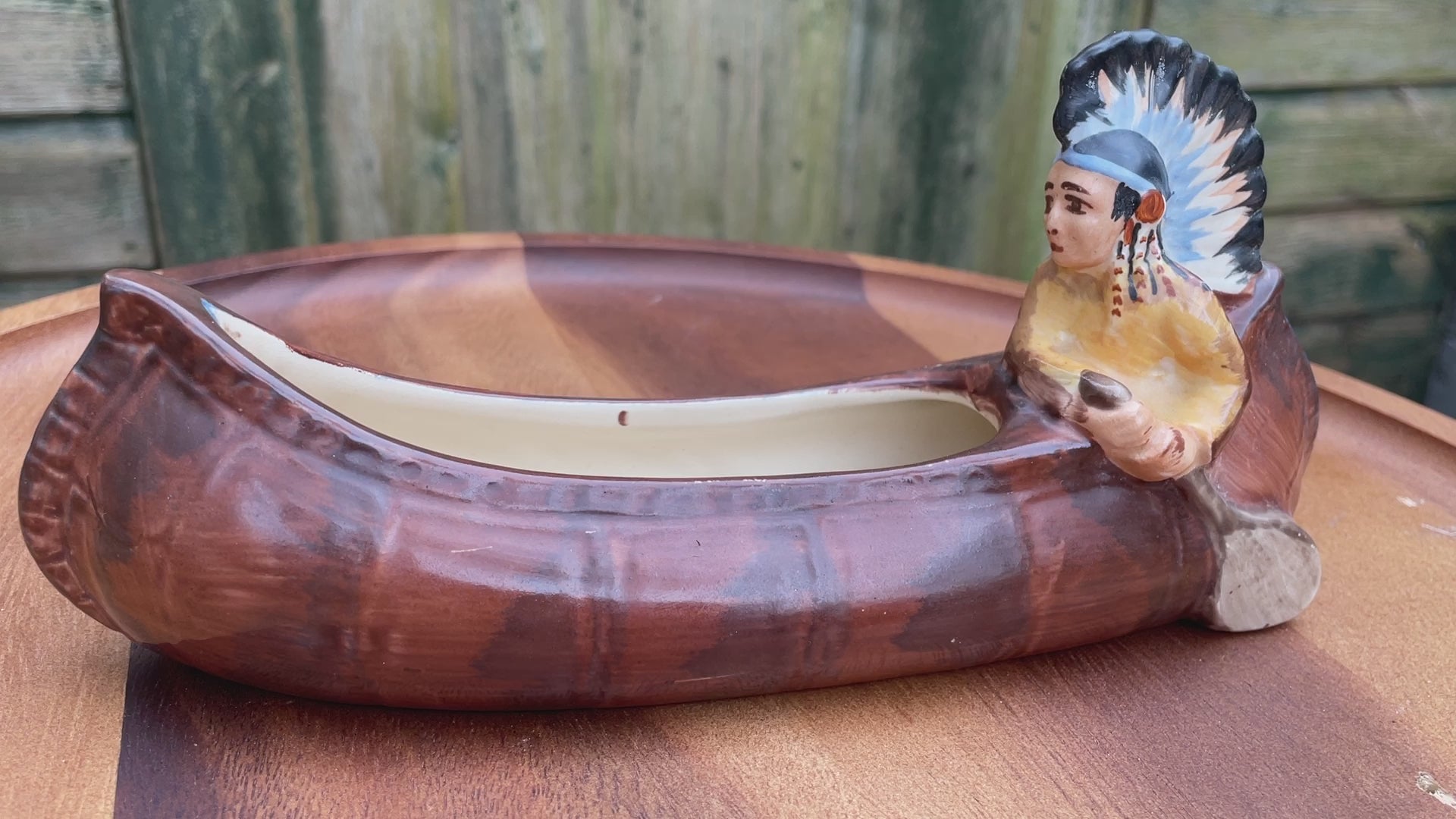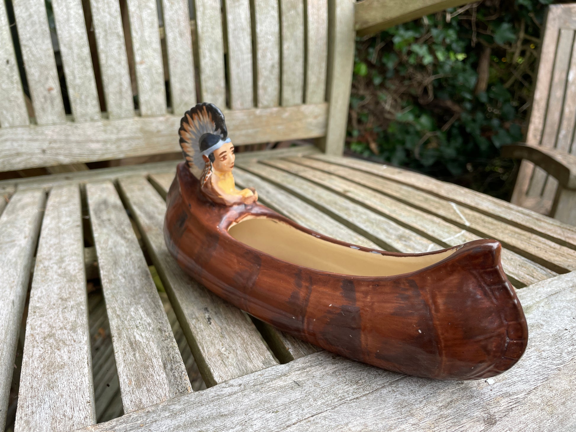 Burleigh Ware vintage 1930's native American Indian in a canoe