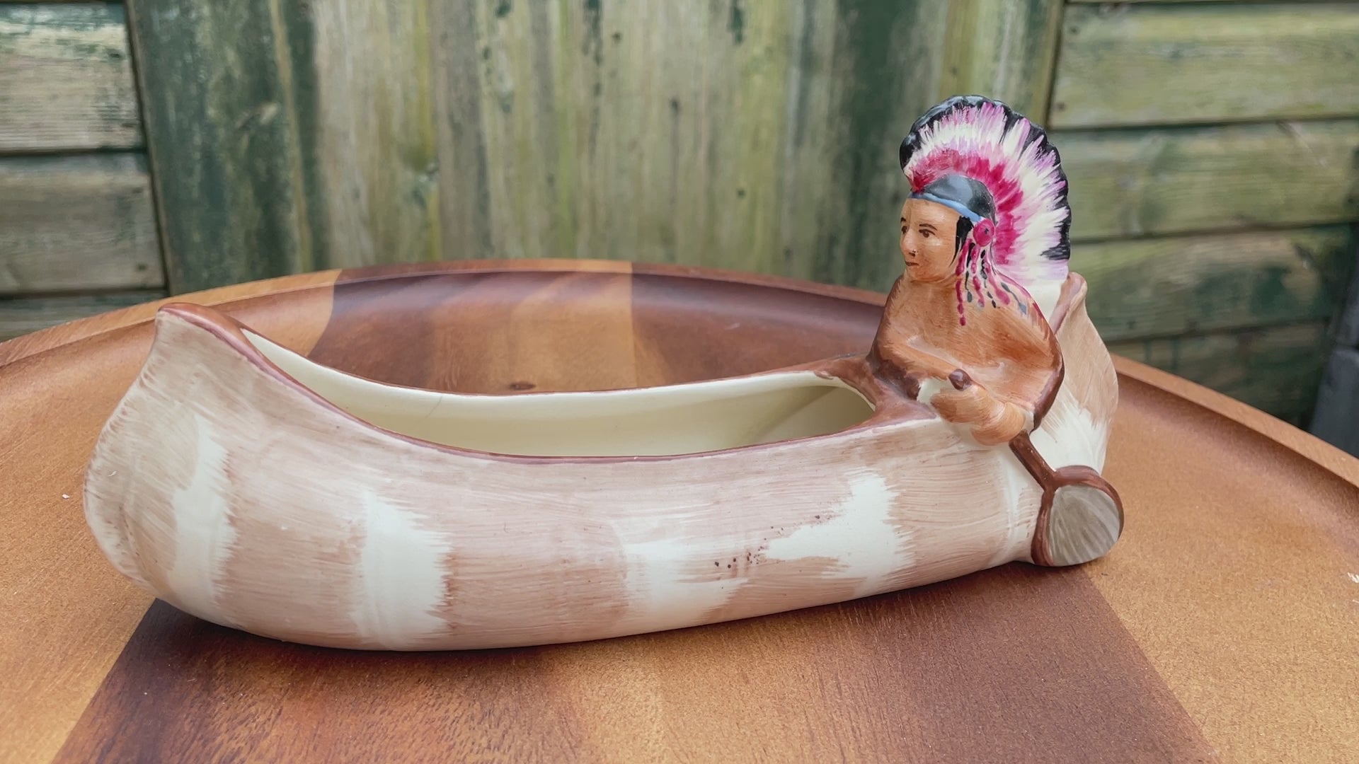 Burleigh Ware vintage 1930's native American Indian in a canoe
