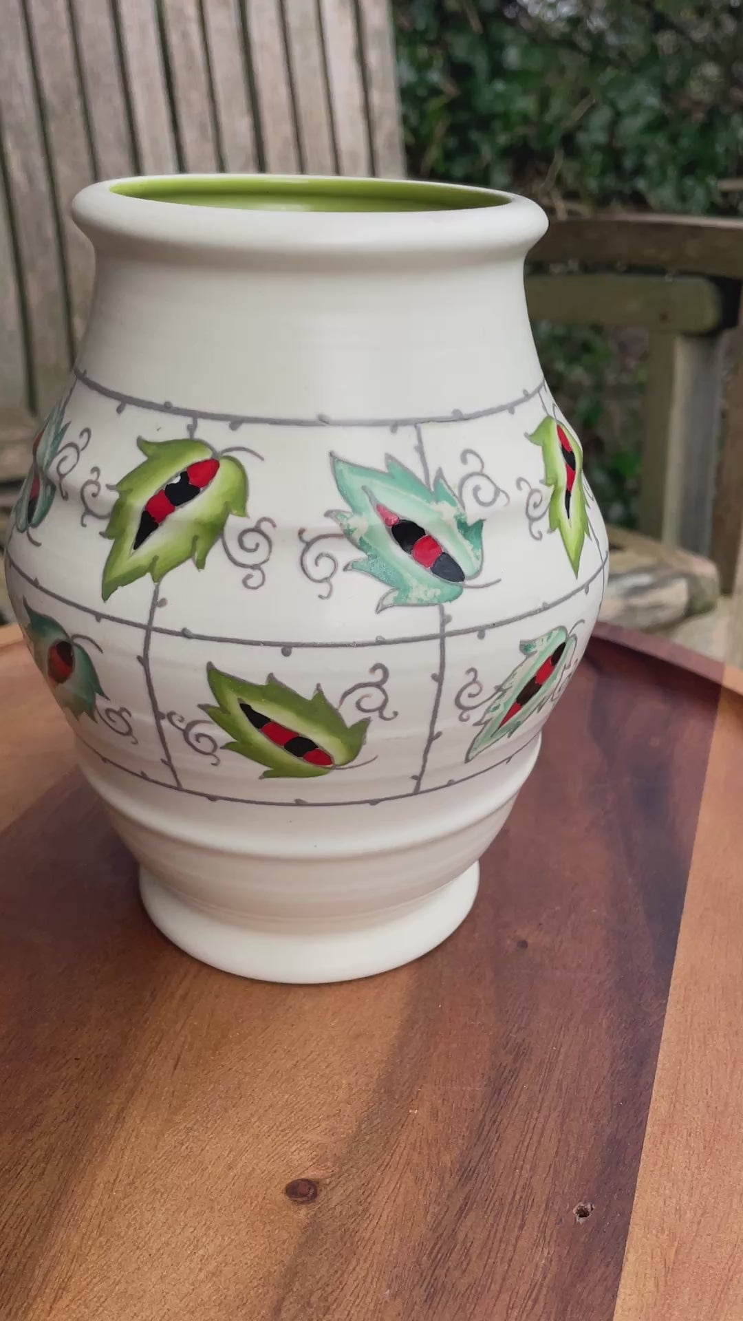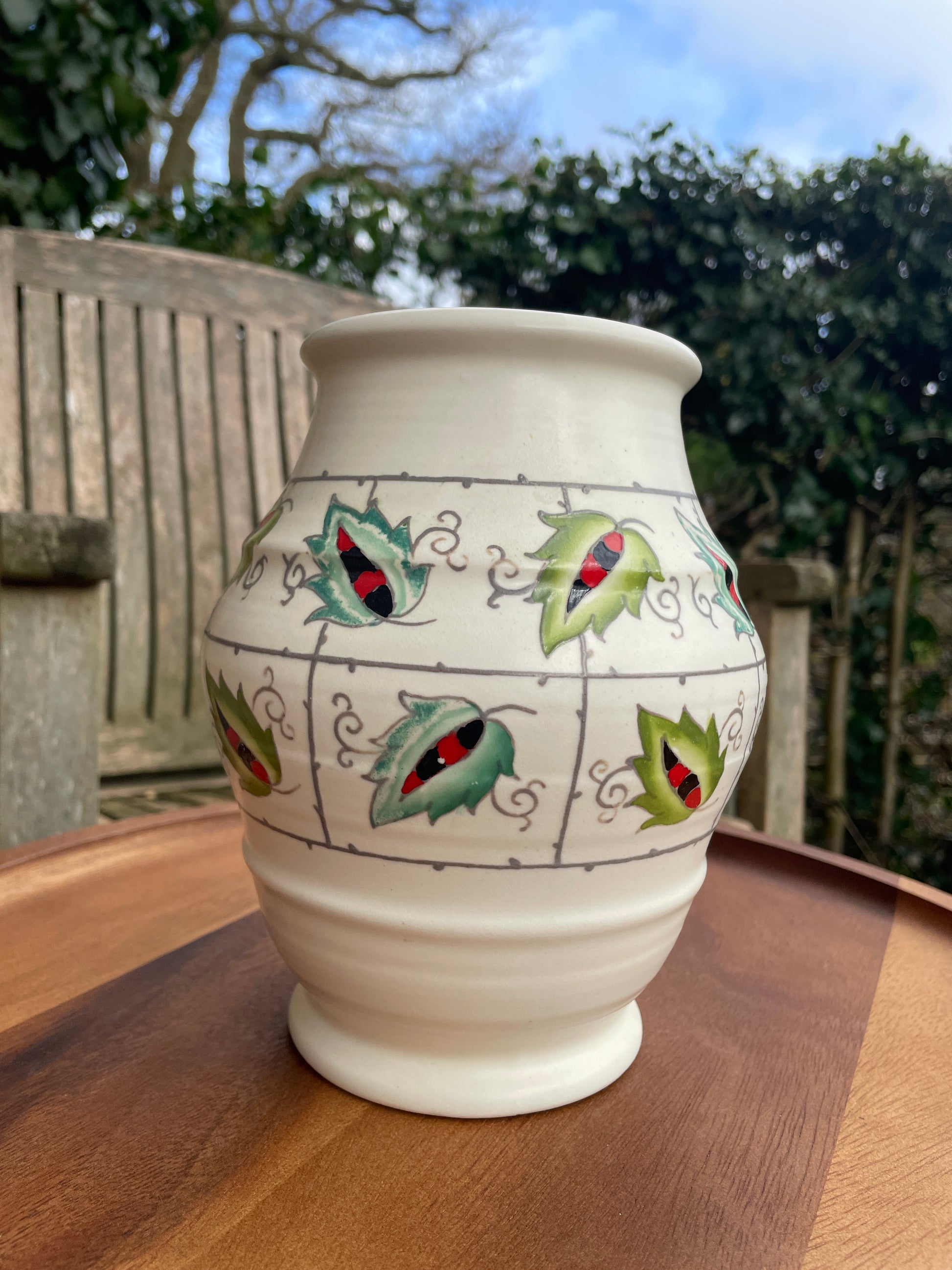 Charlotte Rhead for Crown Ducal Art Deco vase -Leaf and Trellis pattern 19cm tall