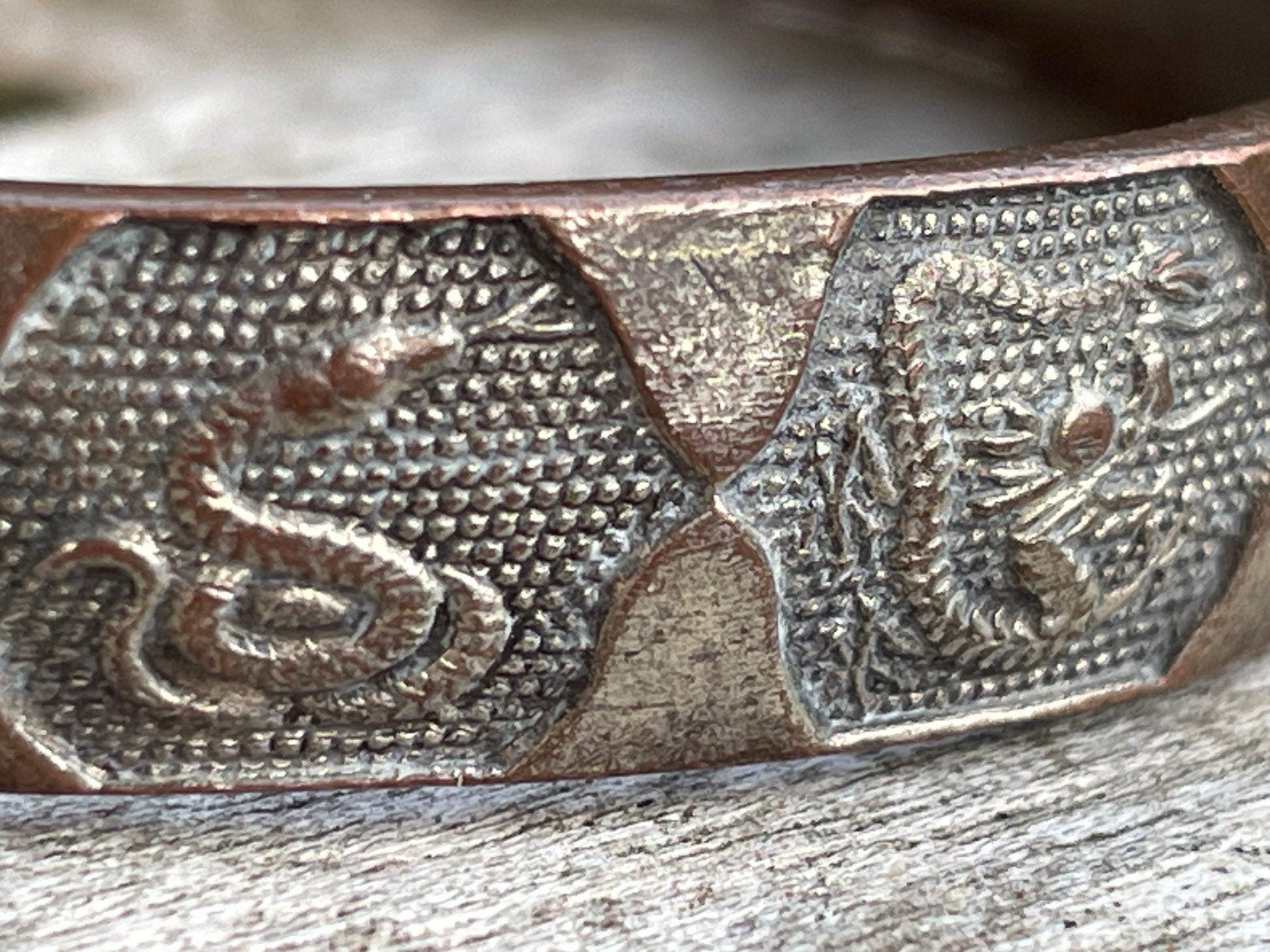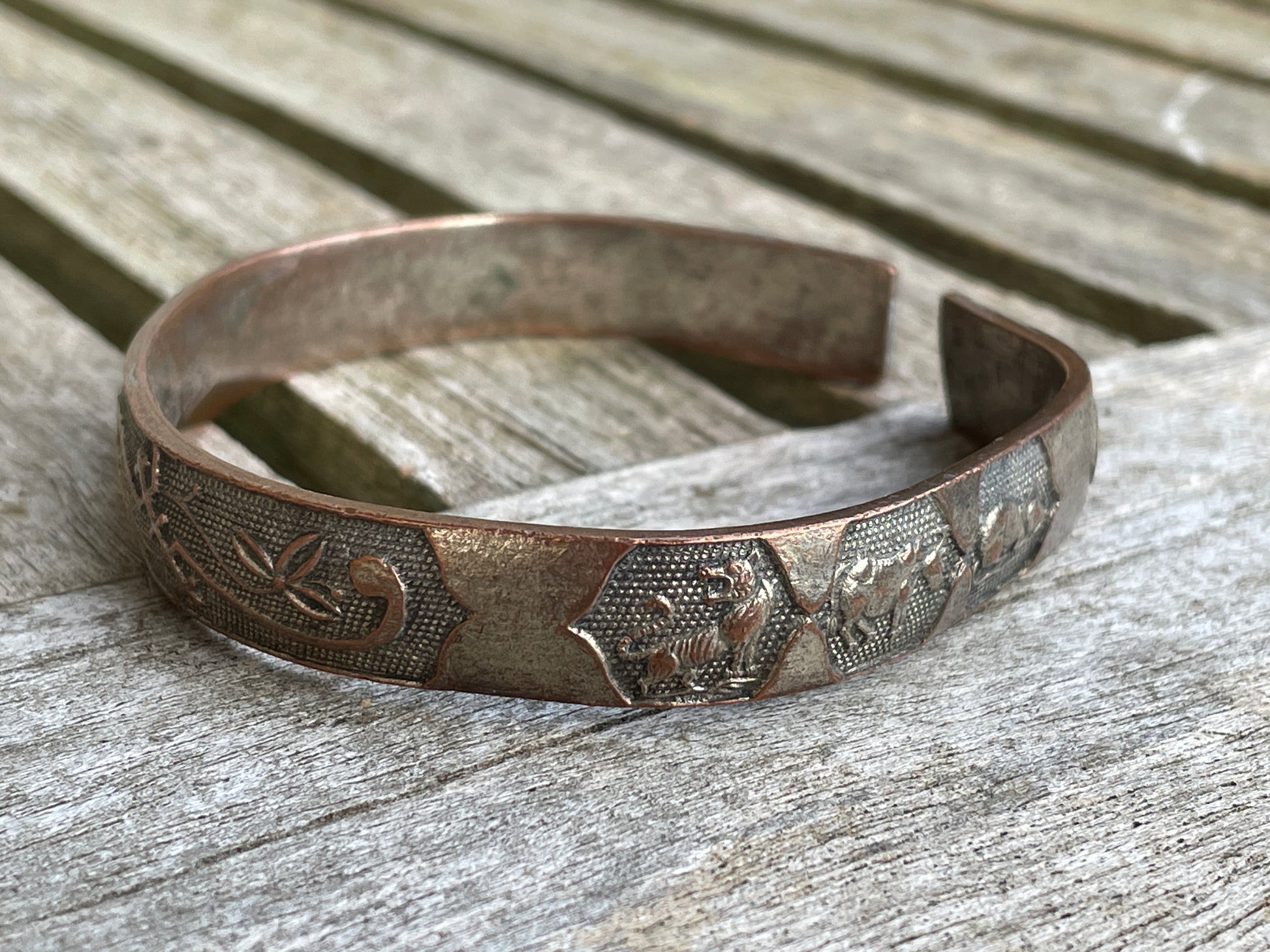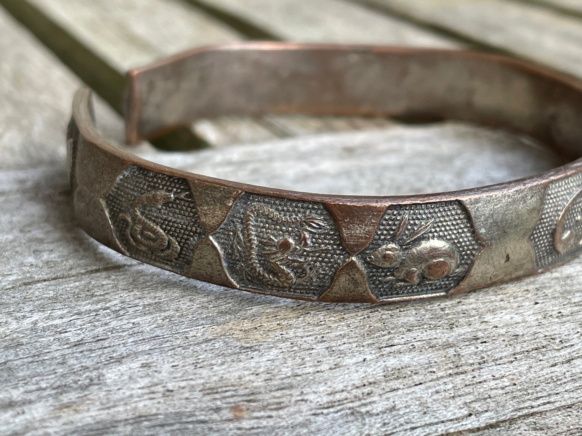 This bangle has a rat, ox, dog, snake, dragon rabbit in beautiful detail