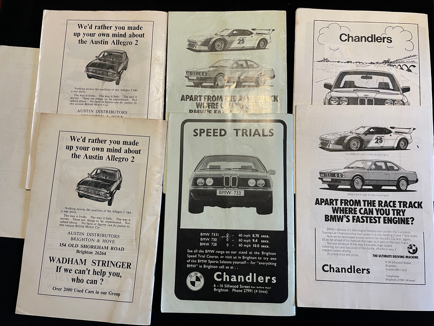 Eight Brighton and Hove Motor Club National Speed trials programmes 70's and 80's