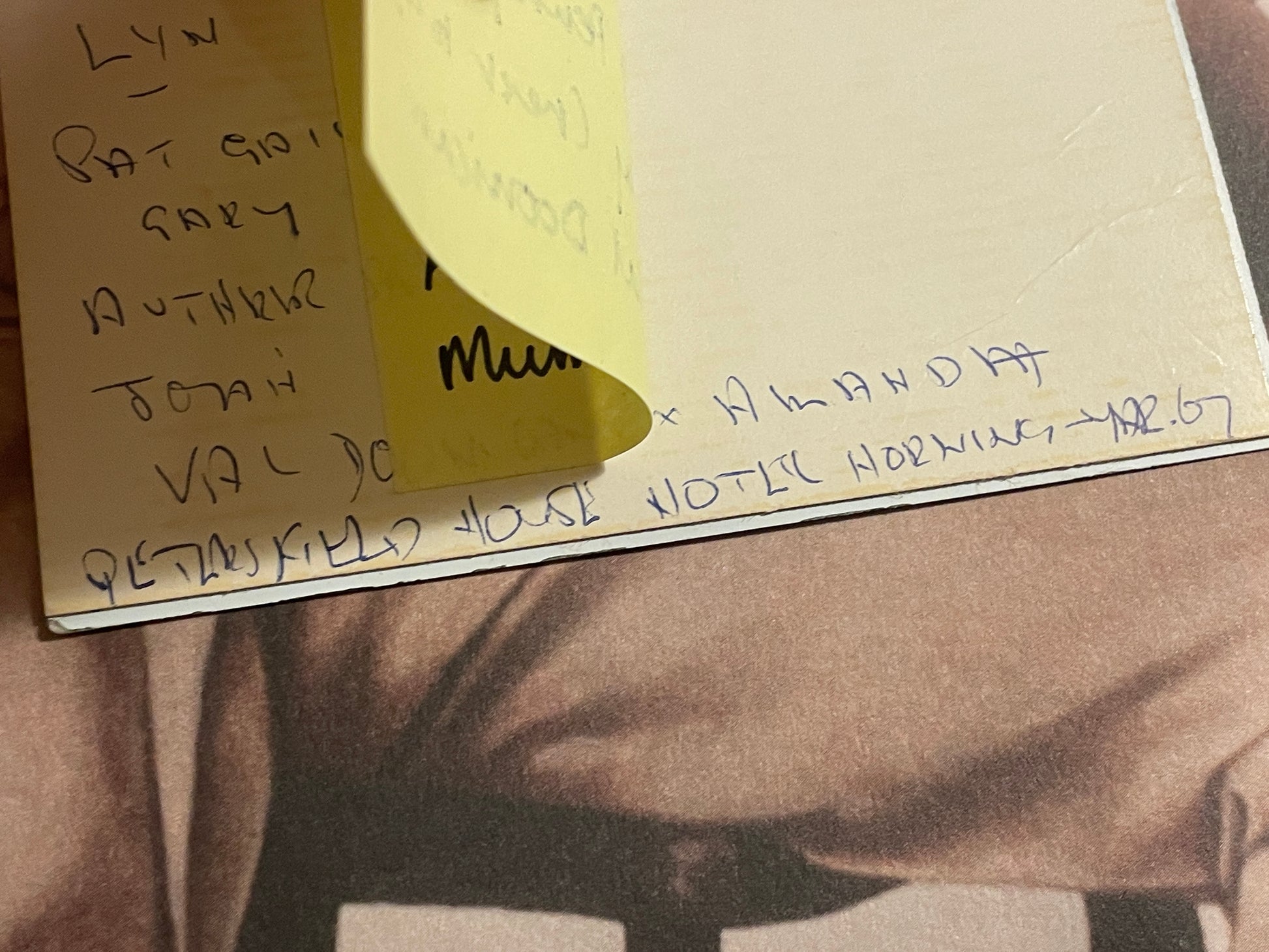 This original unique image show a group image perhaps take by Eric - on the back there is hand written notes on who they all are Michael (Tv and journalism) and Penny Grade, Gwen, Lyn, Pat, Gail, Gary, Arthur Askey (English Comedian and actor) , Joan, Val Doonican (Singer), and Amanda - at Petersfield House 1967 - 11x9cm