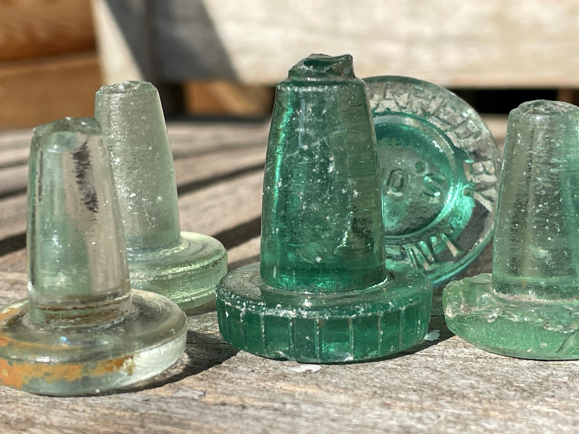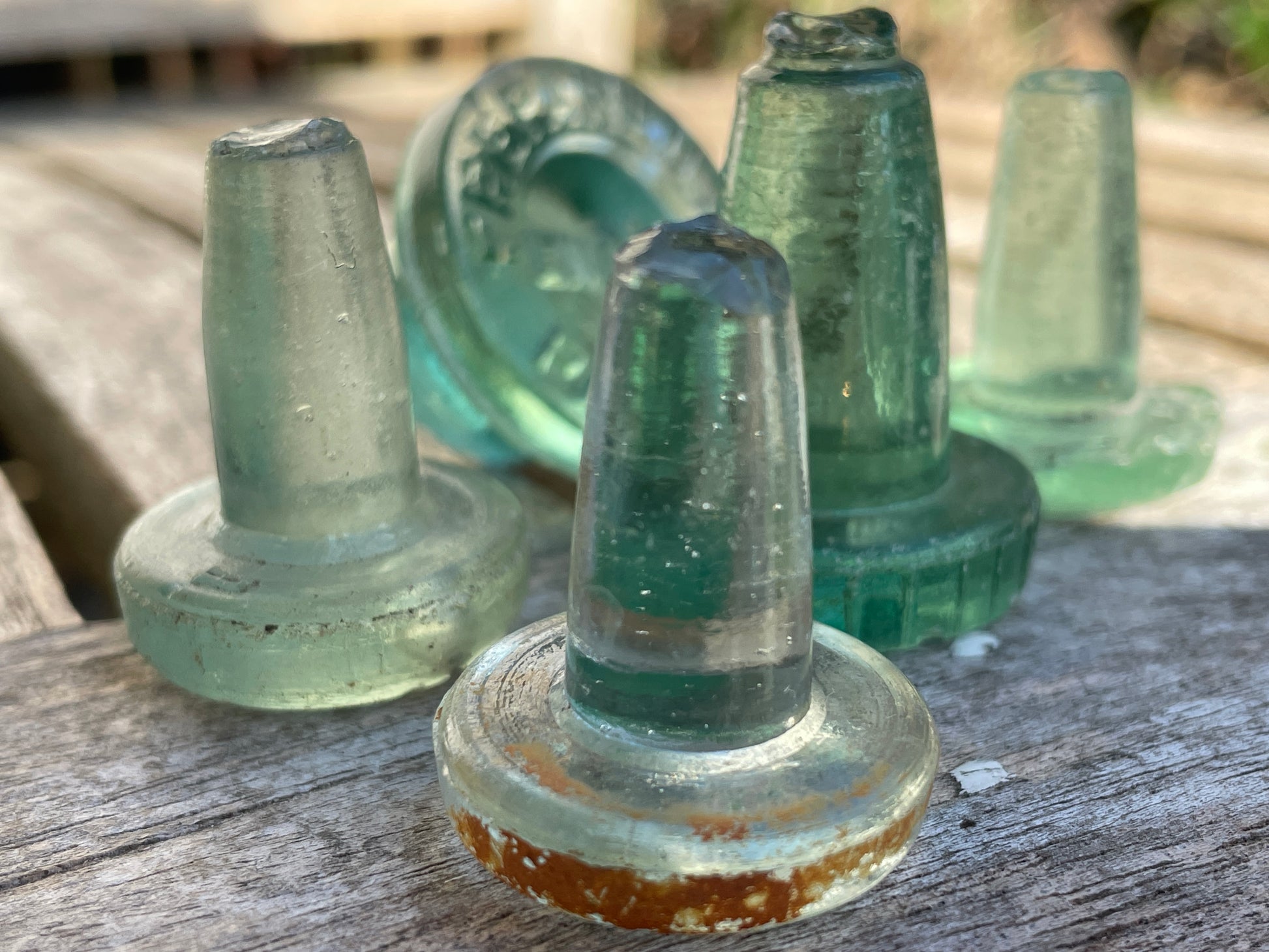 Five glass bottle stoppers one marked Prepared by Eno's Patent c1890's