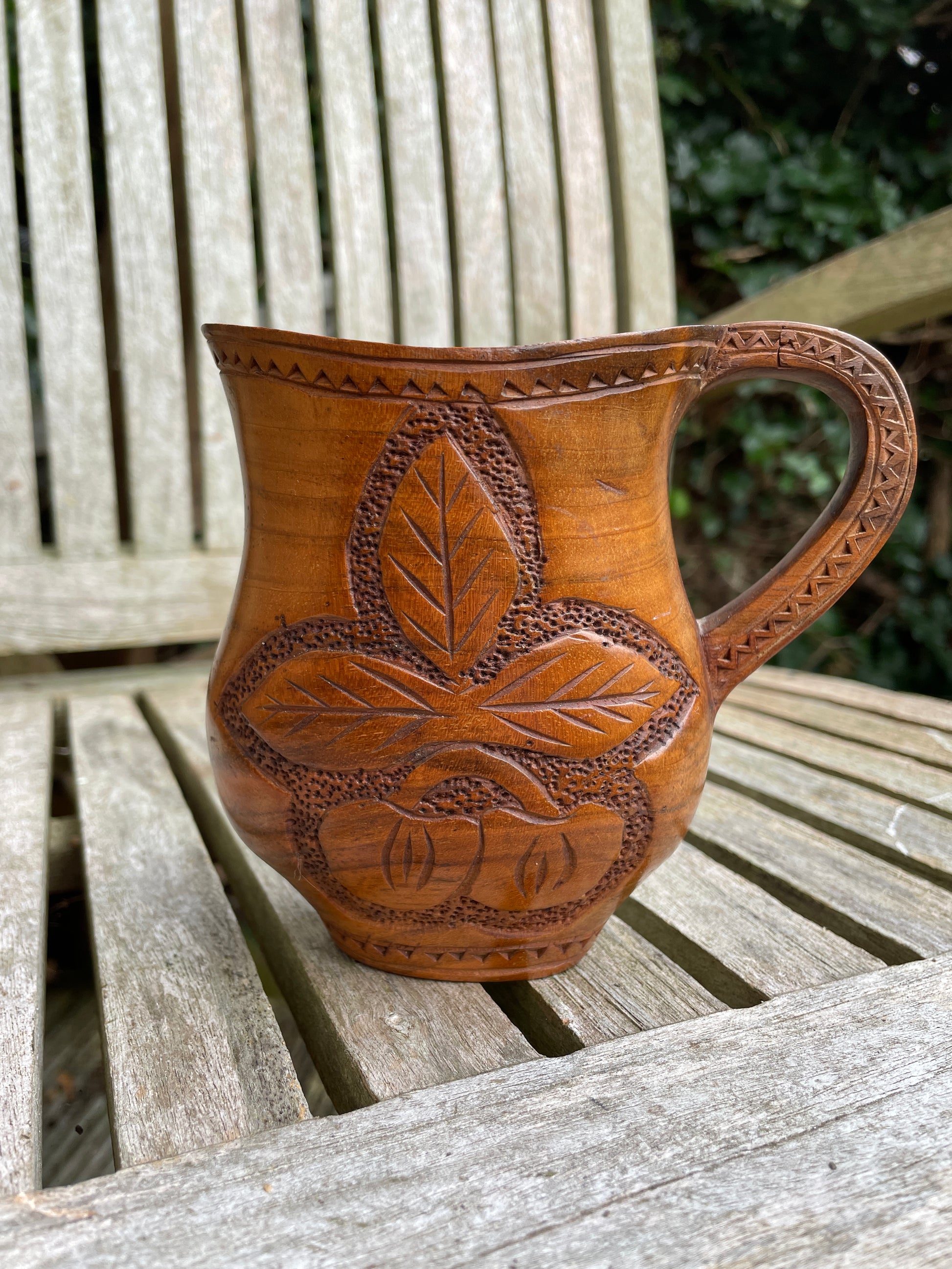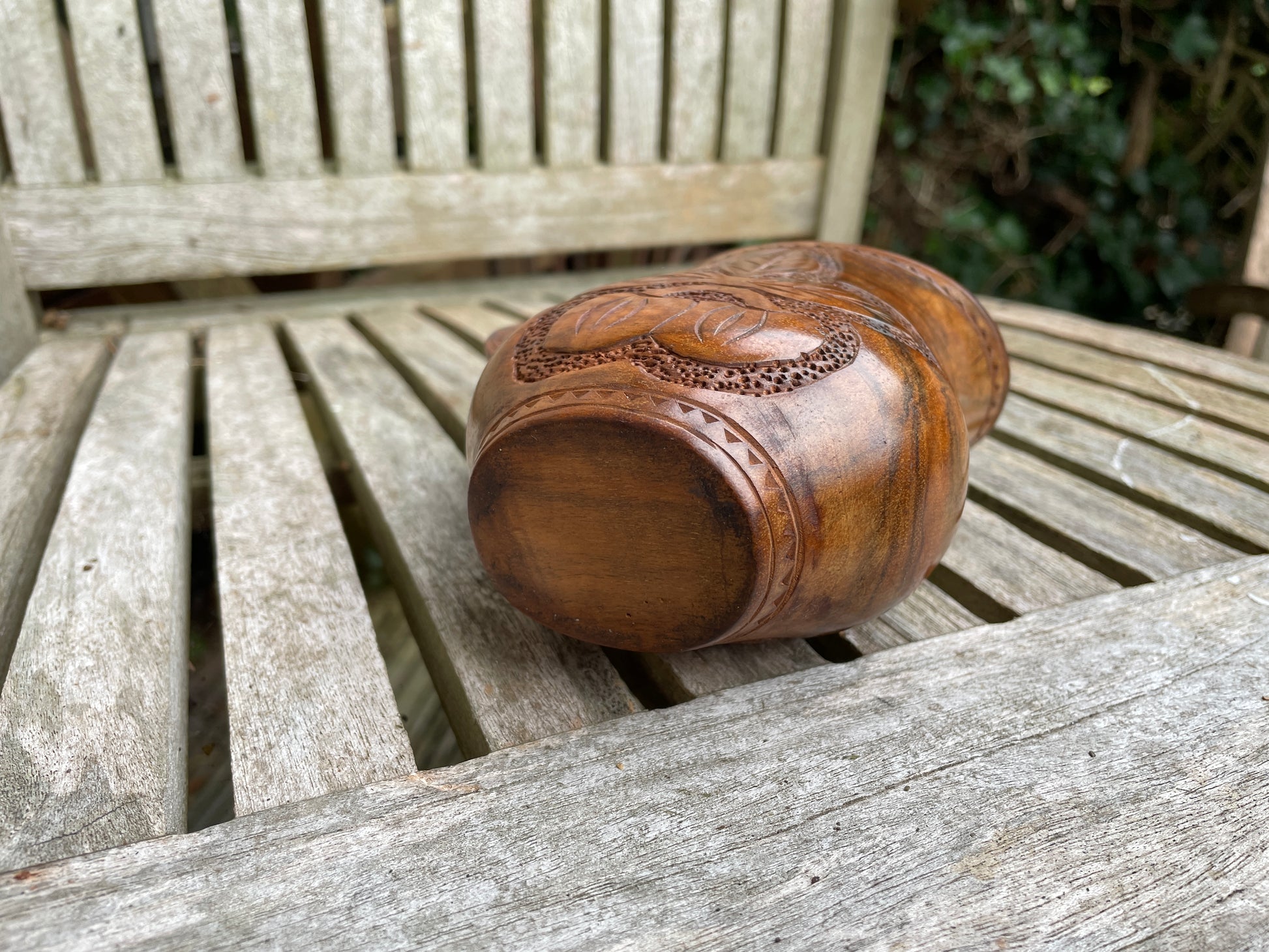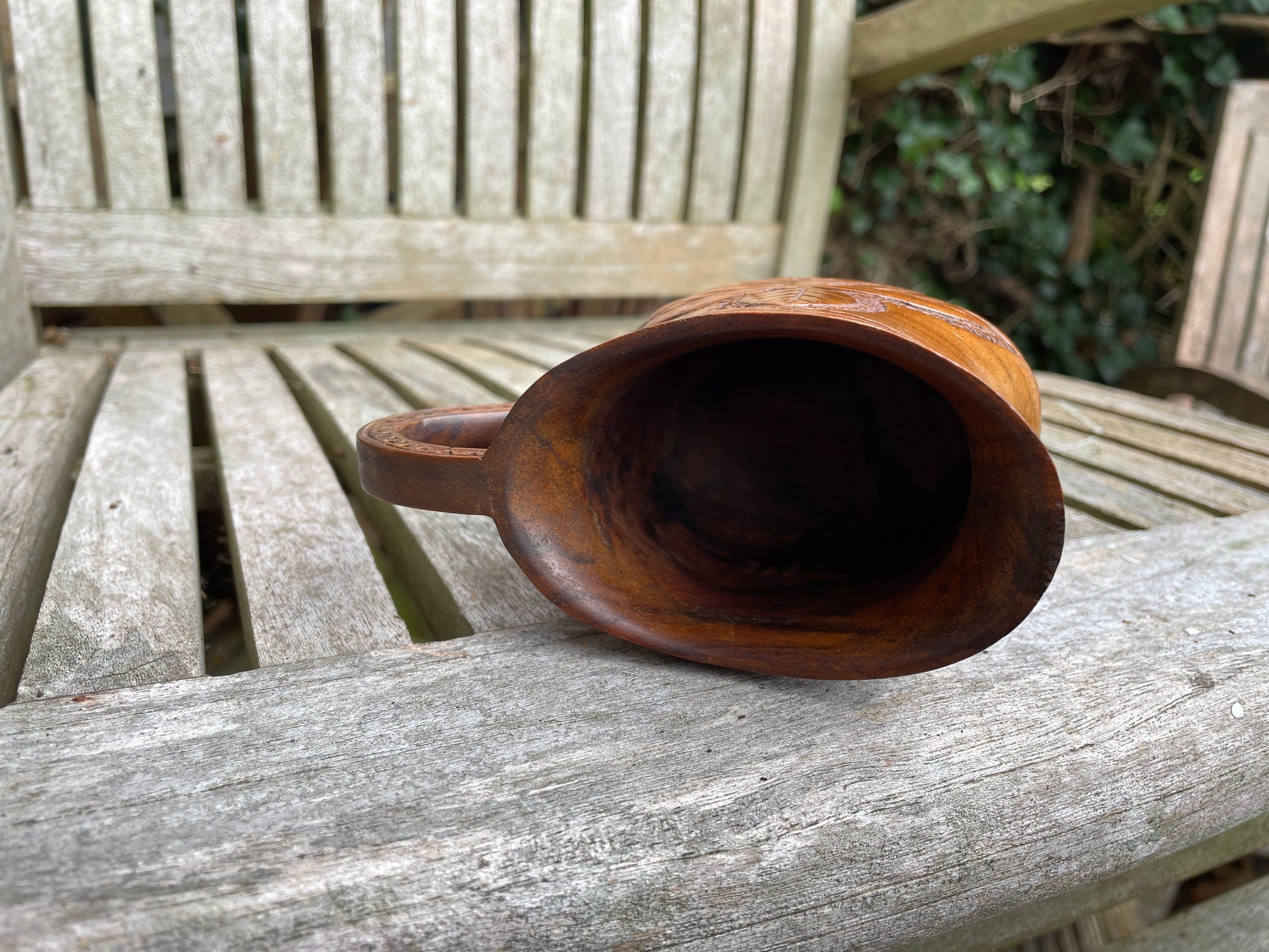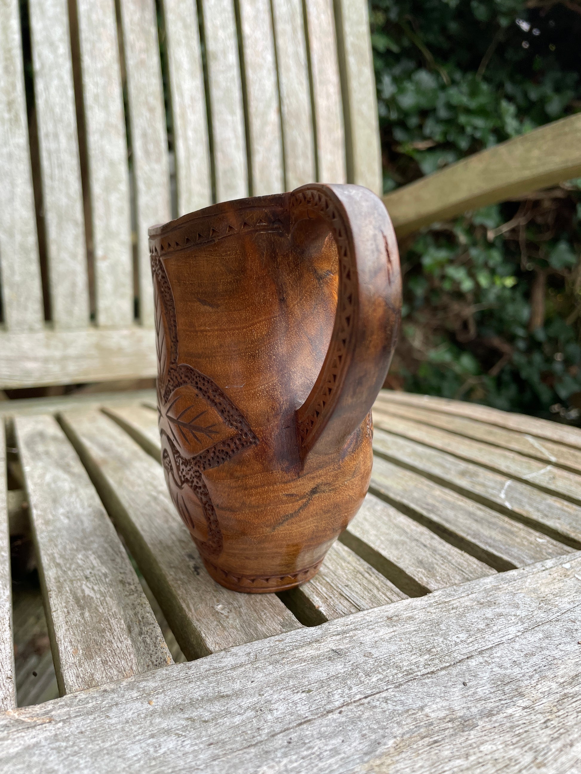 Folk art wooden hand worked arts and crafts loving cup 12cm tall