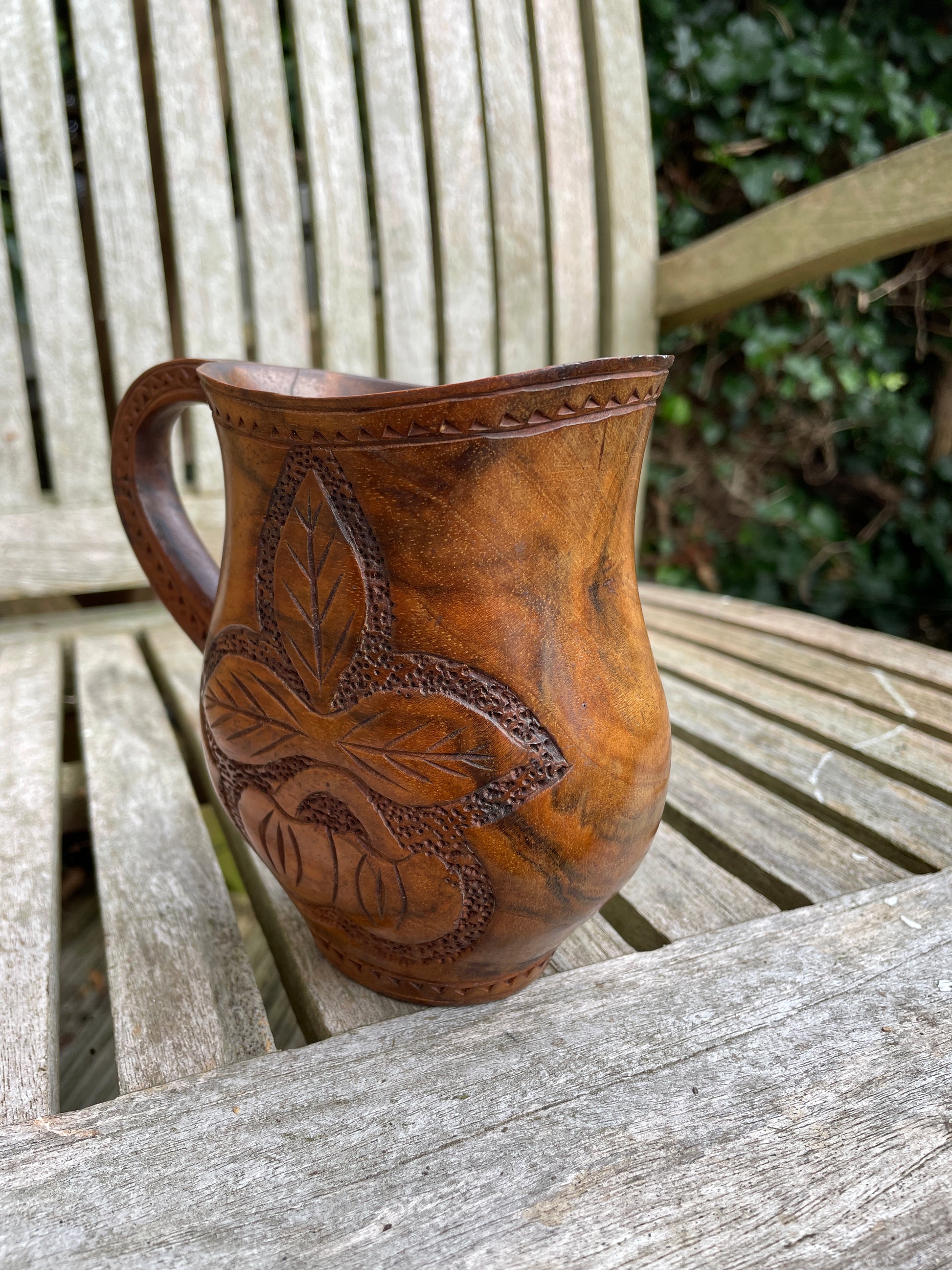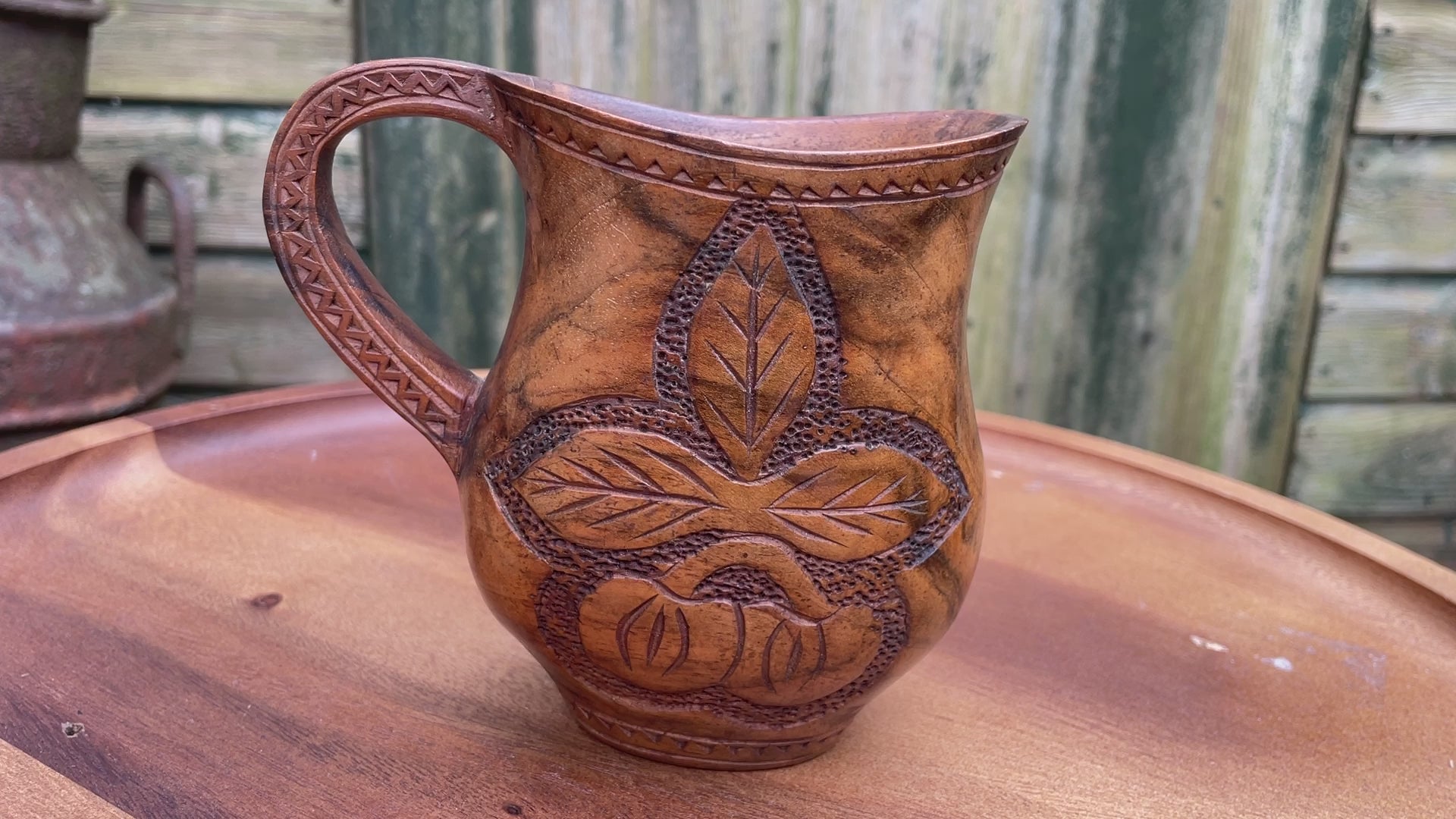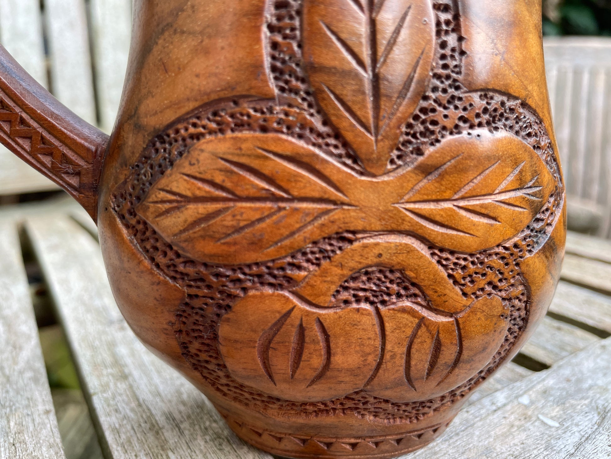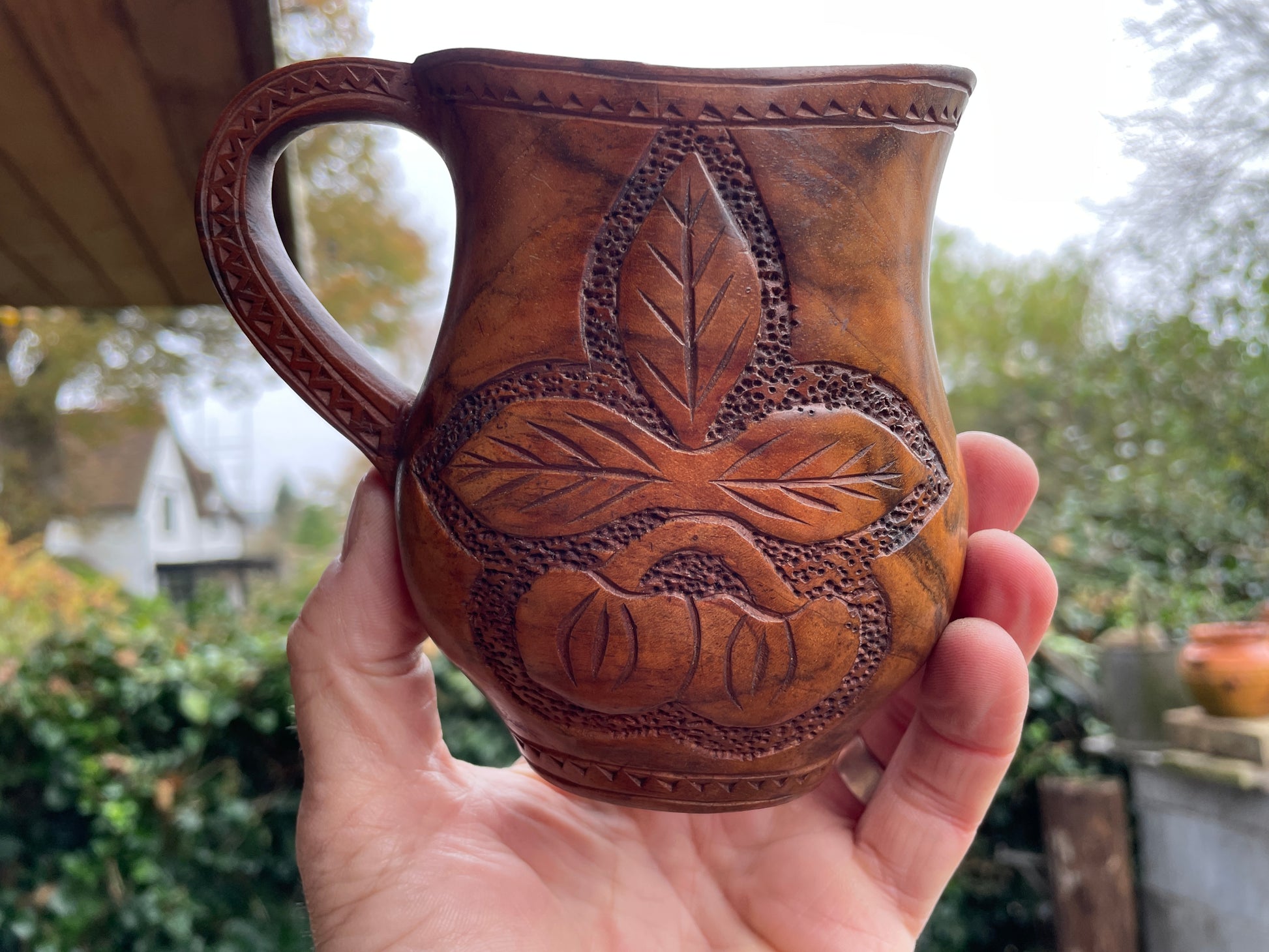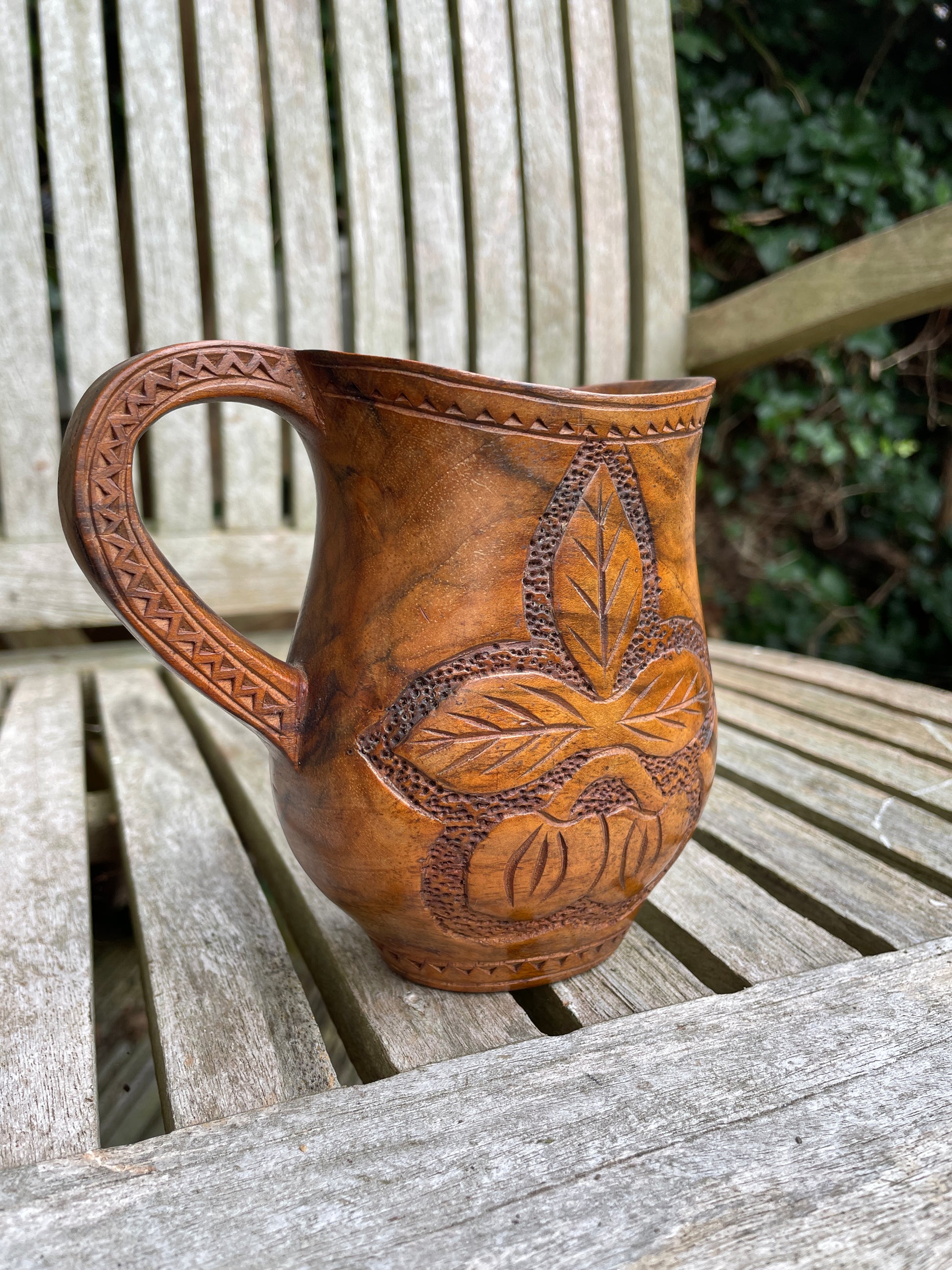 Folk art wooden hand worked arts and crafts loving cup 12cm tall