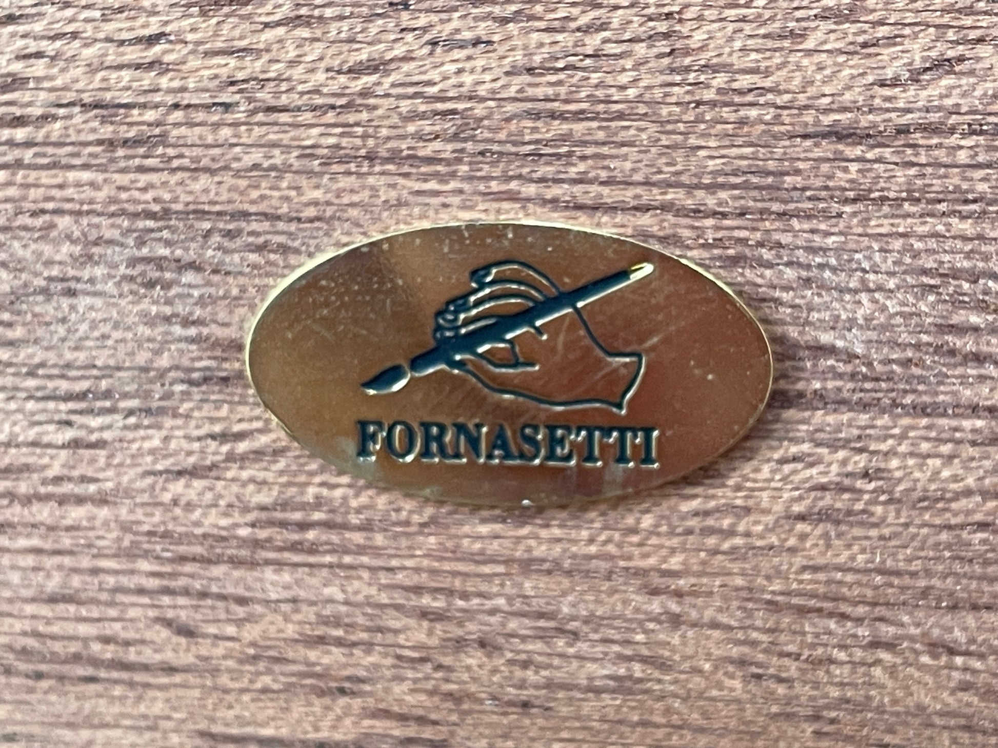 Made in Italy and finished with a high-gloss lacquer, the box features brass hinges, a clean natural wood interior, and the original Fornasetti maker’s label. Its bold graphic design makes it a perfect statement piece for a modernist interior, as well as a highly collectible example of 20th-century Italian design.