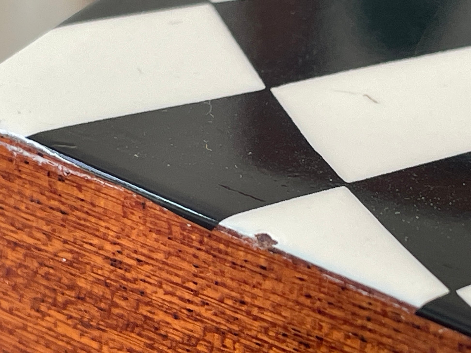 Condition: Fleabite chip less than 1mm to lacquer at one corner (see photos) and very light surface wear, otherwise glossy and well-preserved