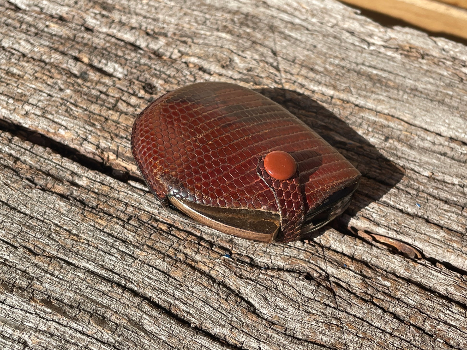 French Art Deco Flaminaire Butabloc lighter in original faux snakeskin case 6.5cm wide