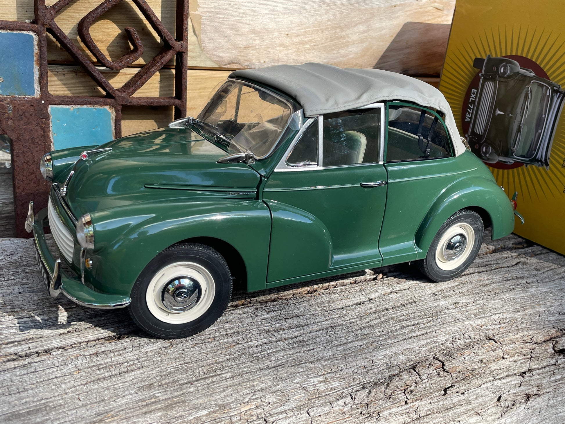 Incredibly well detailed and made scaled model (1:12) of the hugely loved Morris Minor 1000 drop head