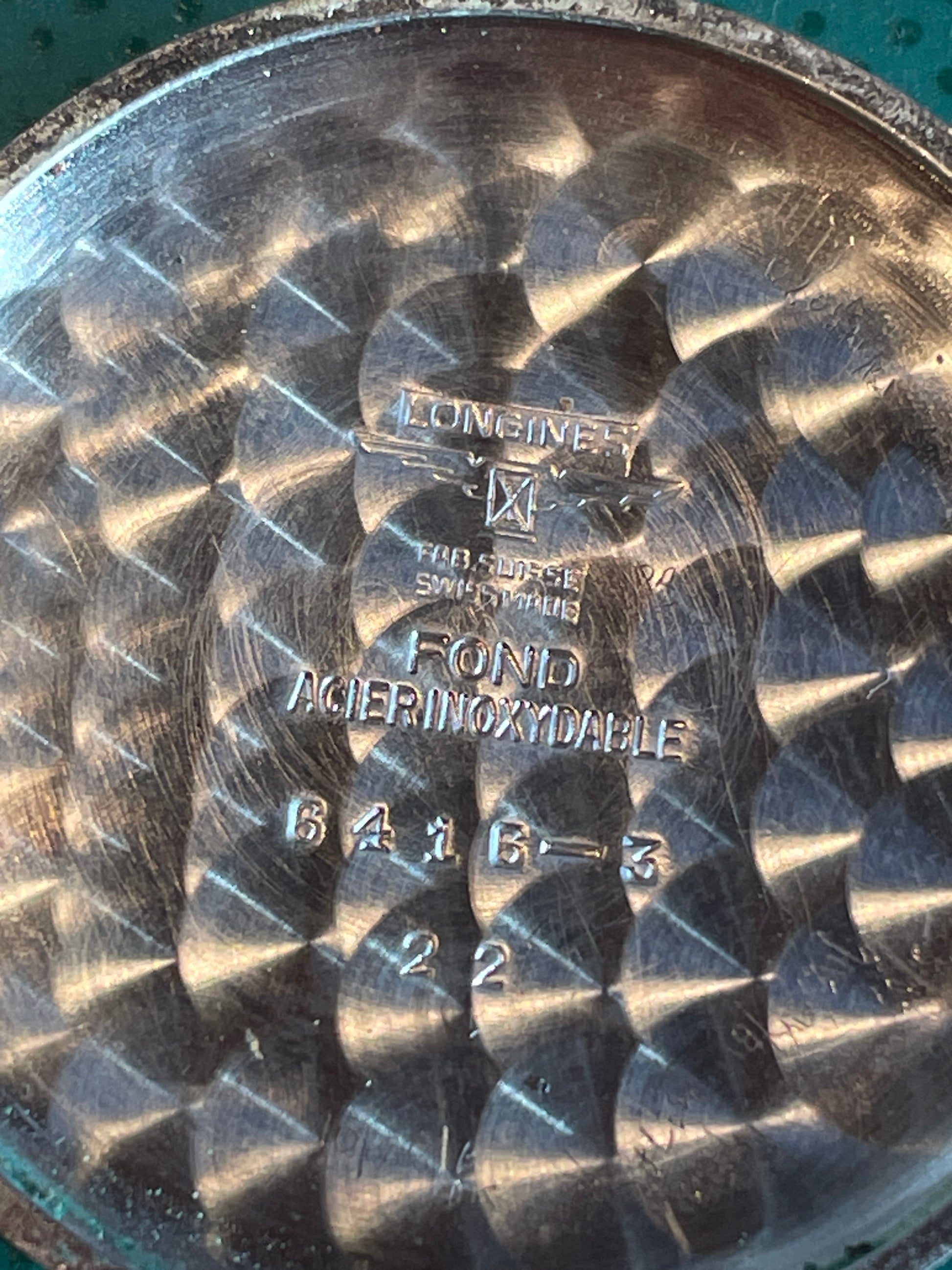Longines Fab Suisse Swiss Made FOND Acierinoxydable B416-3 22 marked to inside of backcover