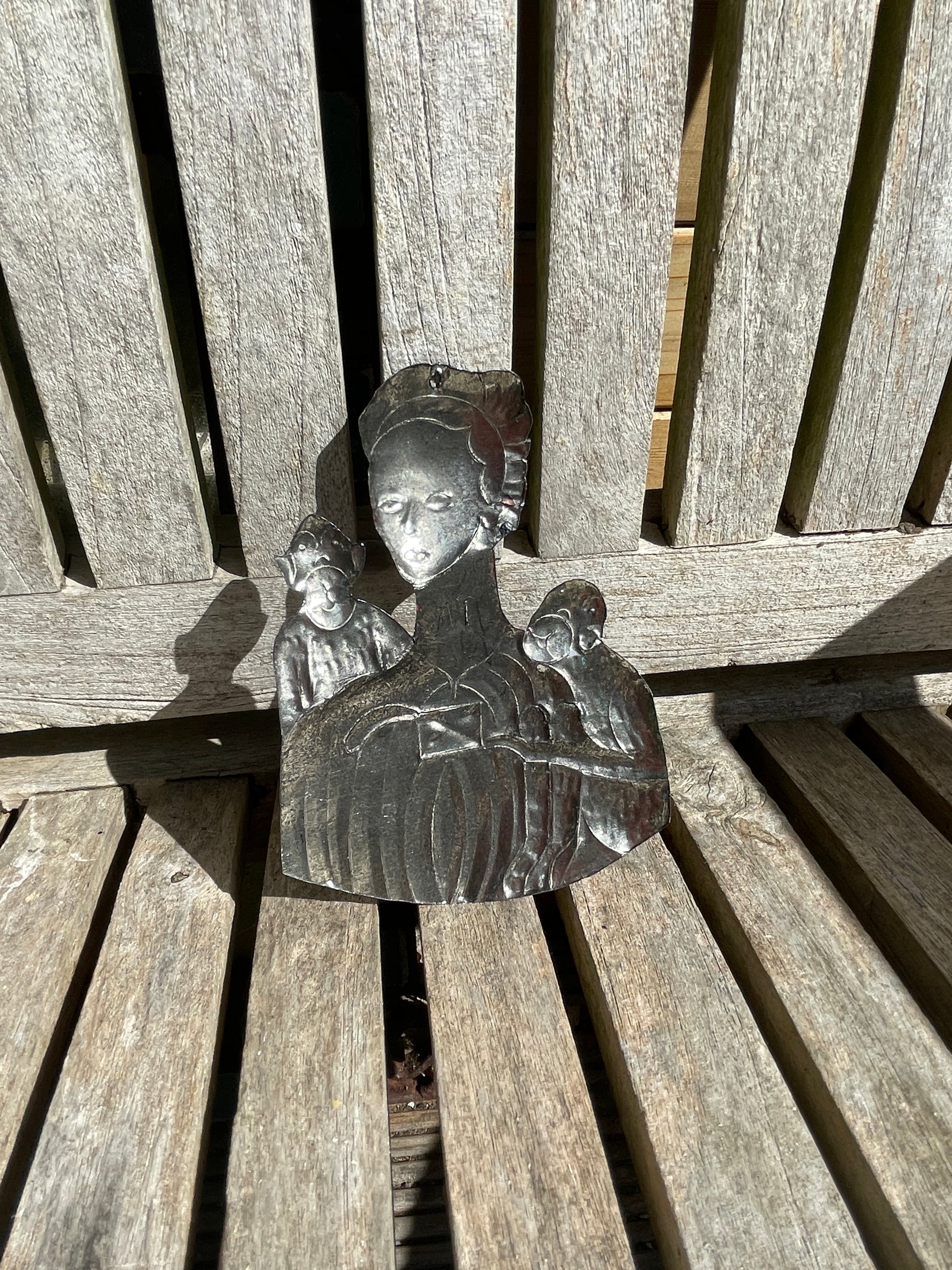 Vintage condition with surface scratches, natural tarnish and patina consistent with age and handmade origin. See photos for detail – a very expressive and characterful piece.