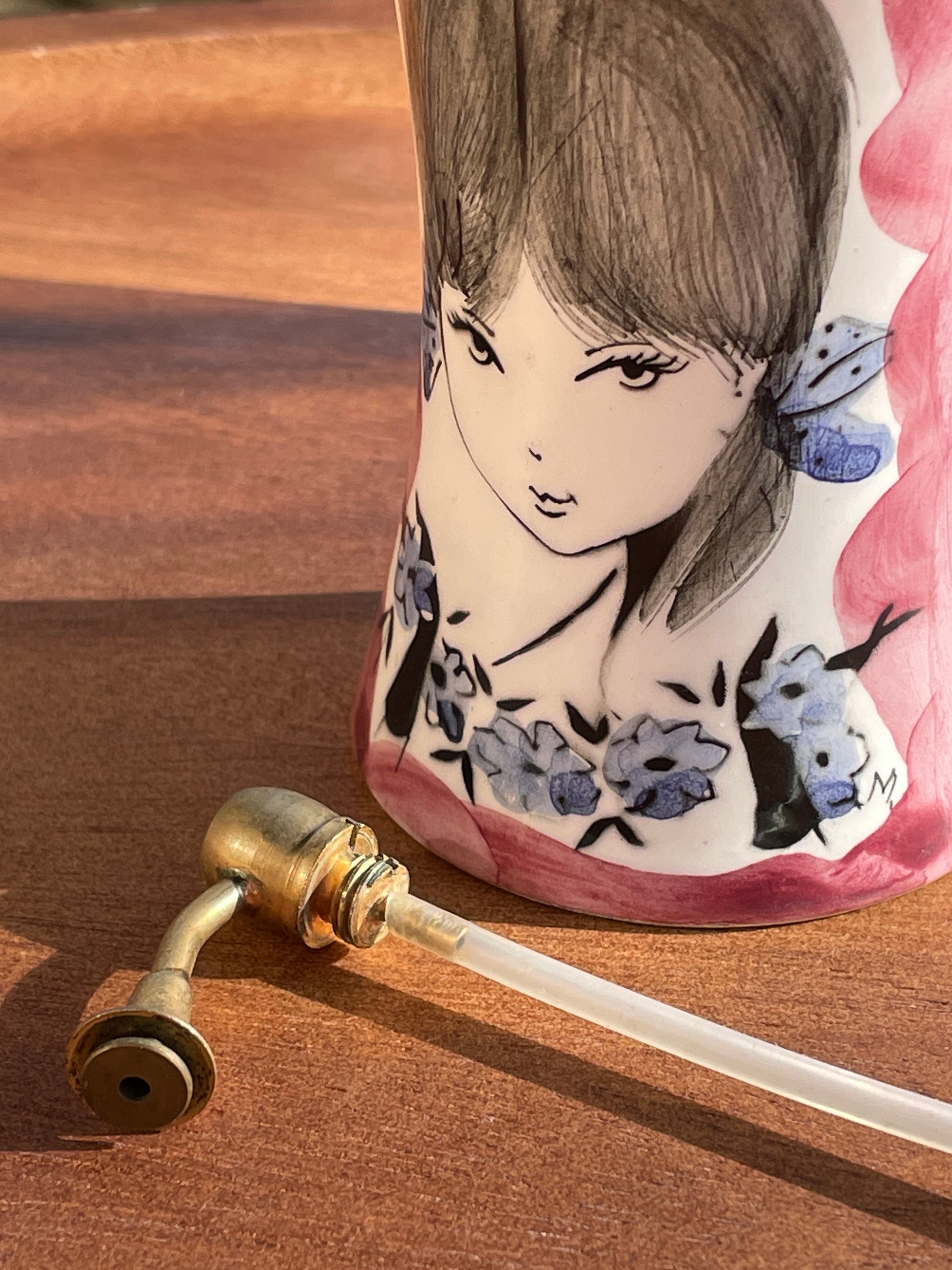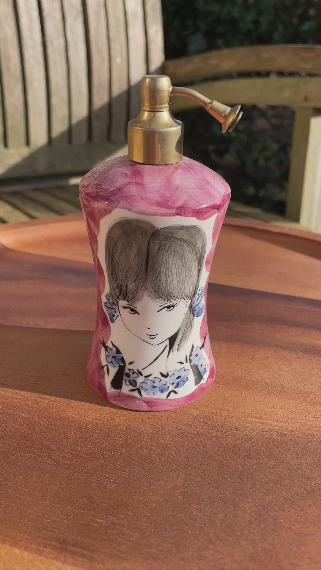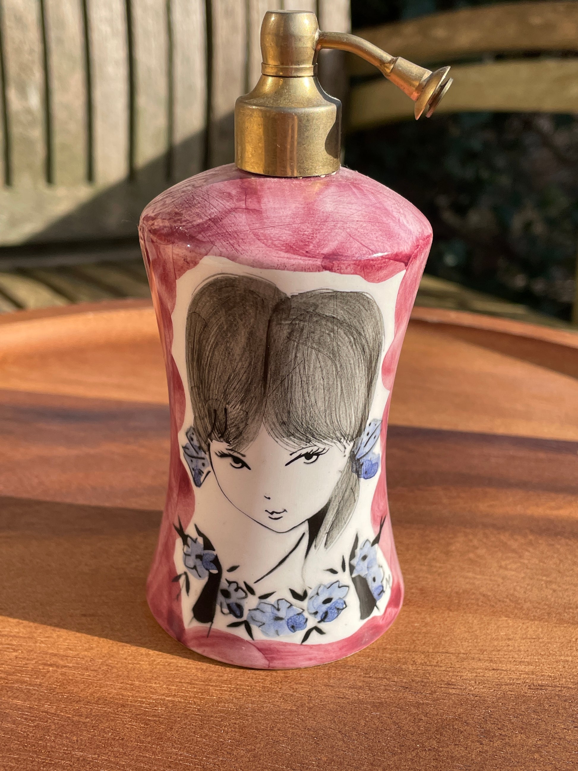 Milano Ceramics hand painted perfume bottle c1960's mod girl - 13cm tall