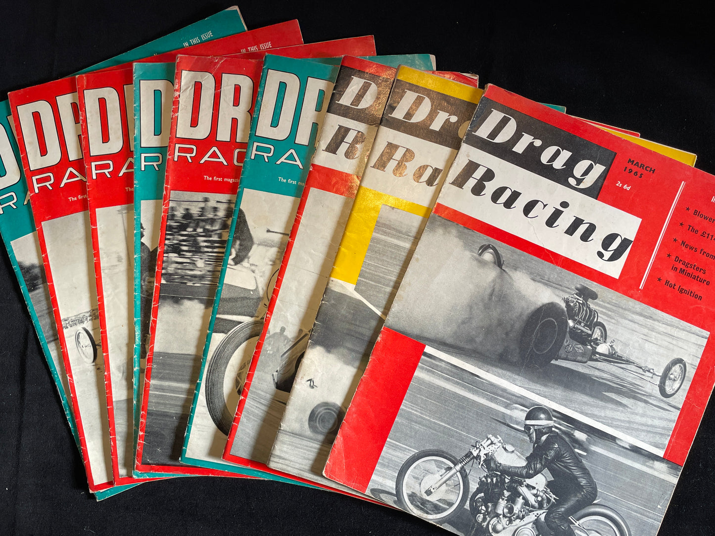 Nine original vintage Drag Racing magazines from 1965