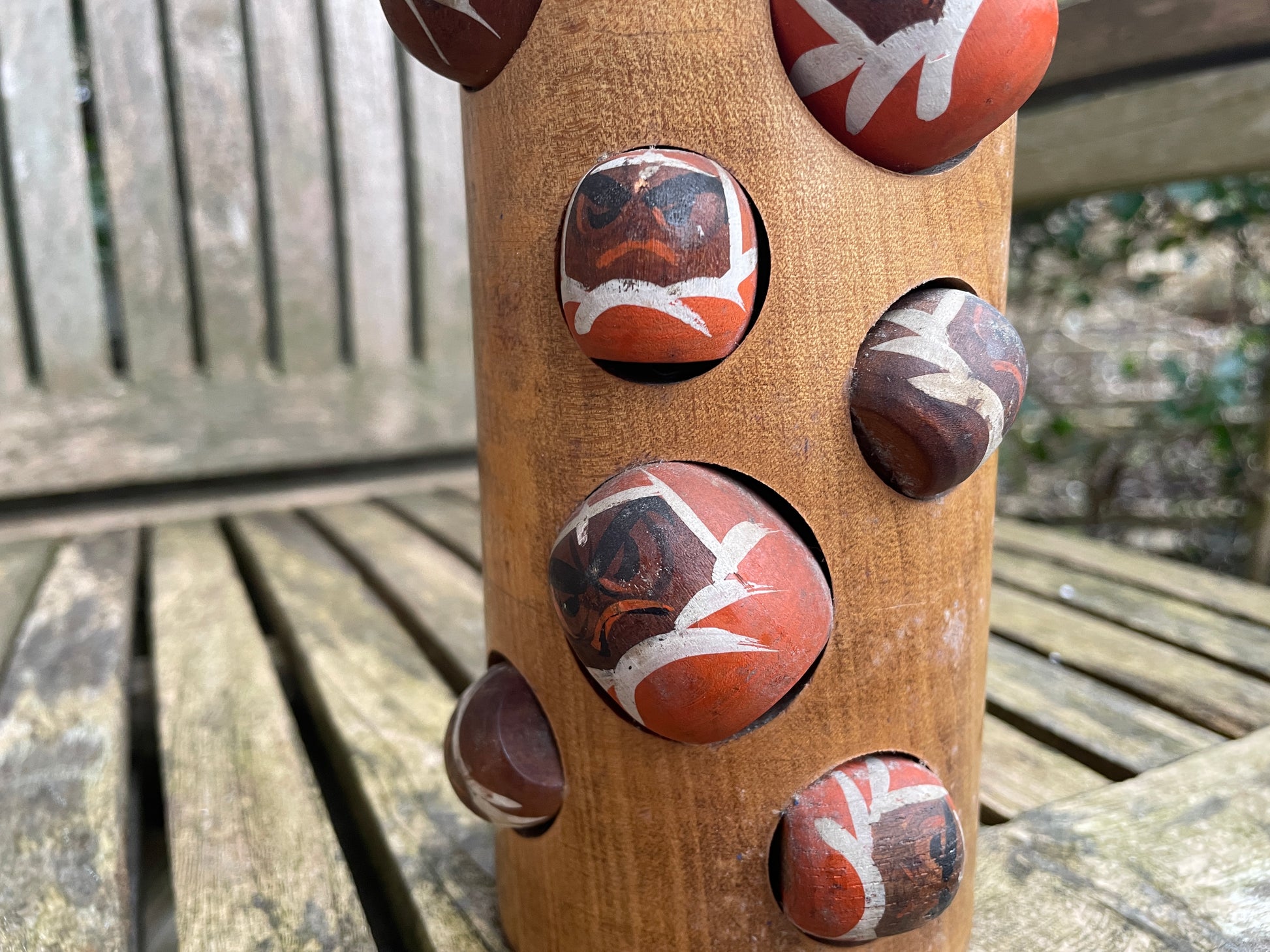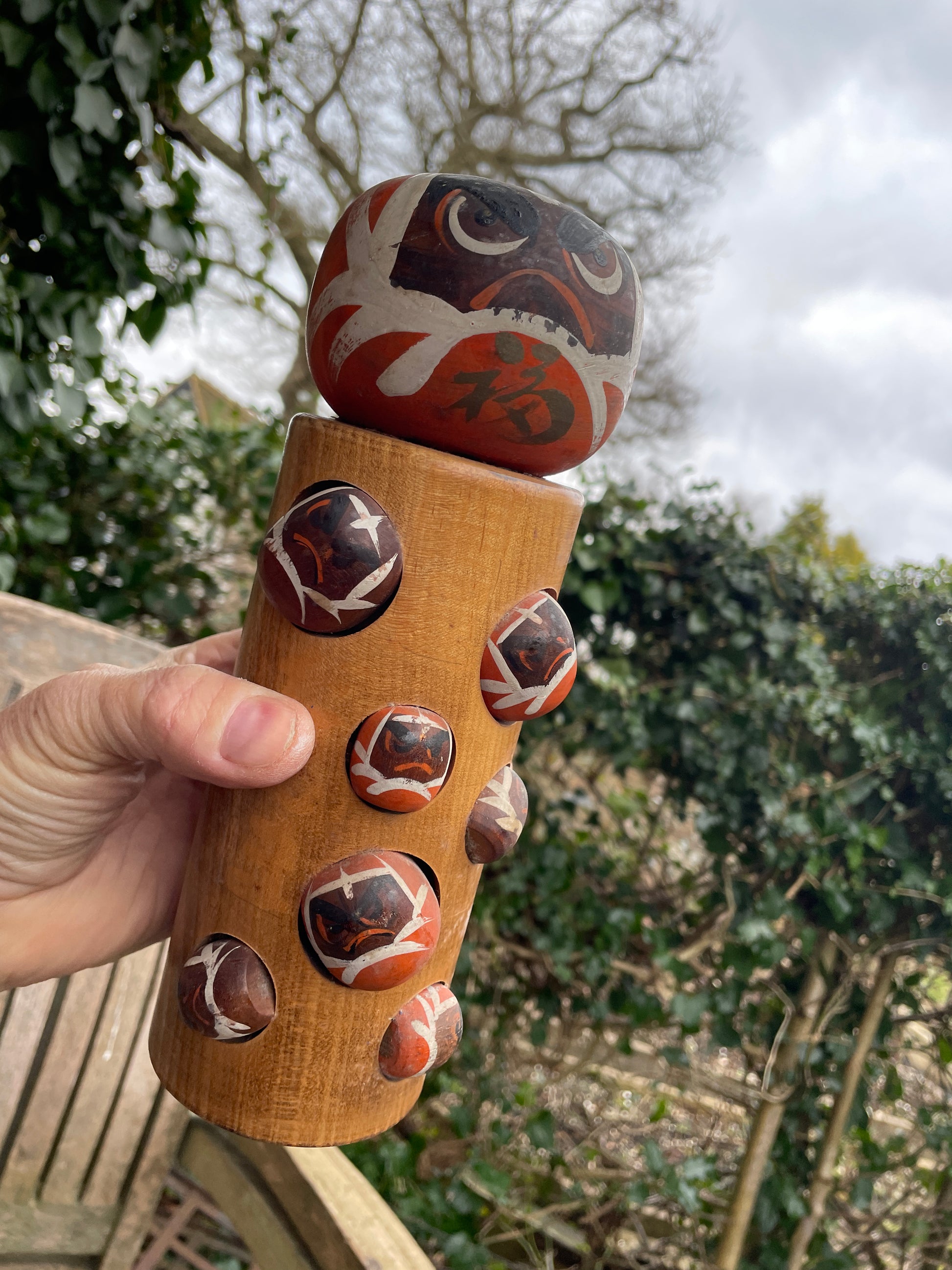 Traditional Kokeshi wooden Doll Daruma folk art measuring 25cm tall