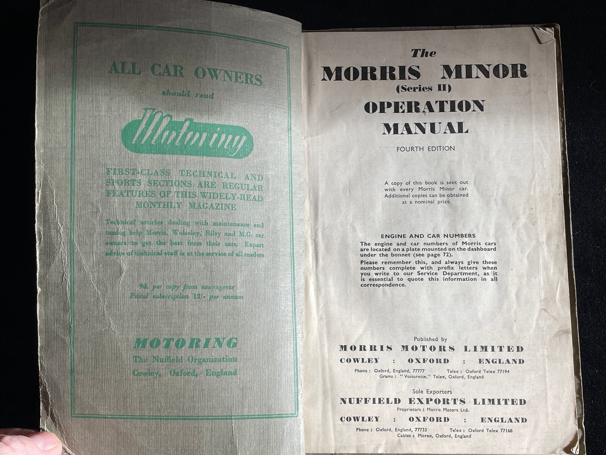original Morris Minor Series II operation manual 4th edition