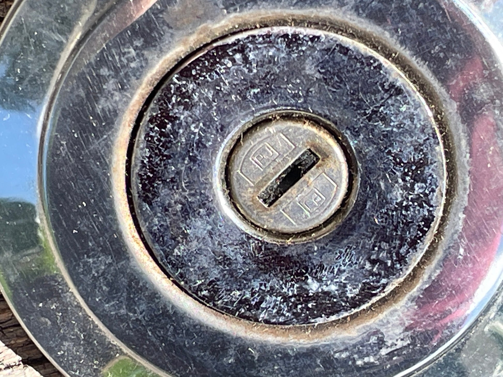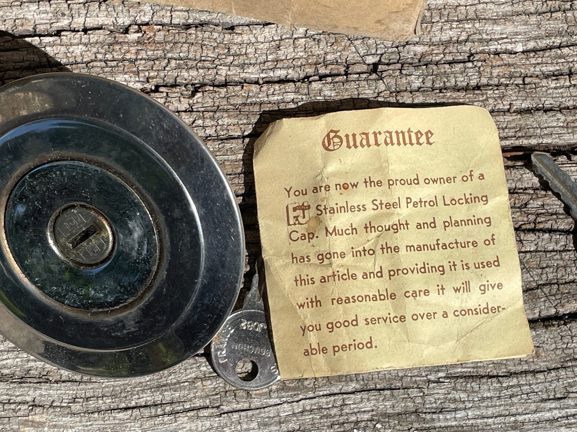 Original vintage car lockable stainless steel petrol cap in original box with 2 keys