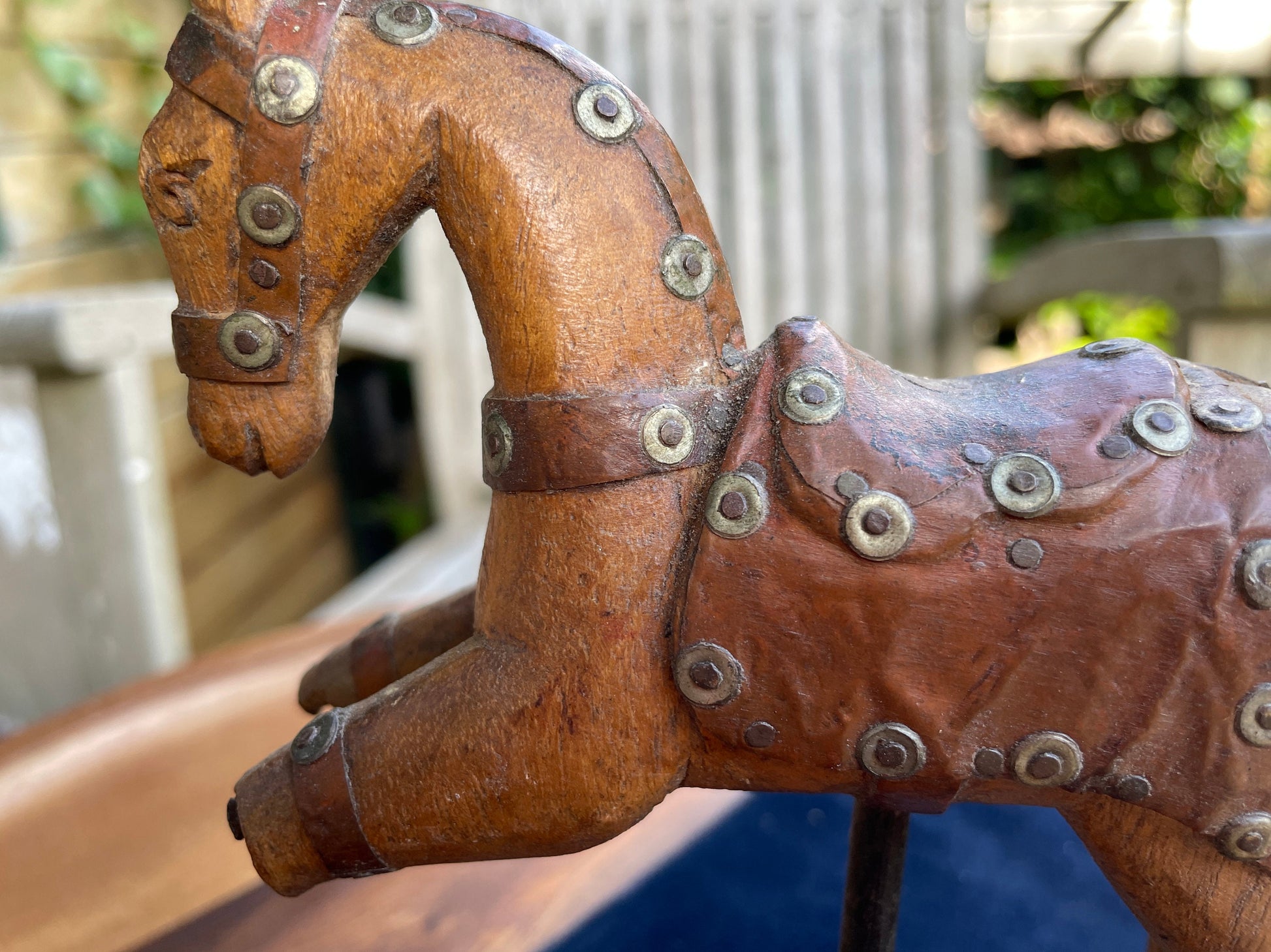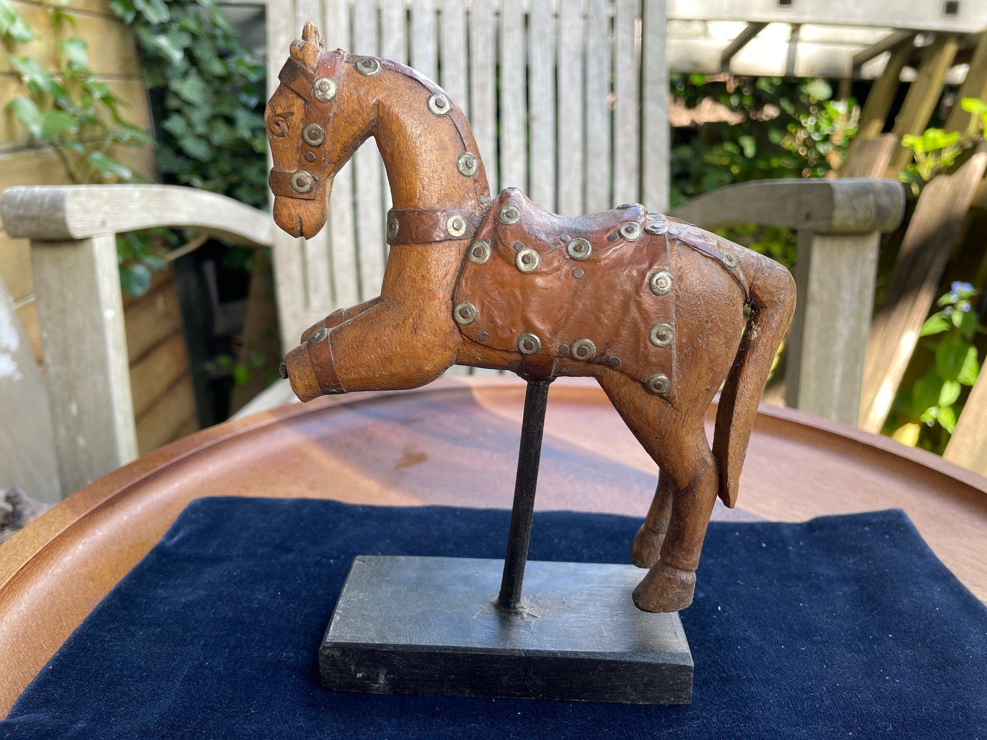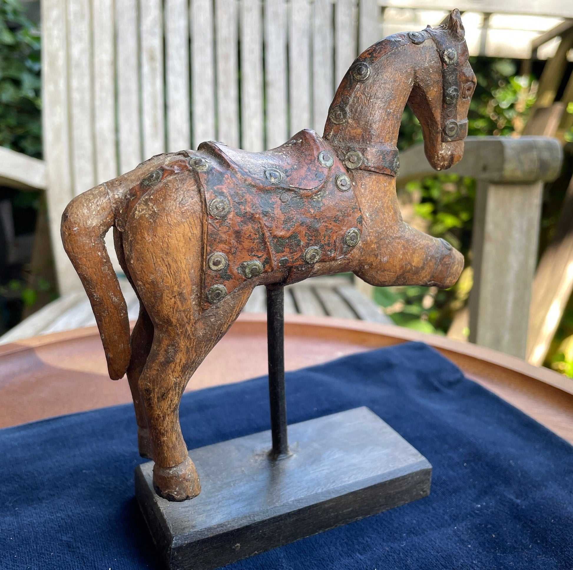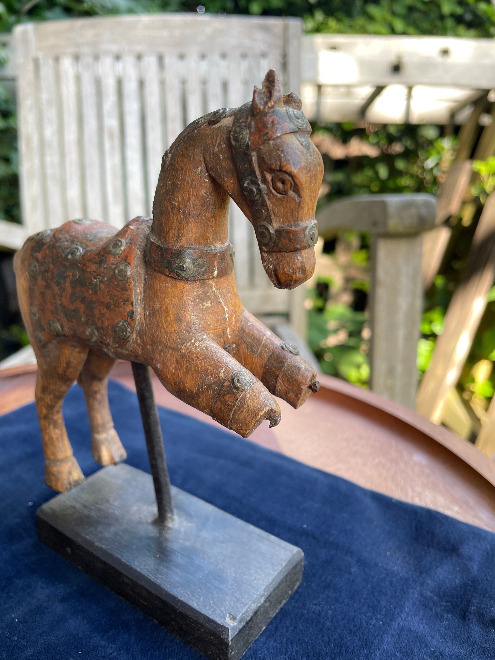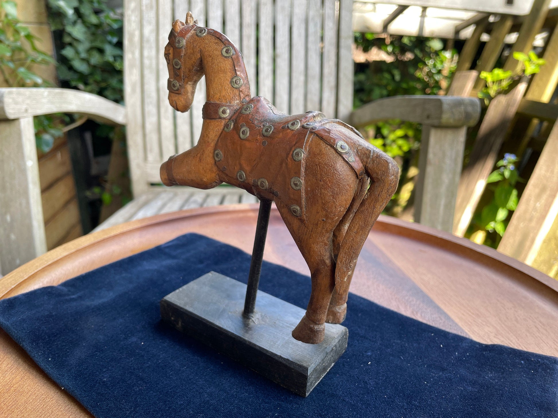 Original Vintage Wooden mounted Indian horse figure 17cm tall