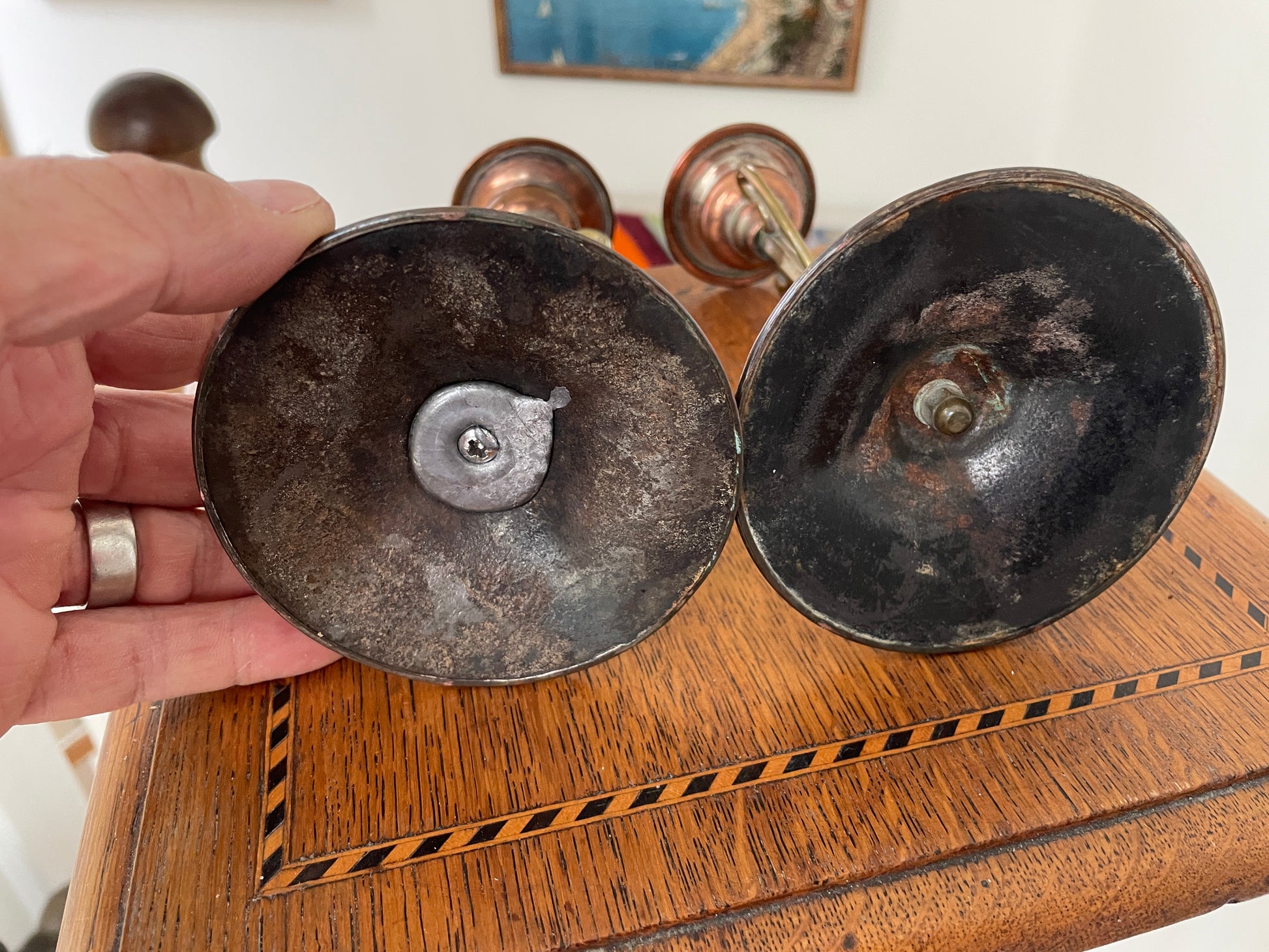 Pair of Antique Arts and Crafts Copper & Brass Candlesticks – Art Nouveau Design c.1900, English Handcrafted 18cm