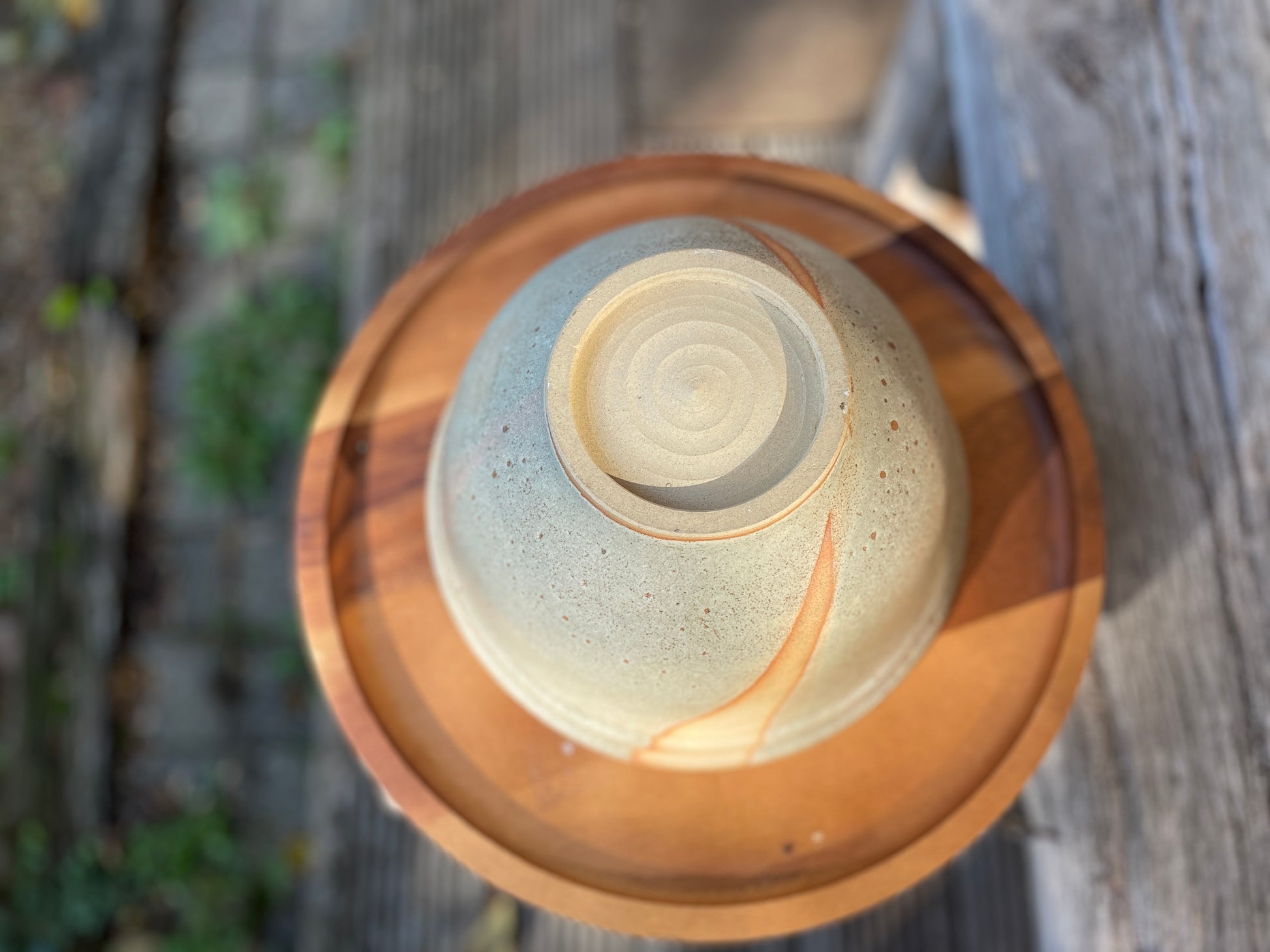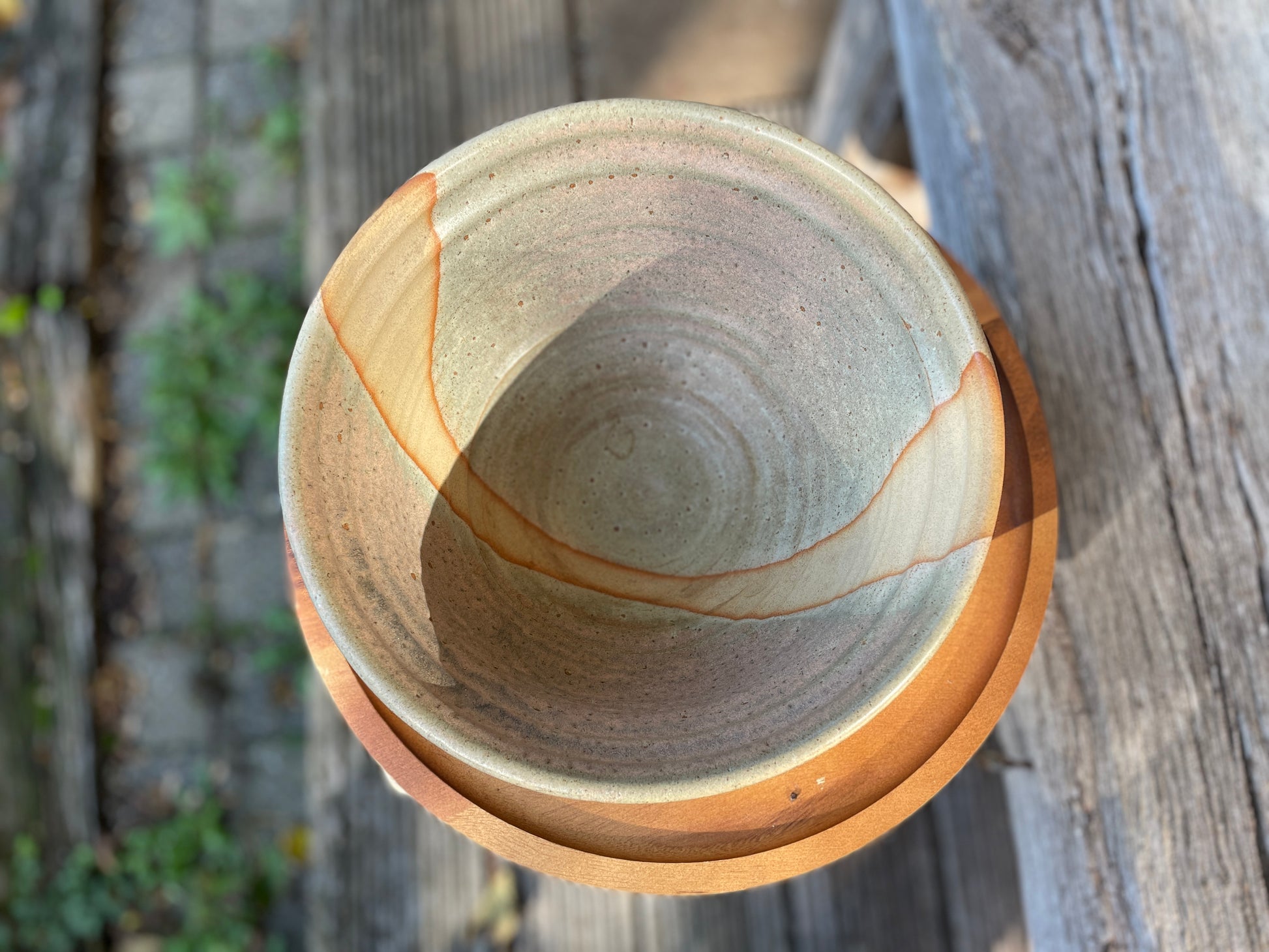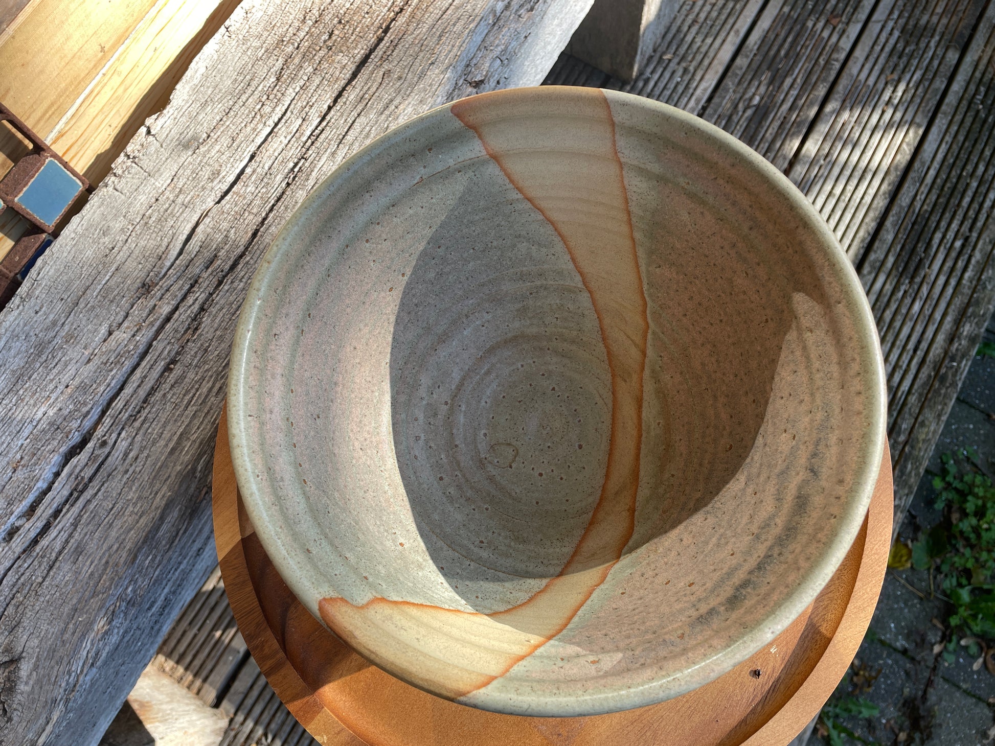 Peter Care studio stoneware bowl impressed seal c1980 26cm diameter