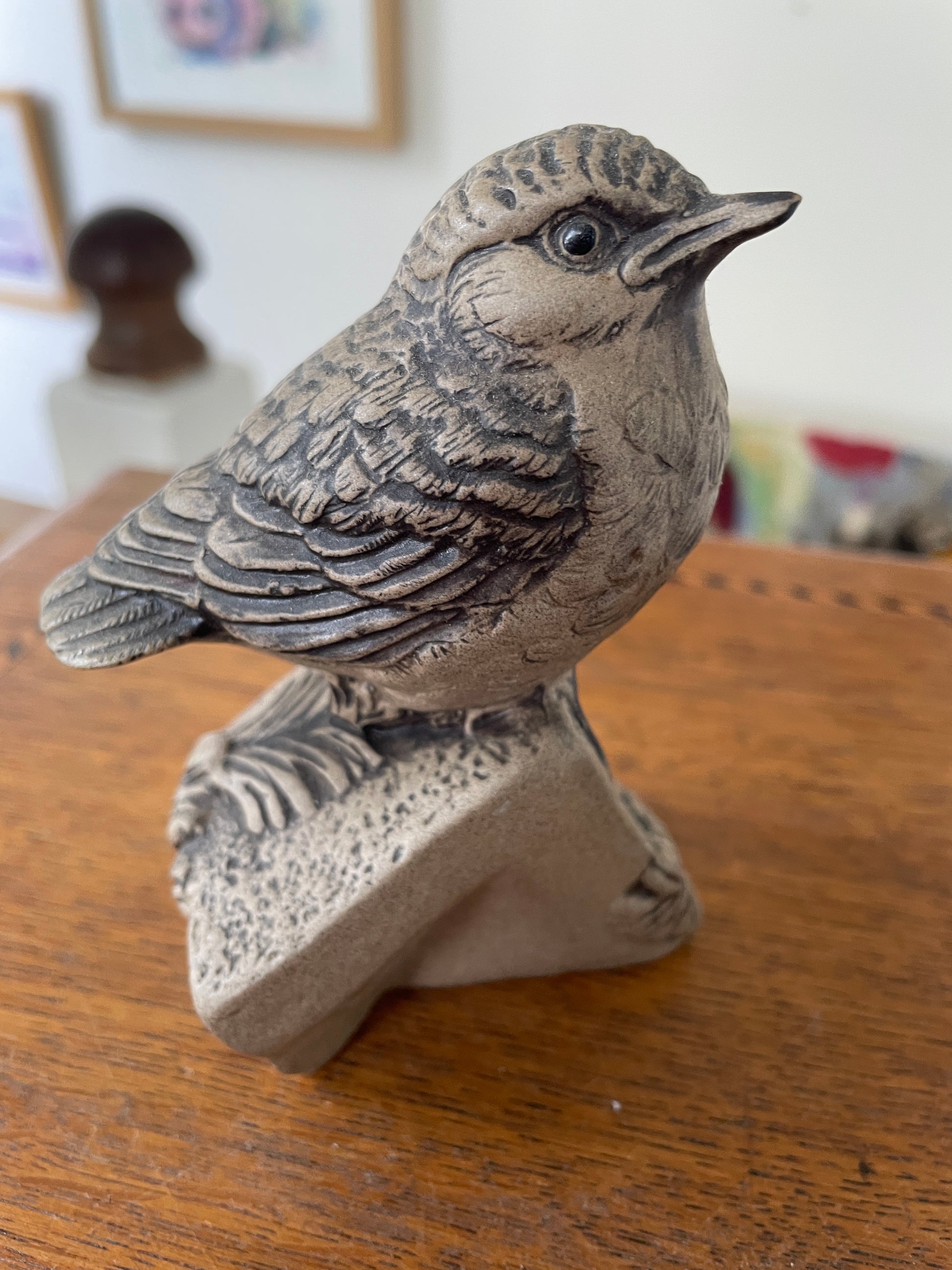 Poole Pottery Stoneware Bird – Small Wren Study with Incised Feathers (c.1970s)