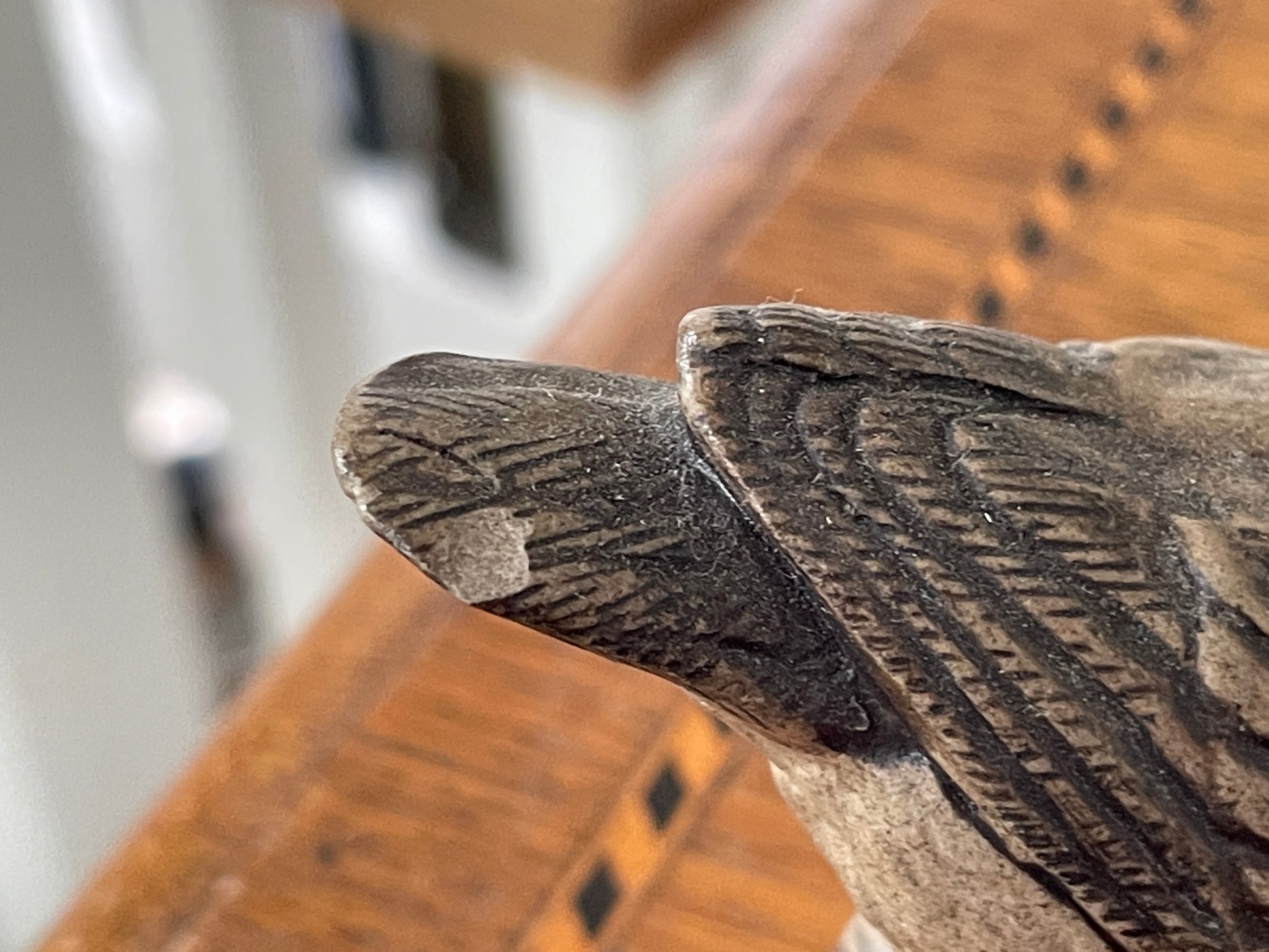 🌿 Smaller bird: Chip to tail tip; no other damage observed.