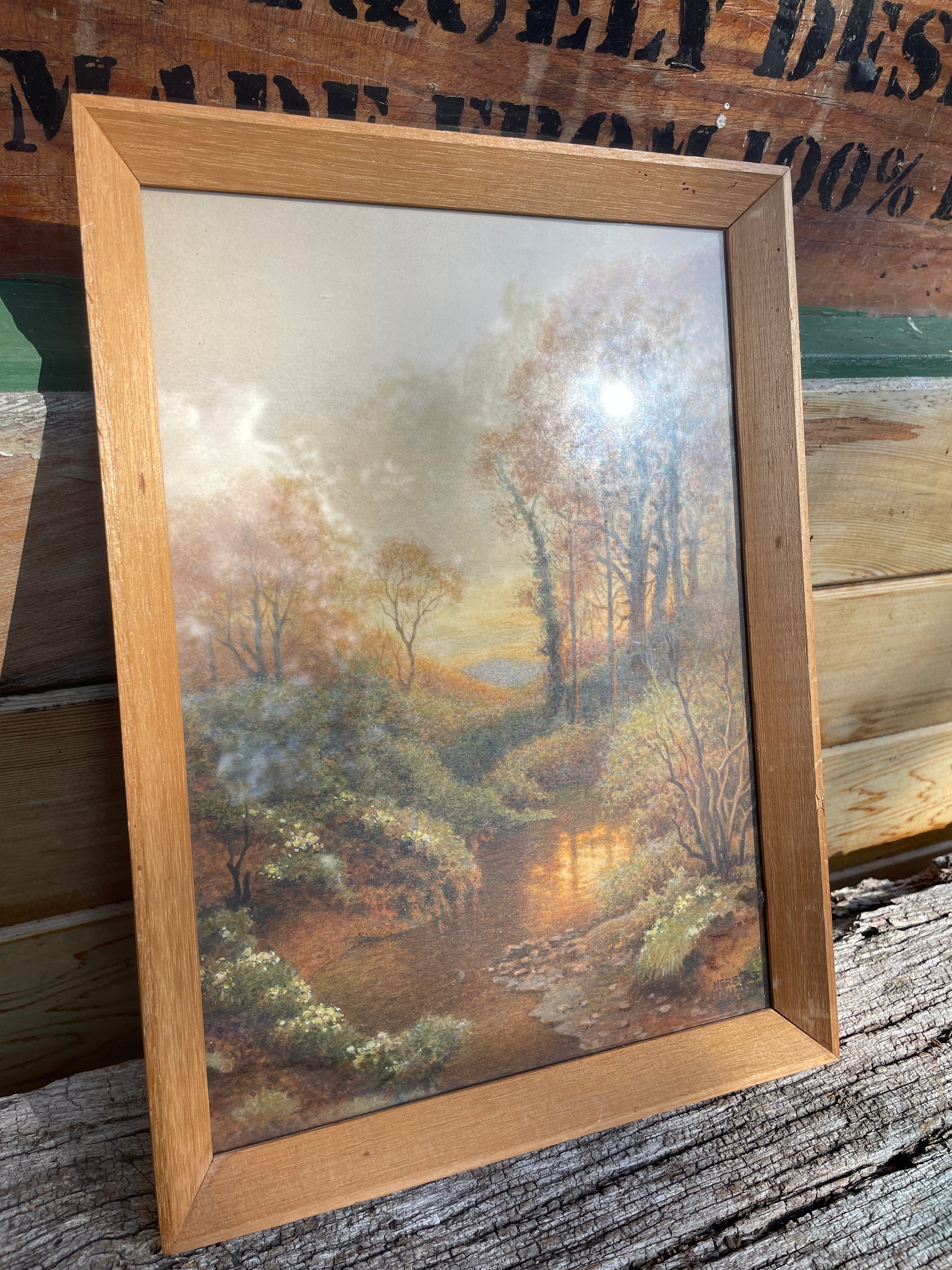 Signed original Herbert Ahier watercolour river and woodland scene 1966 framed and glazed - 28x20cm