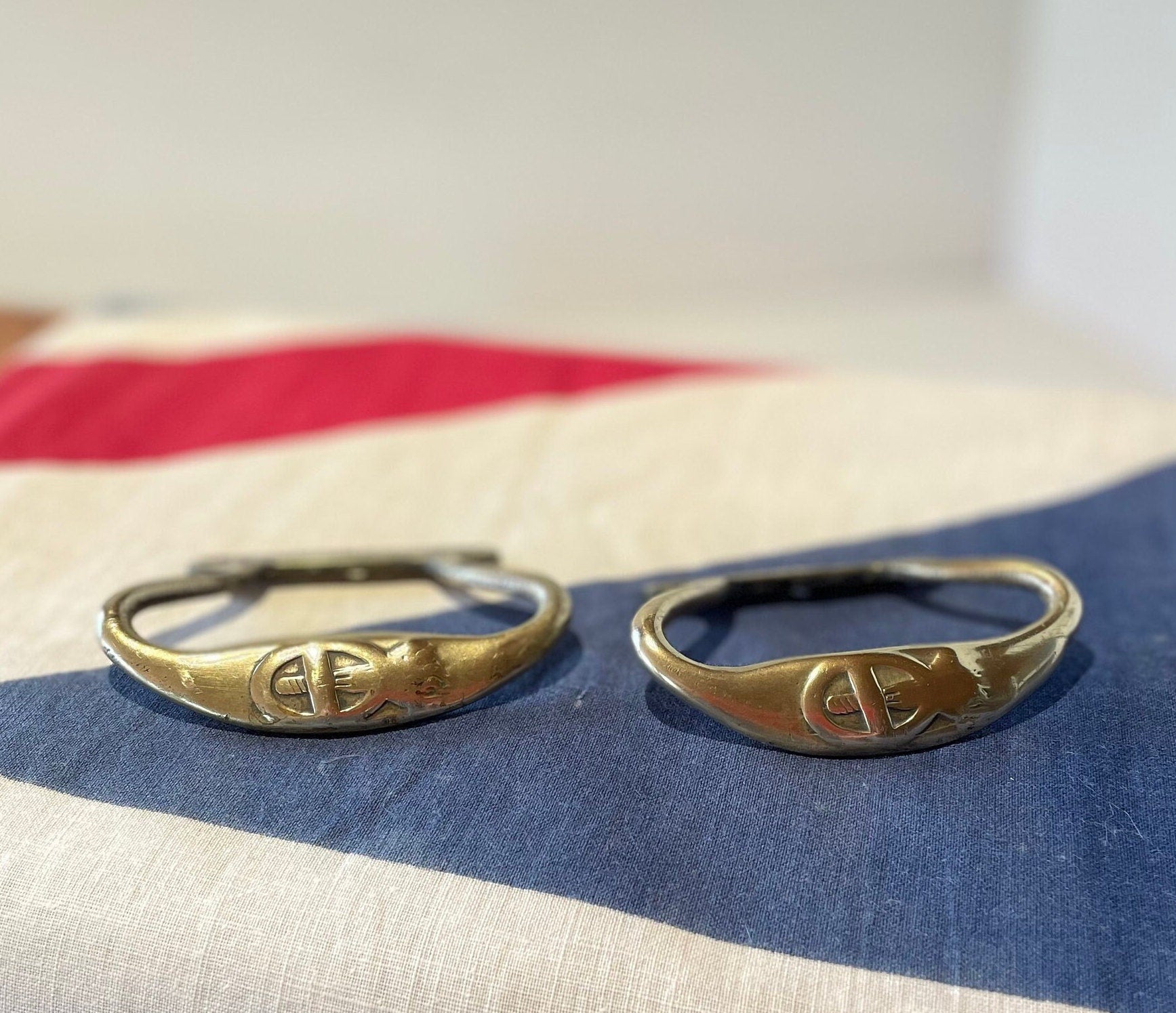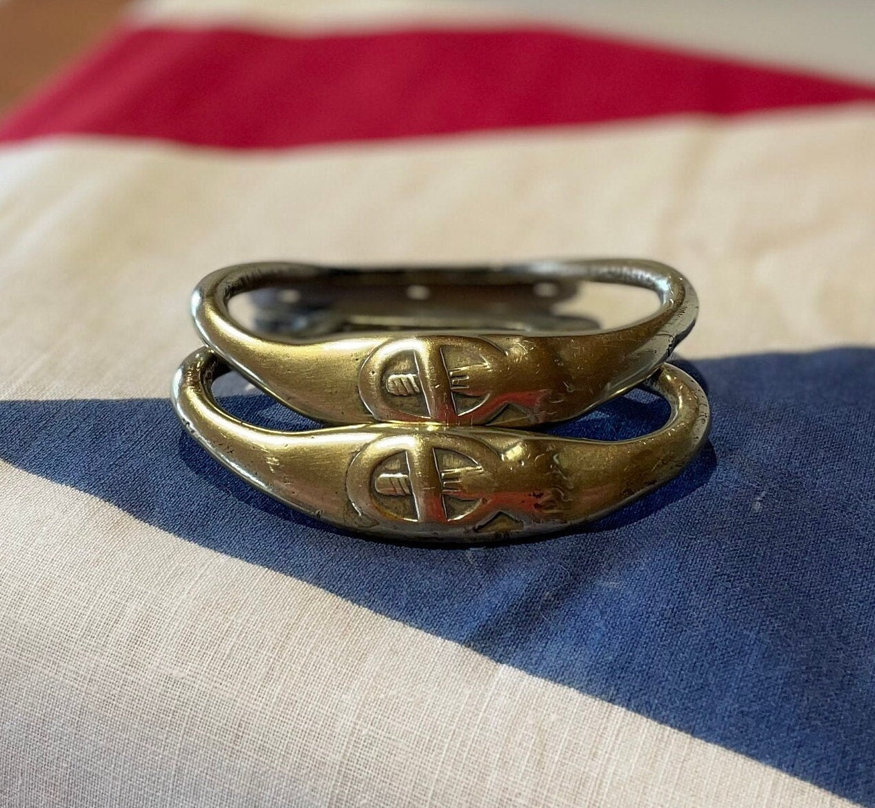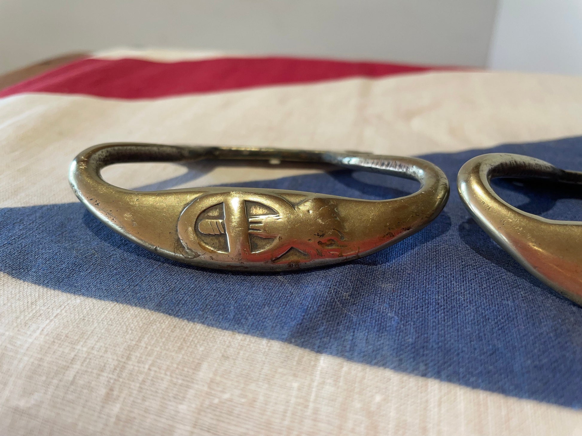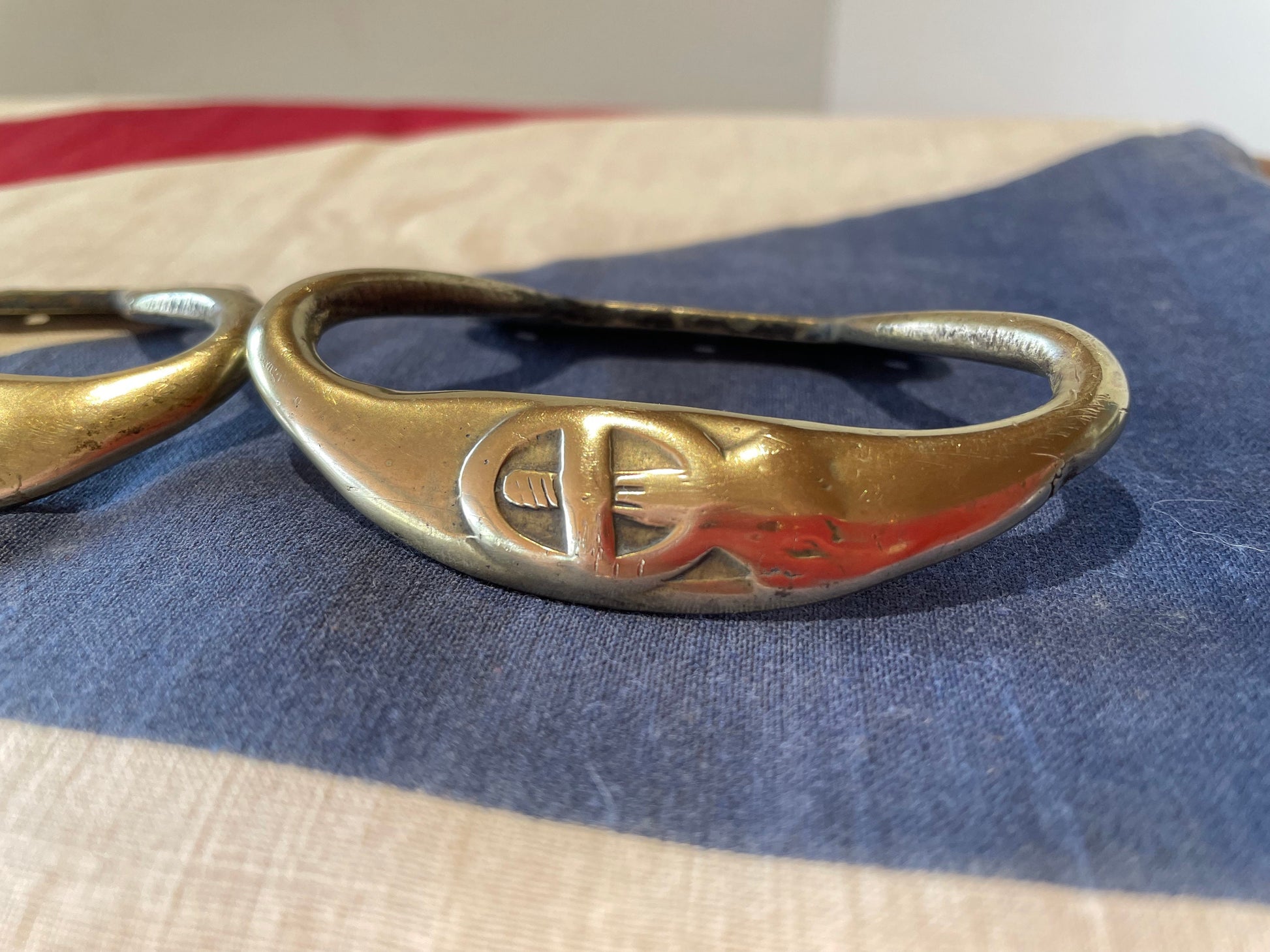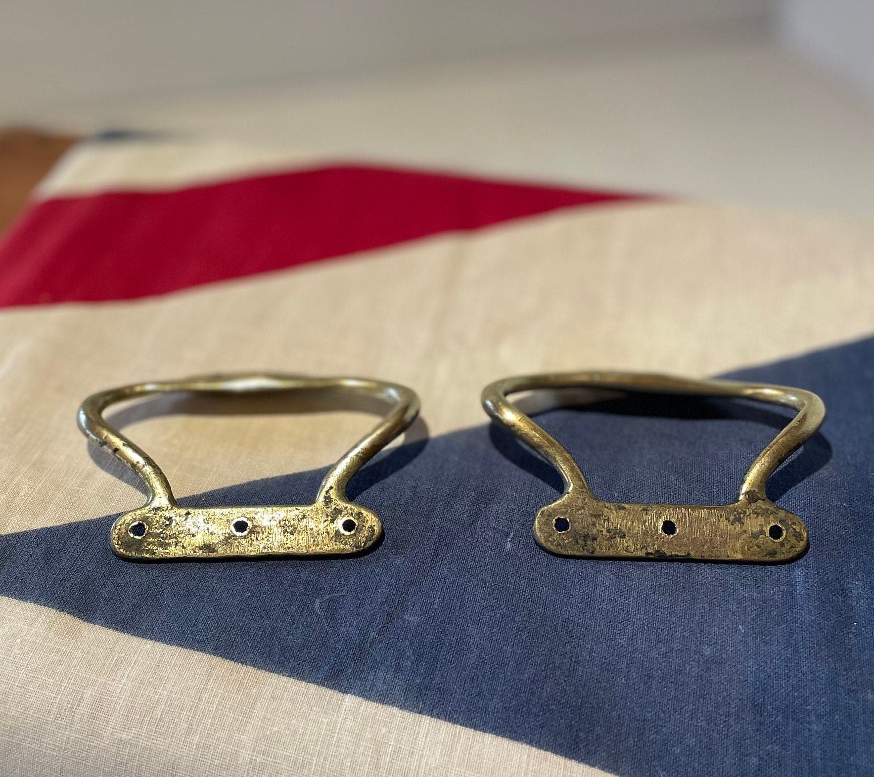 Two Identical Antique Brass Art Nouveau Style Handles 8cm Wide