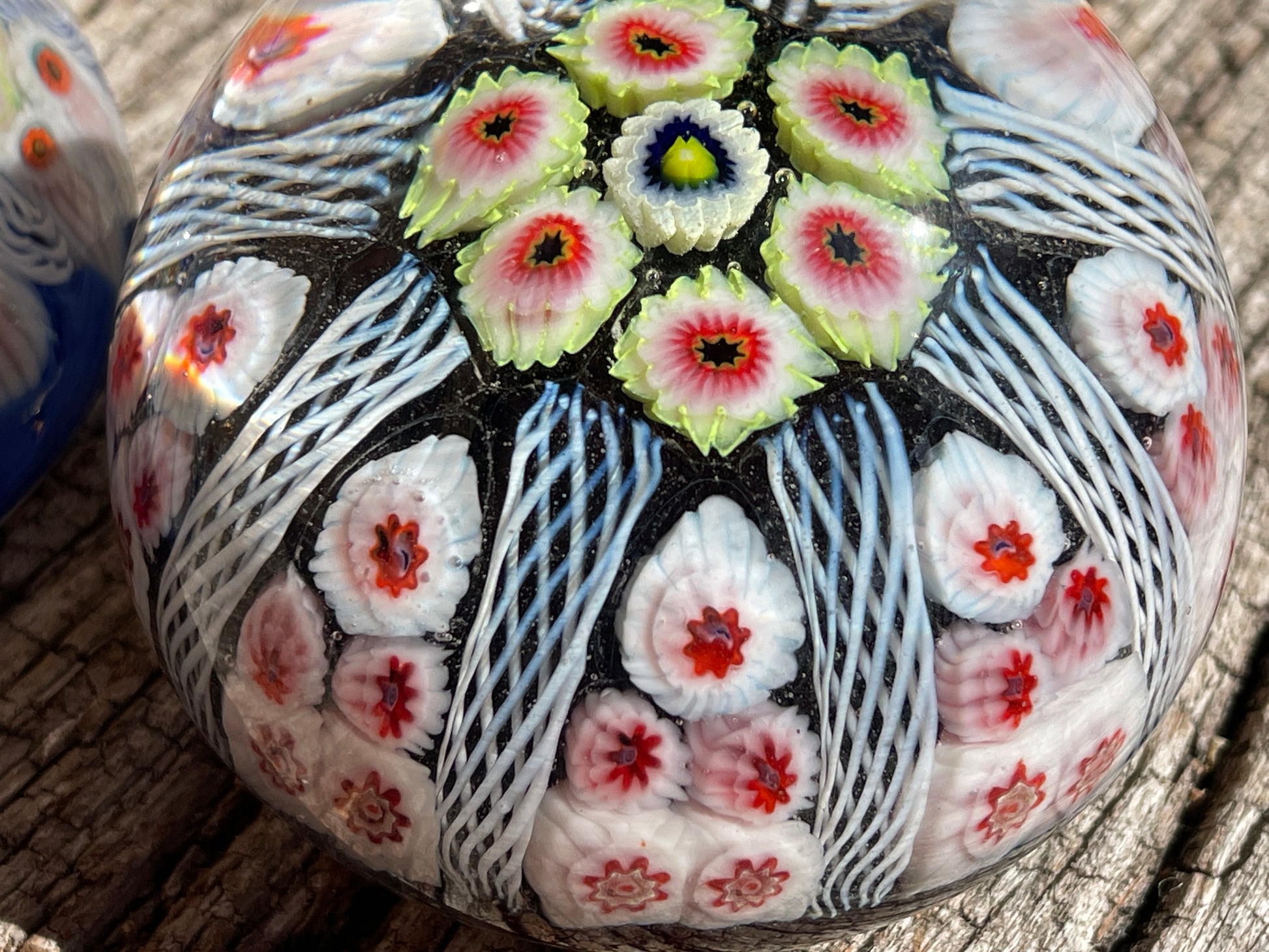 Mid Century polychrome radial twists interspersed with cane - each 46cm diameter
