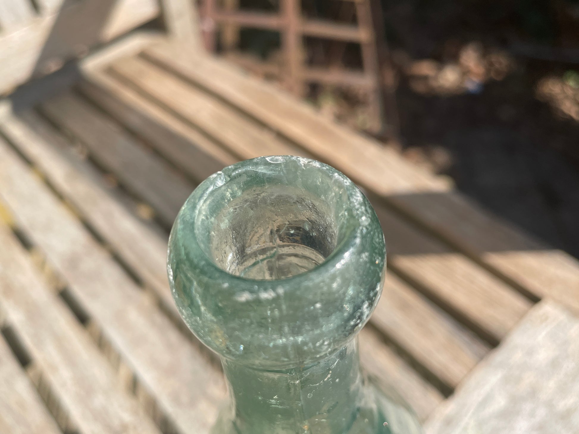 Two Victorian Ellis Ruthin Torpedo mineral water clear glass bottles c1890
