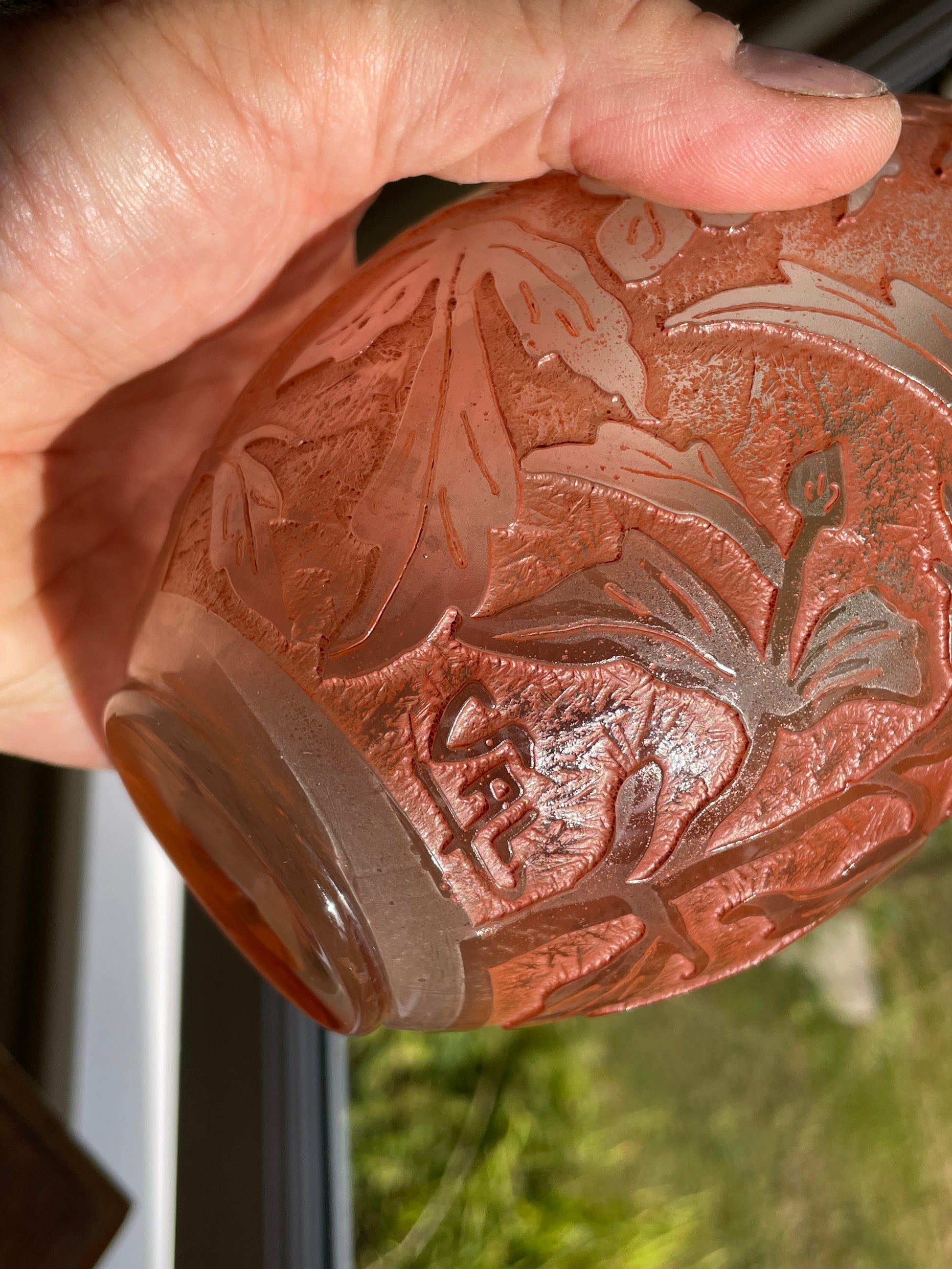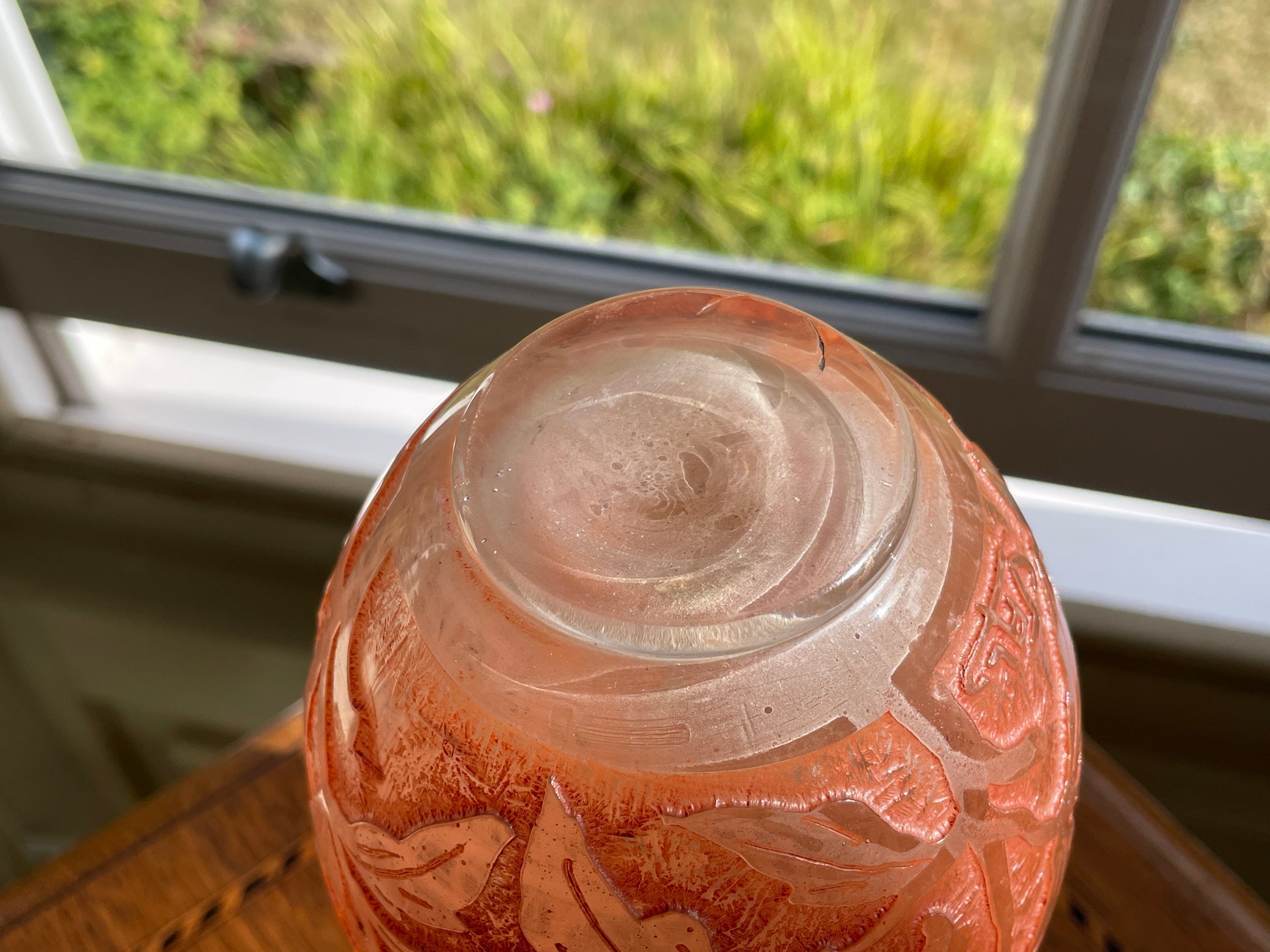 A beautiful example of French cameo glass, perfect for collectors of Art Nouveau revival glassware or as a decorative accent with vintage character