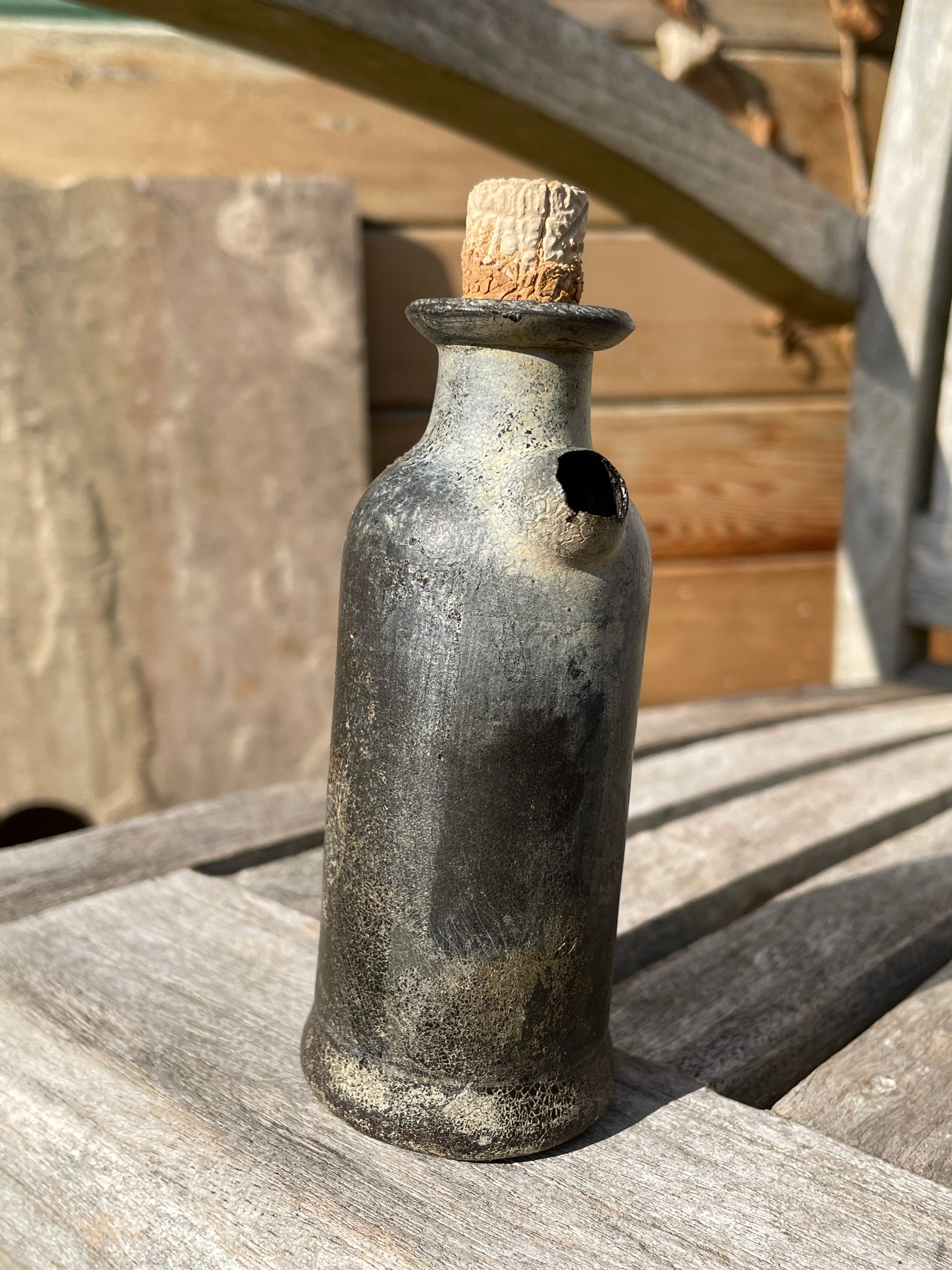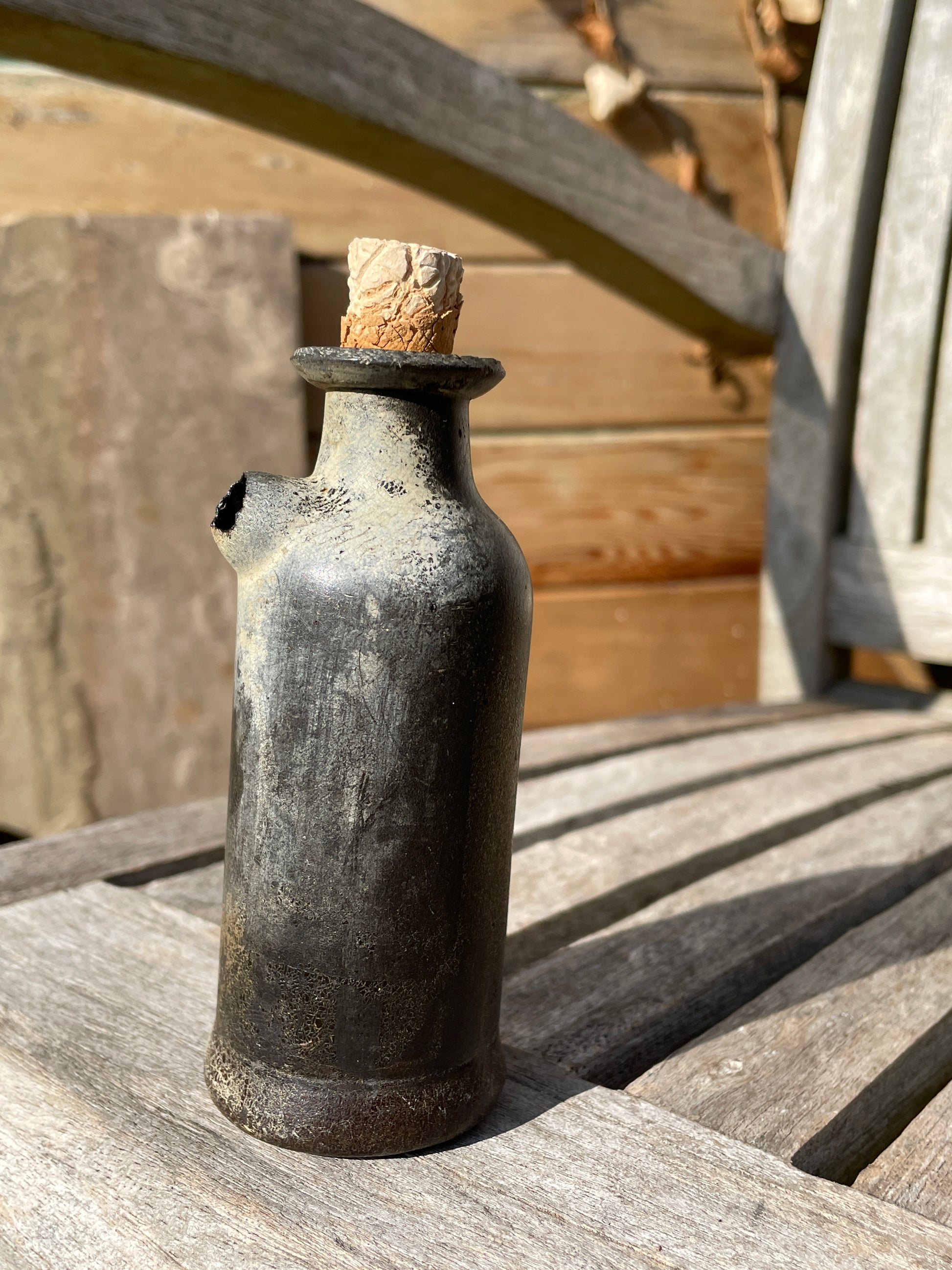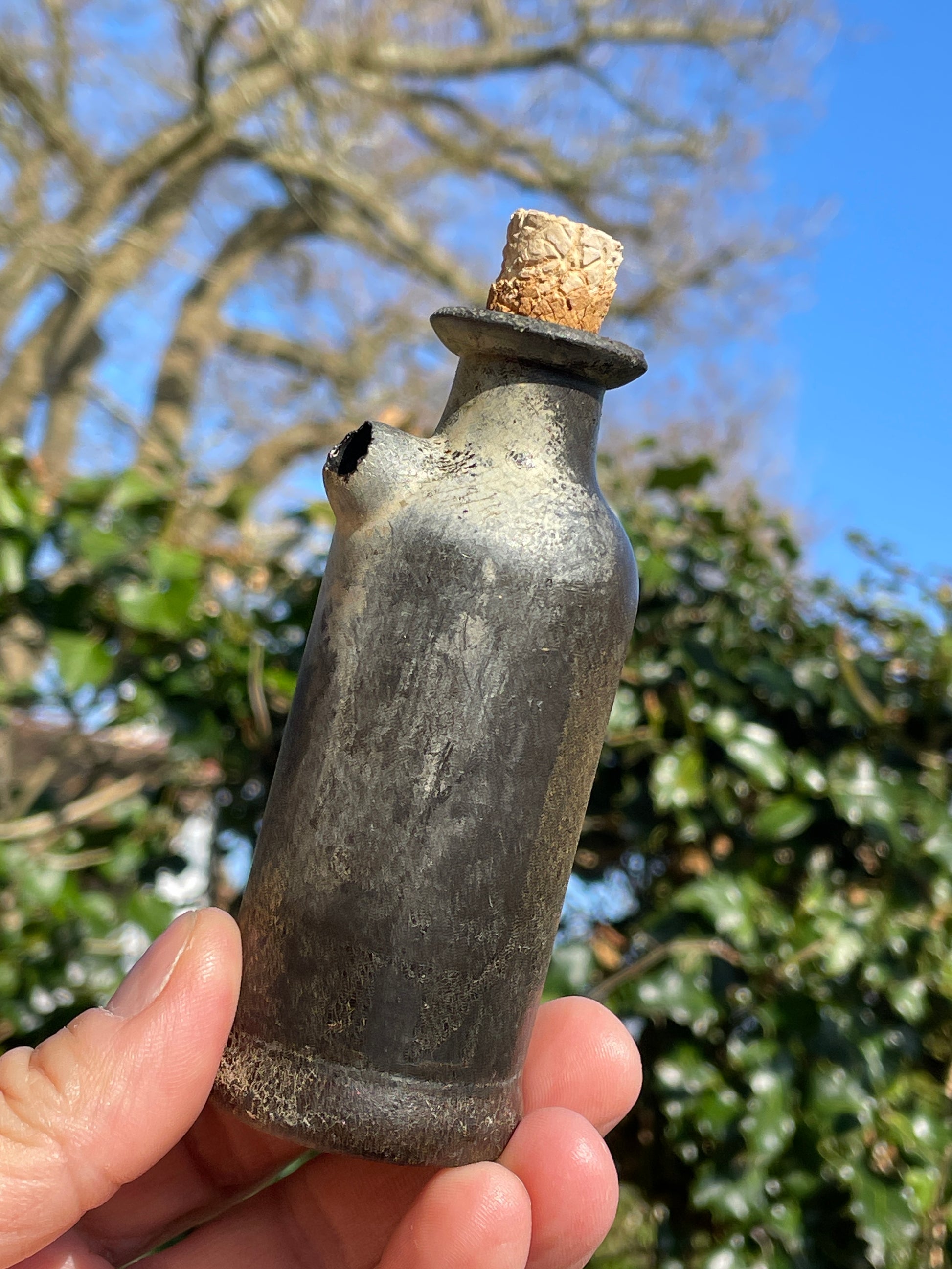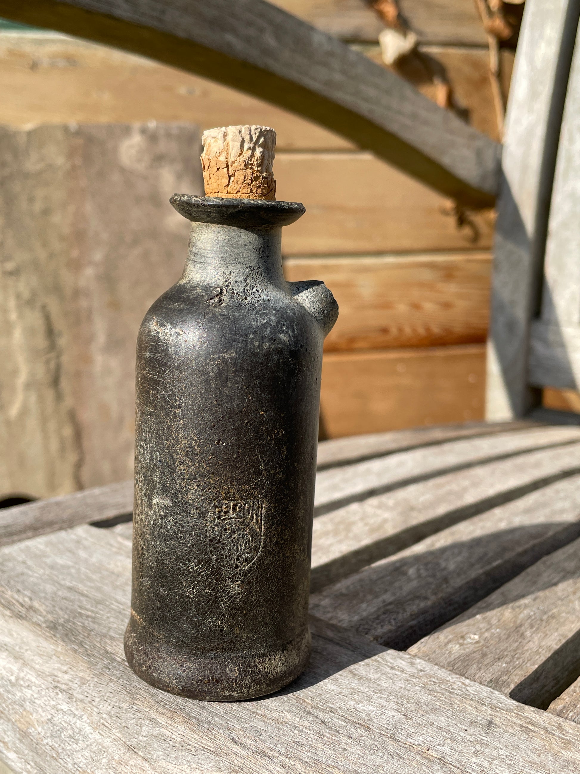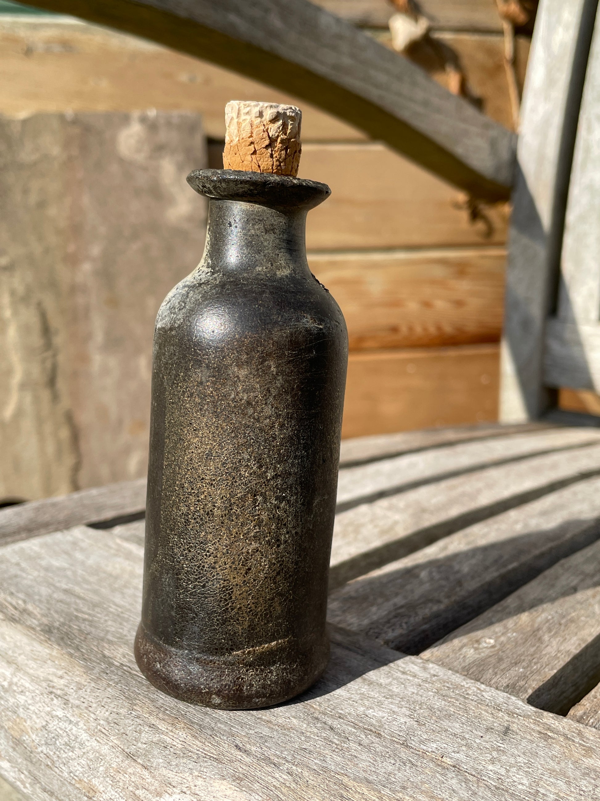Very rare leather tincture phial poison bottle with original cork 11.5cm tall