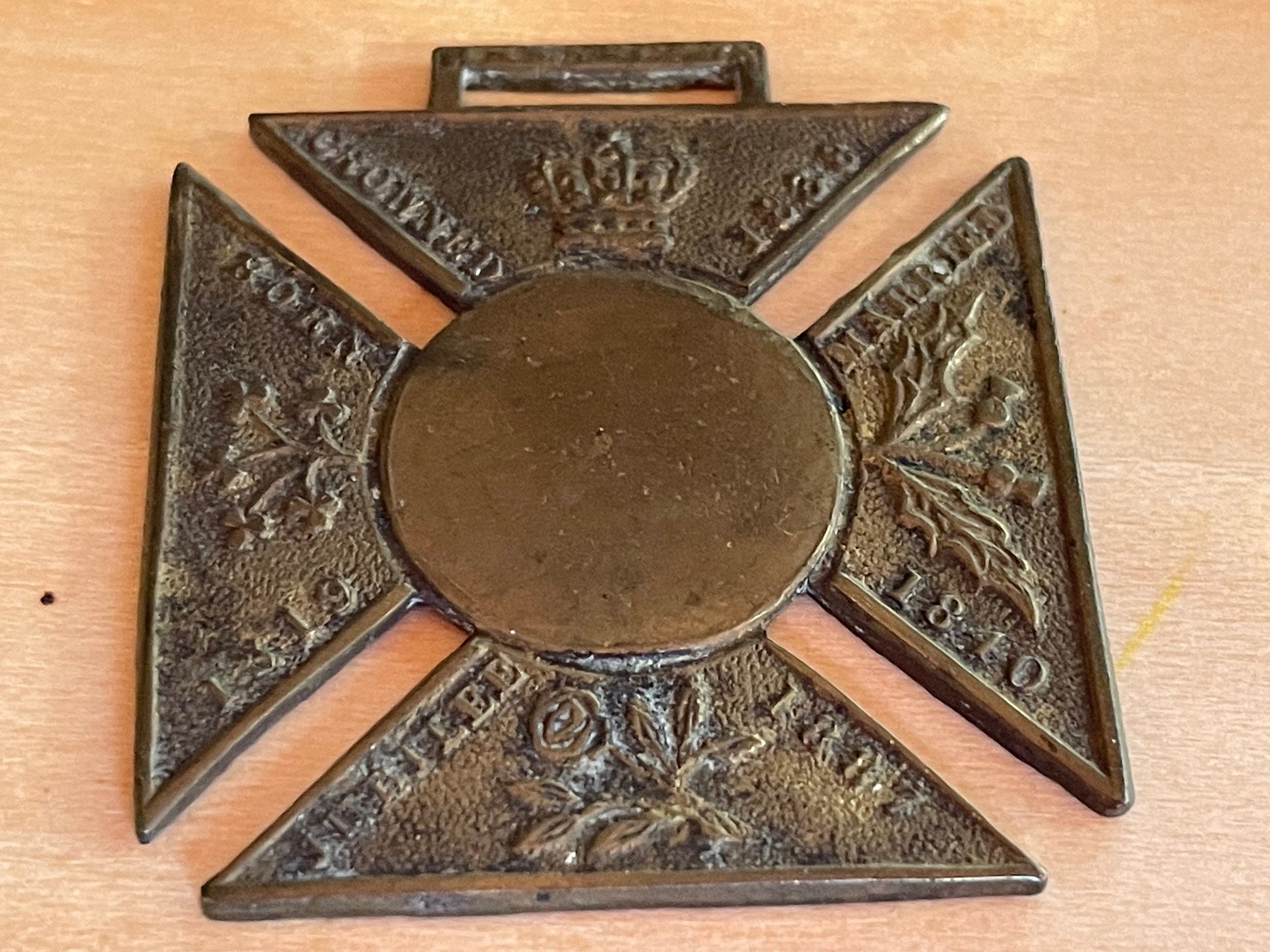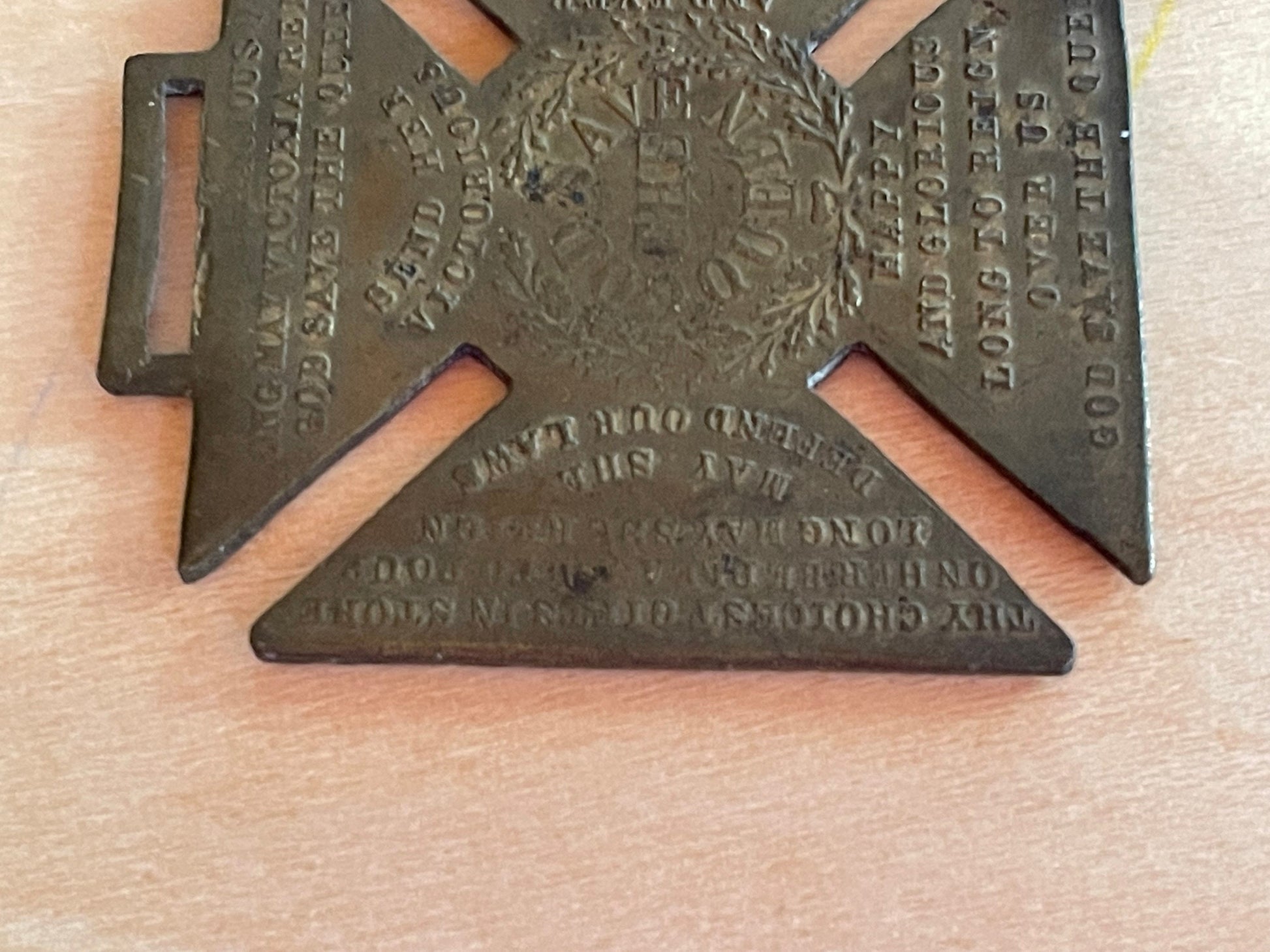 Very Rare Medallion Fob Commemorating Queen Victoria Born 1819 Crowned 1838 Married 1840 Jubilee 1887 Brass 37mm x 40mm
