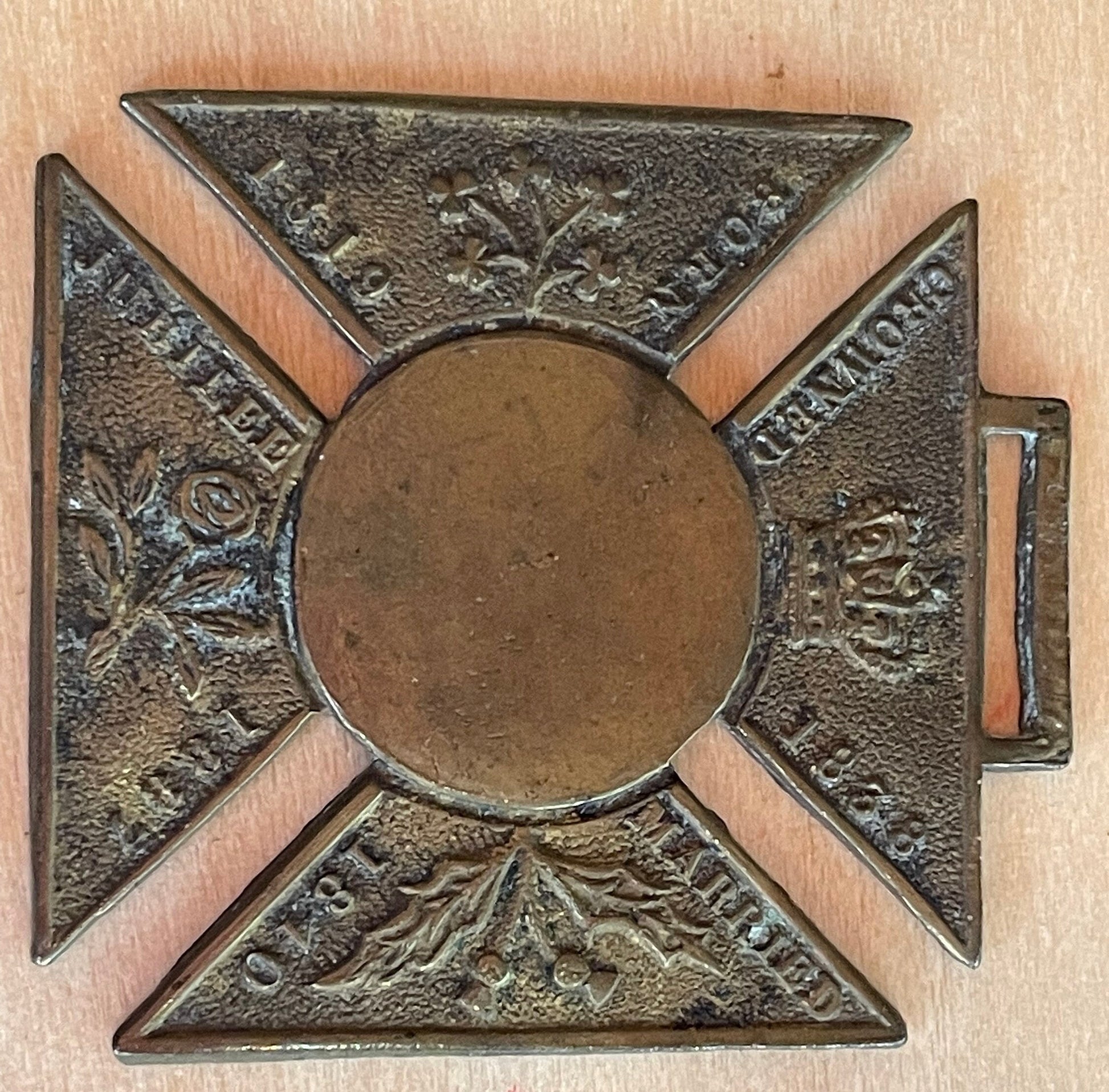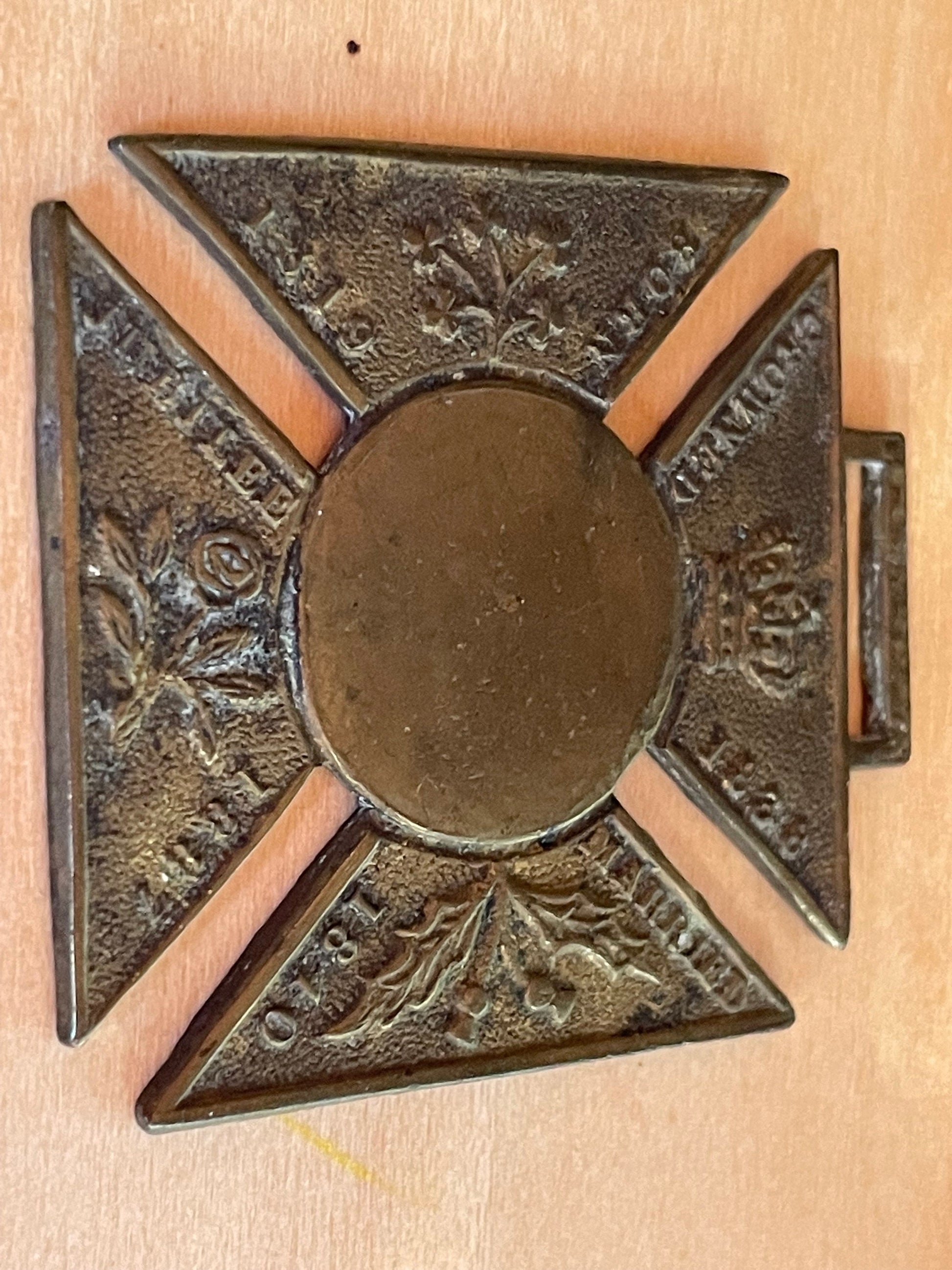 The Medallion is made from and measures Brass 37mm x 40mm