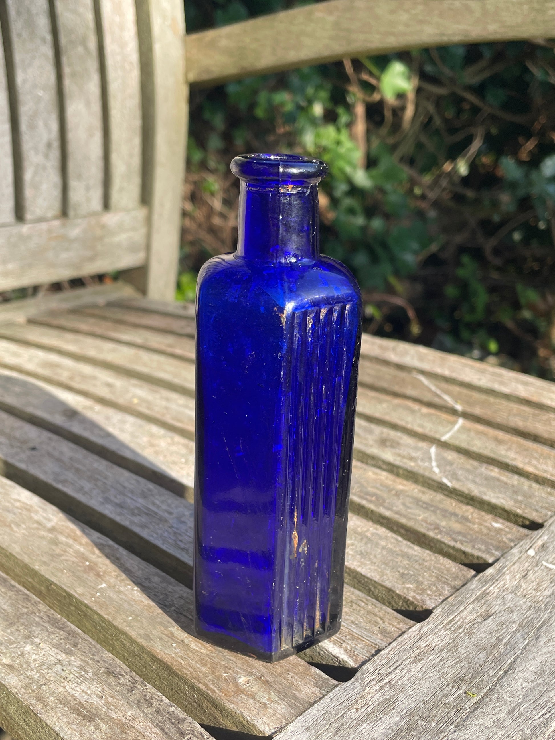 Victorian cobalt blue hexagonal 4oz 'Not To Be Taken' Poison Bottle c1890's