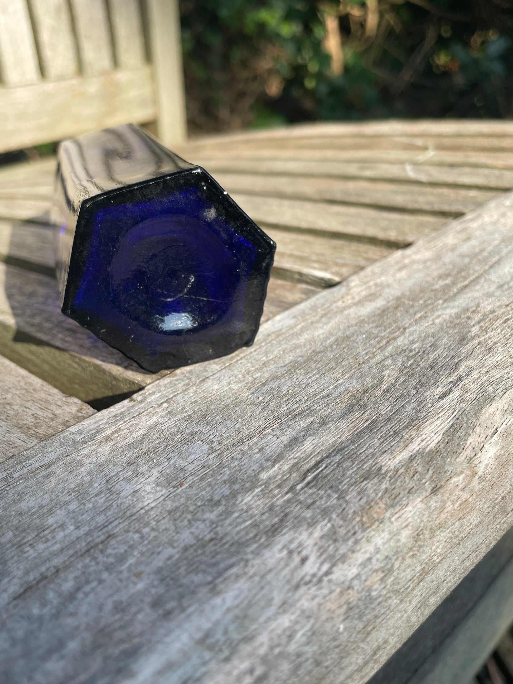 Victorian cobalt blue hexagonal 'Not To Be Taken' Poison Bottle c1890's