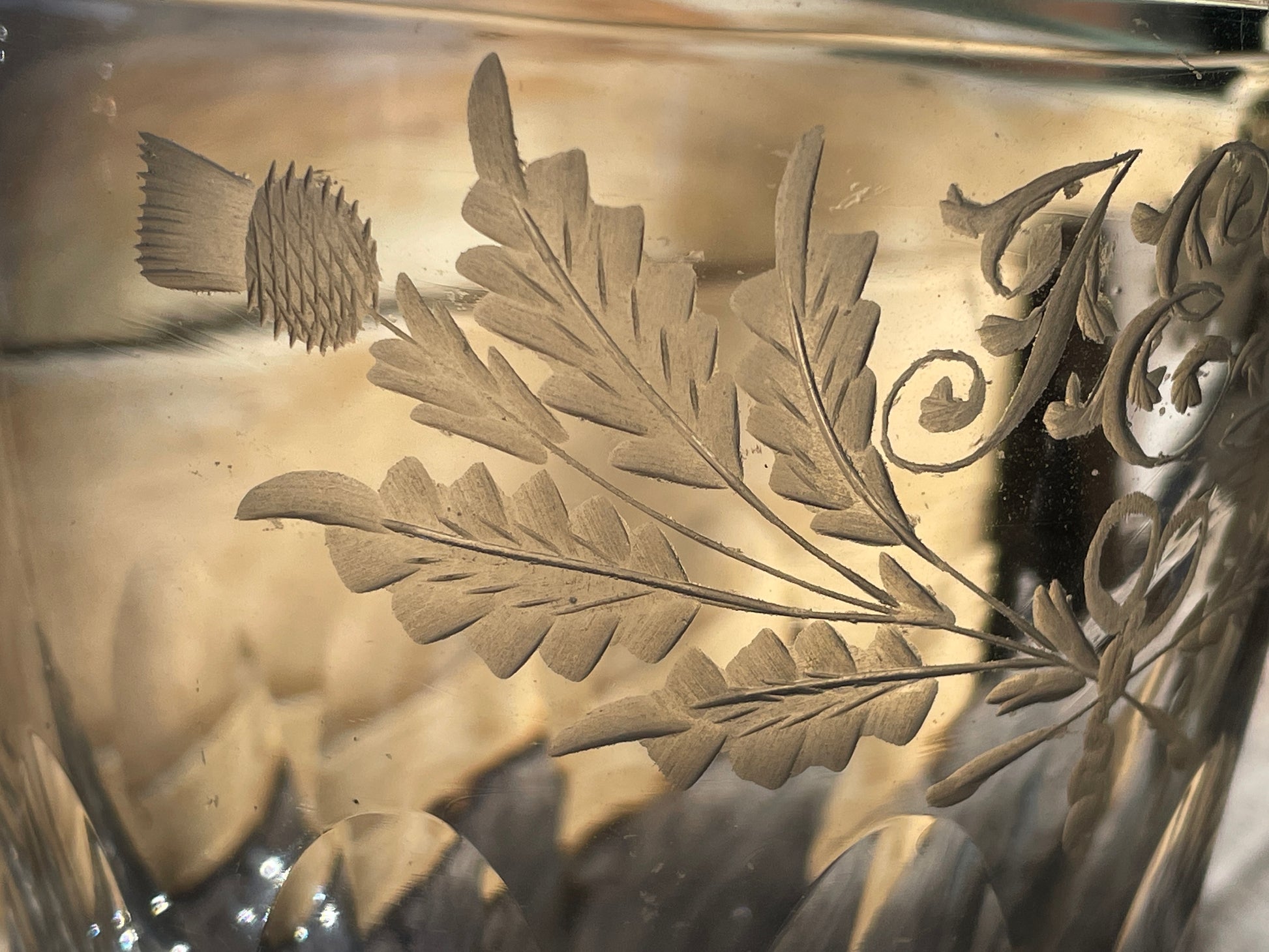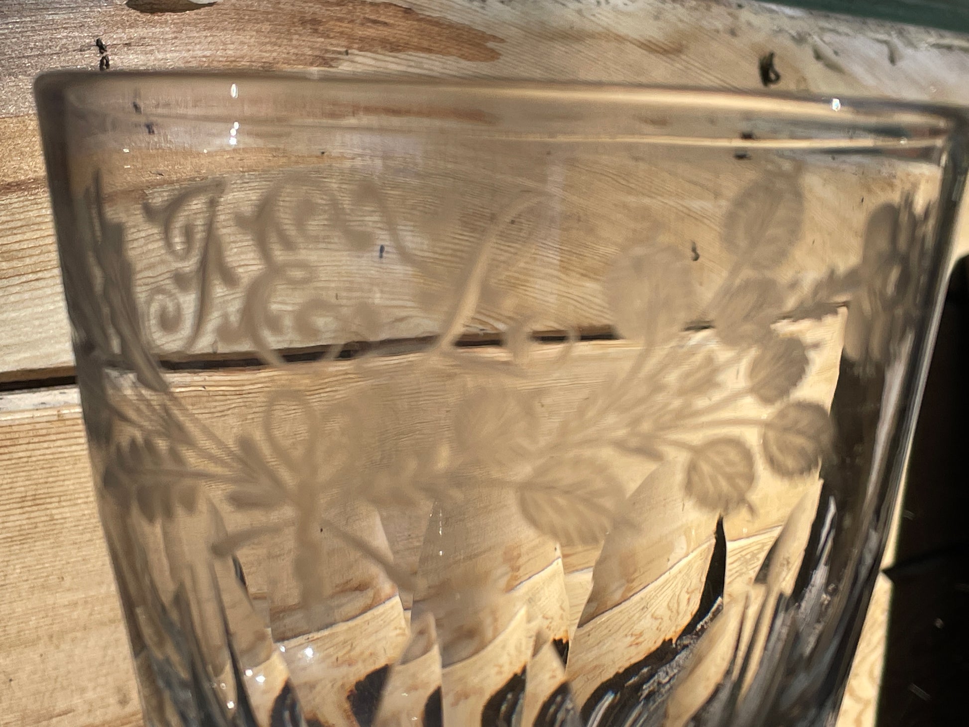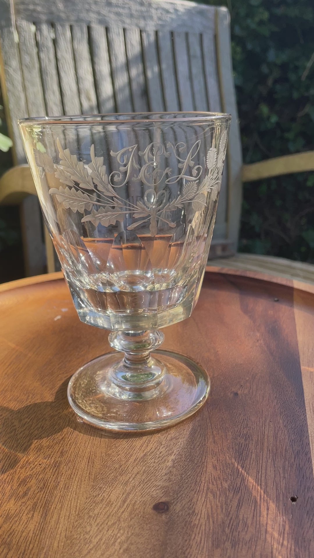 A really nice large Victorian glass rummer with the initials J E L and floral (thistle)design etched in the face