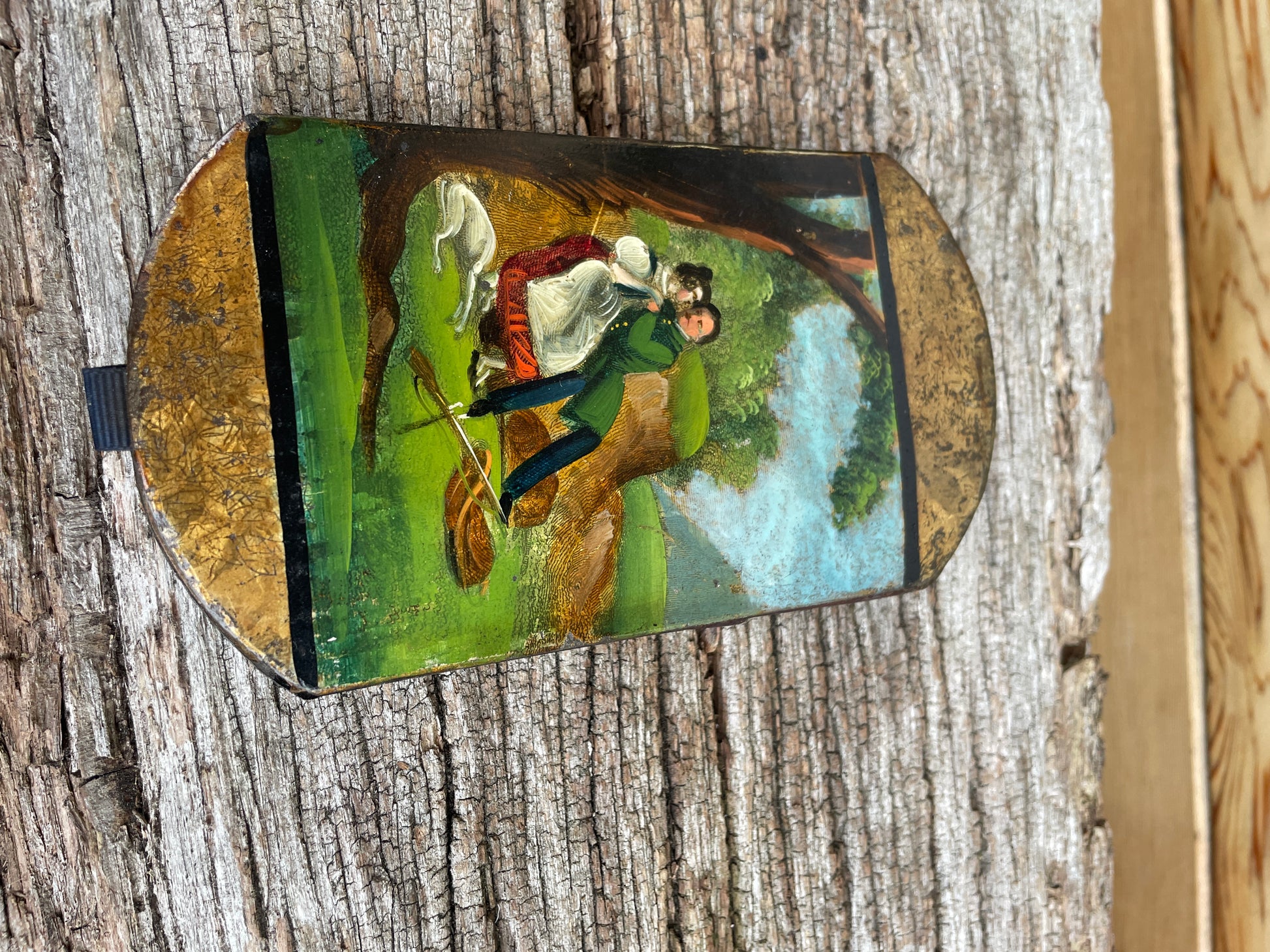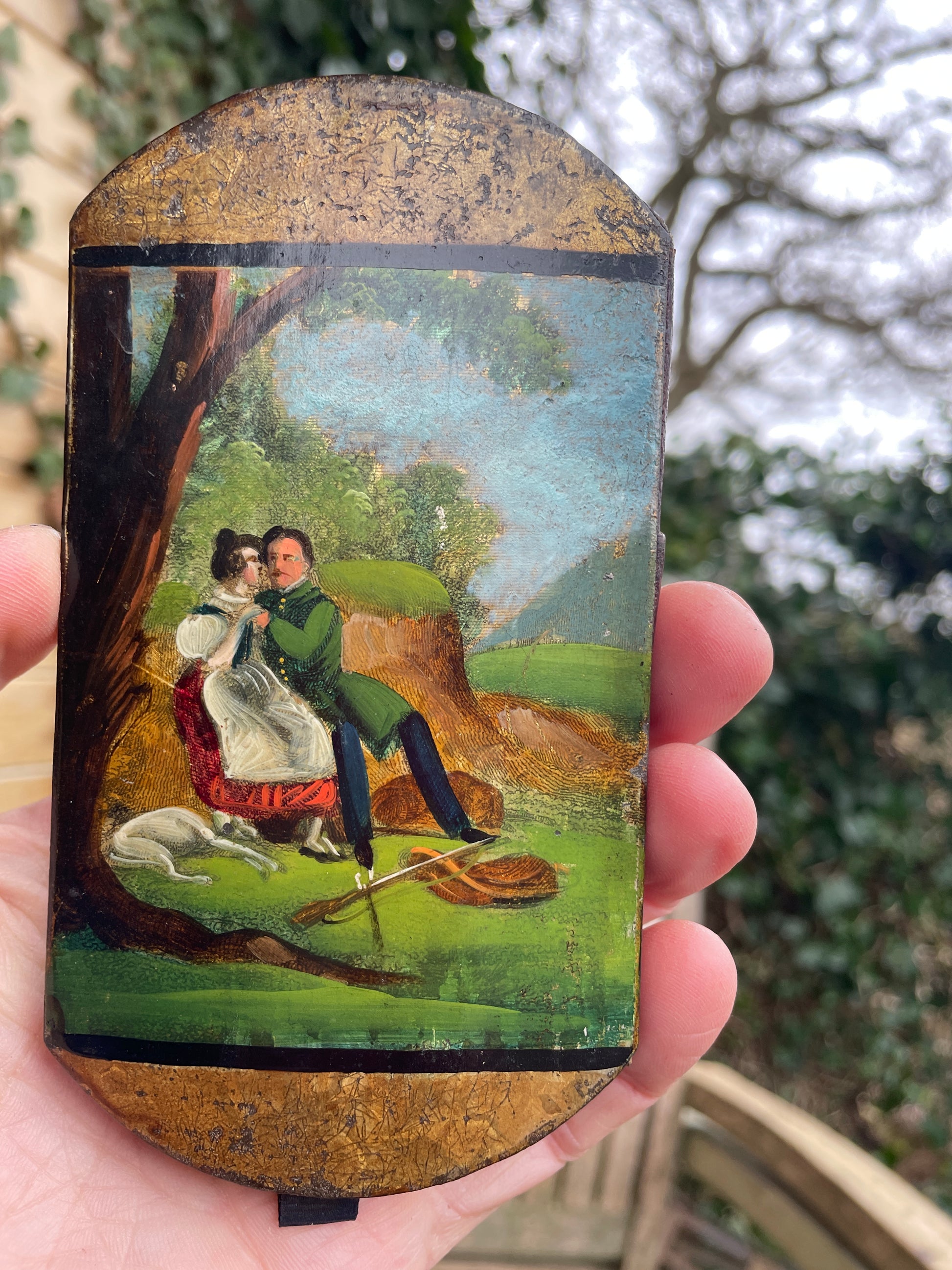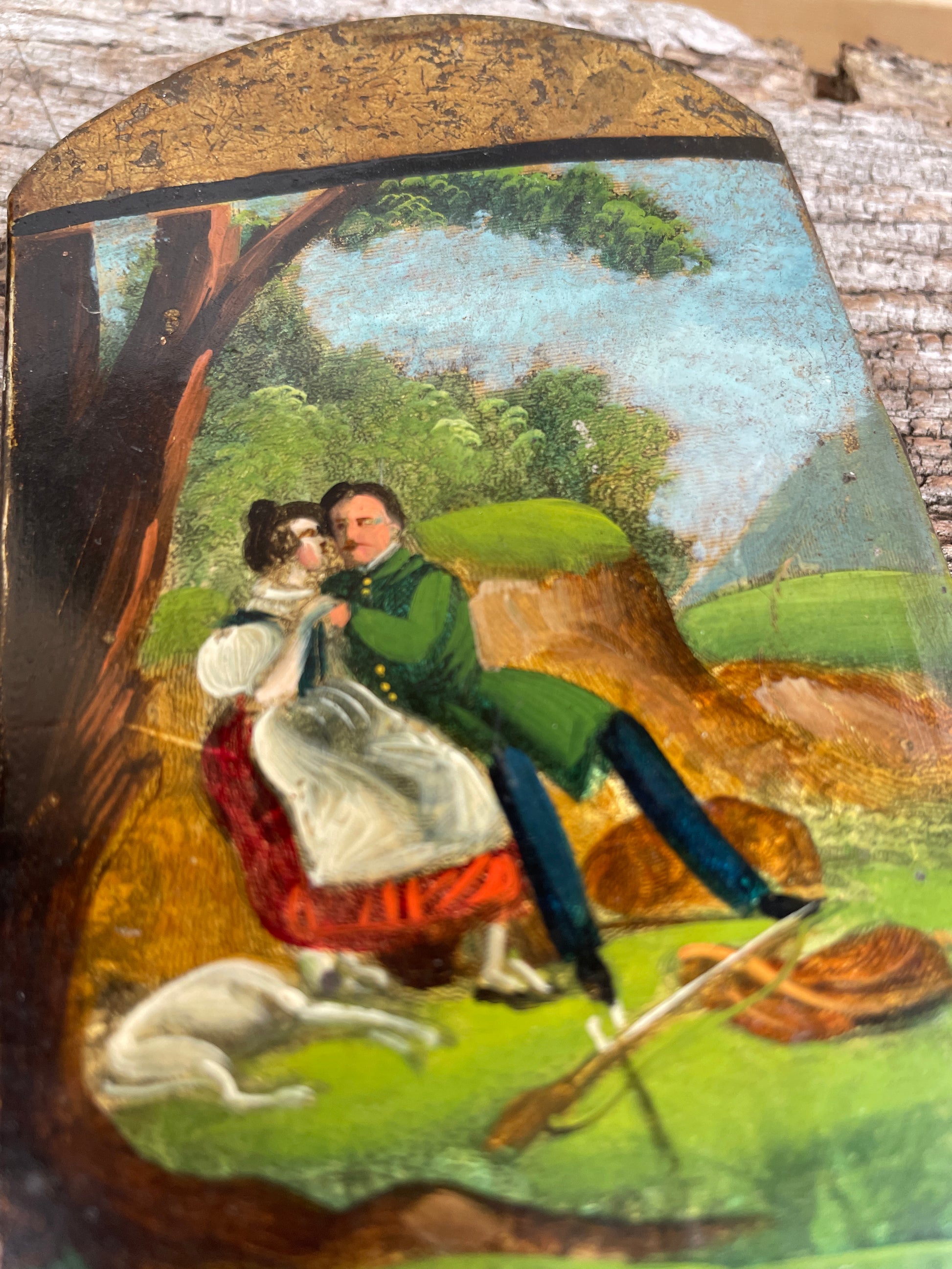 This is a wonderful piece of everyday Victoriana- they were so flamboyant in this period; taking the time and effort to decorate something that could be construed as mundane with such a lovely romantic painting
