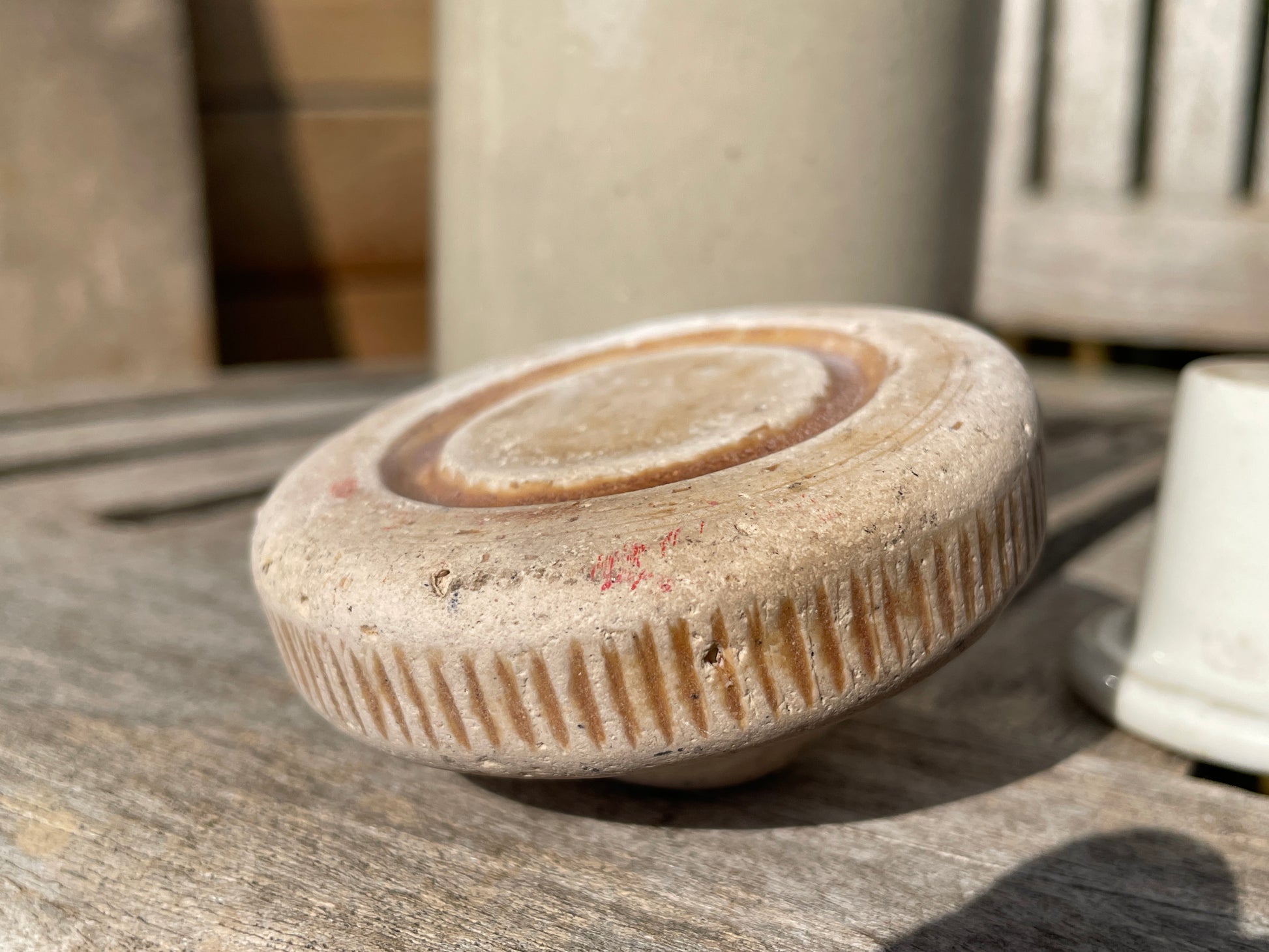 Victorian Stone bottle crock stopper, ceramic ink well and later Stoneware pot