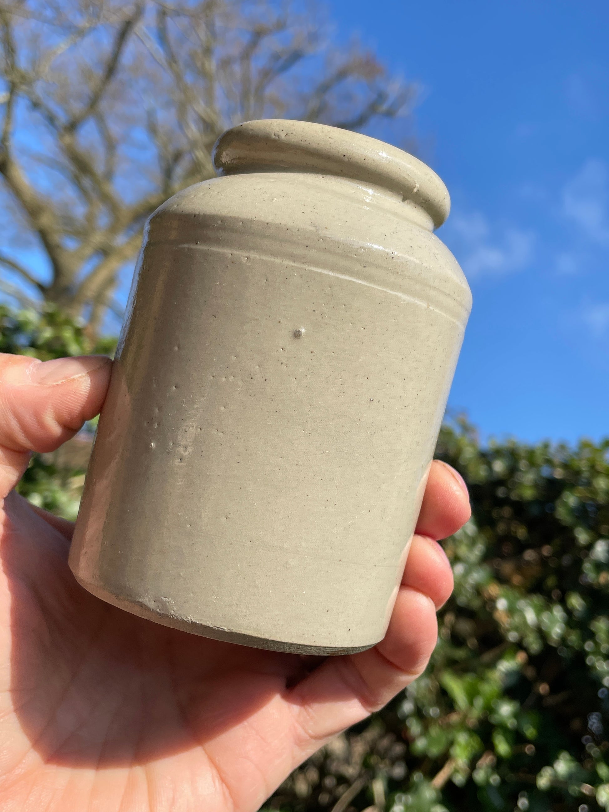 Pot in perfect order; ceramic ink well no chips or cracks measures 45mm diameter top and 28mm diameter bottom and the crock is just a really lovely tactile object showing its age, measures 64mm diameter top and the stopper is 30mm