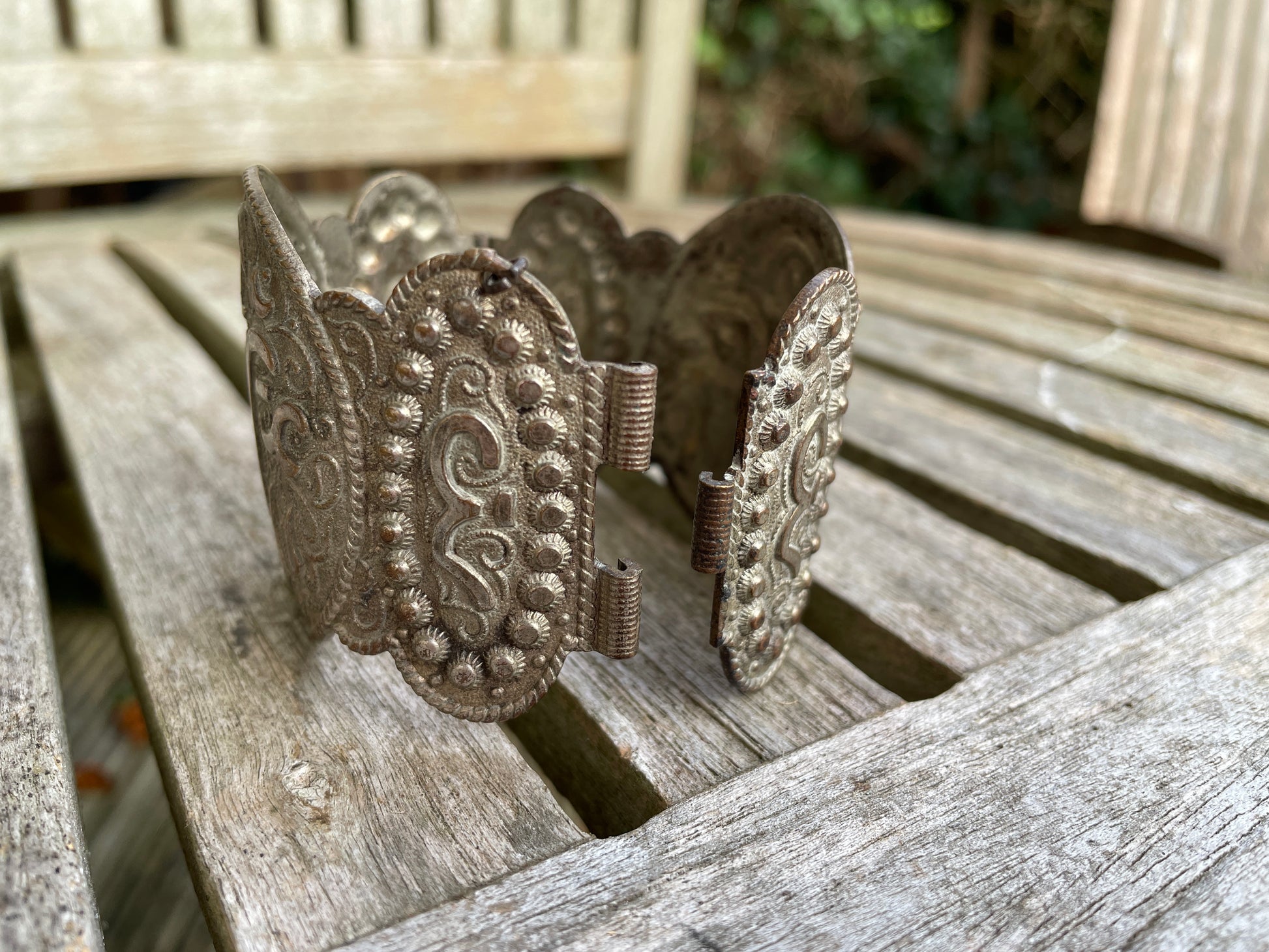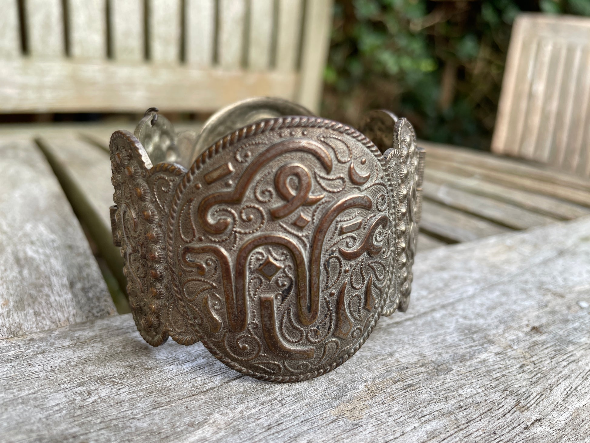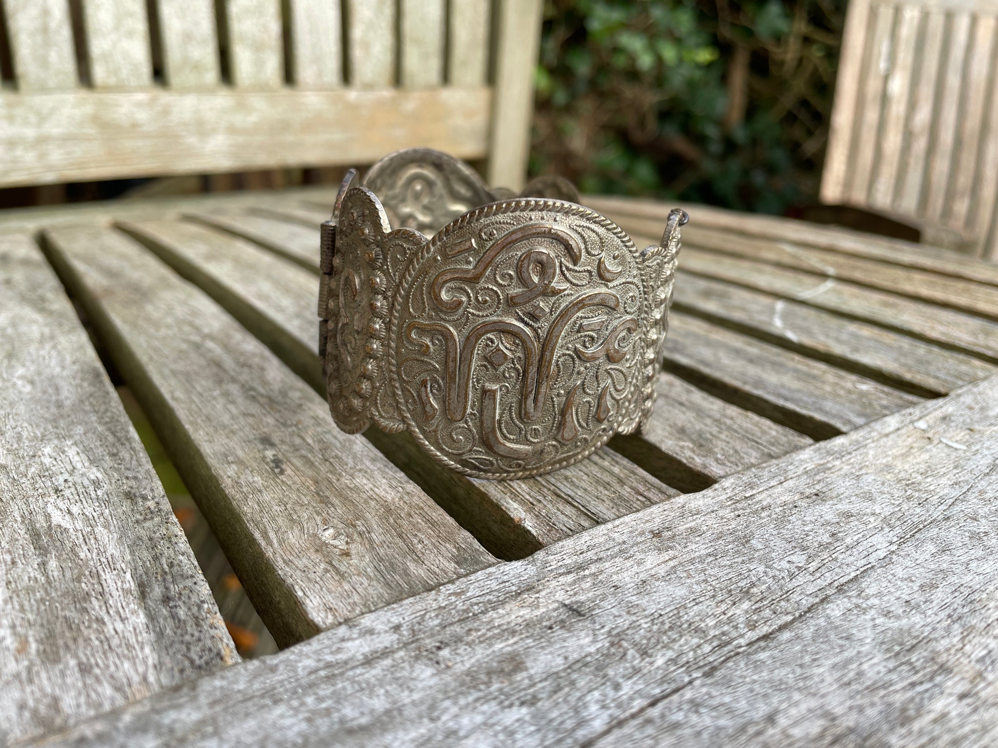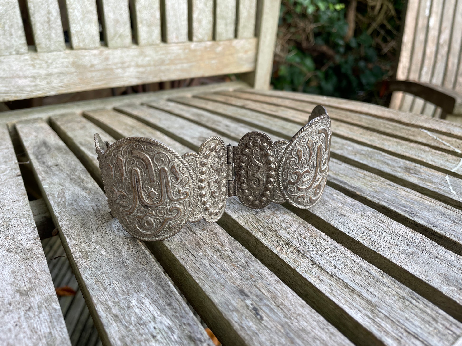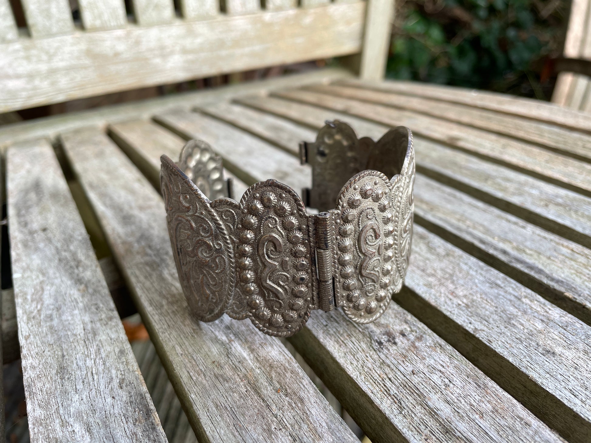 Vintage Bedouin bracelet white metal jewellery 6cm int diameter