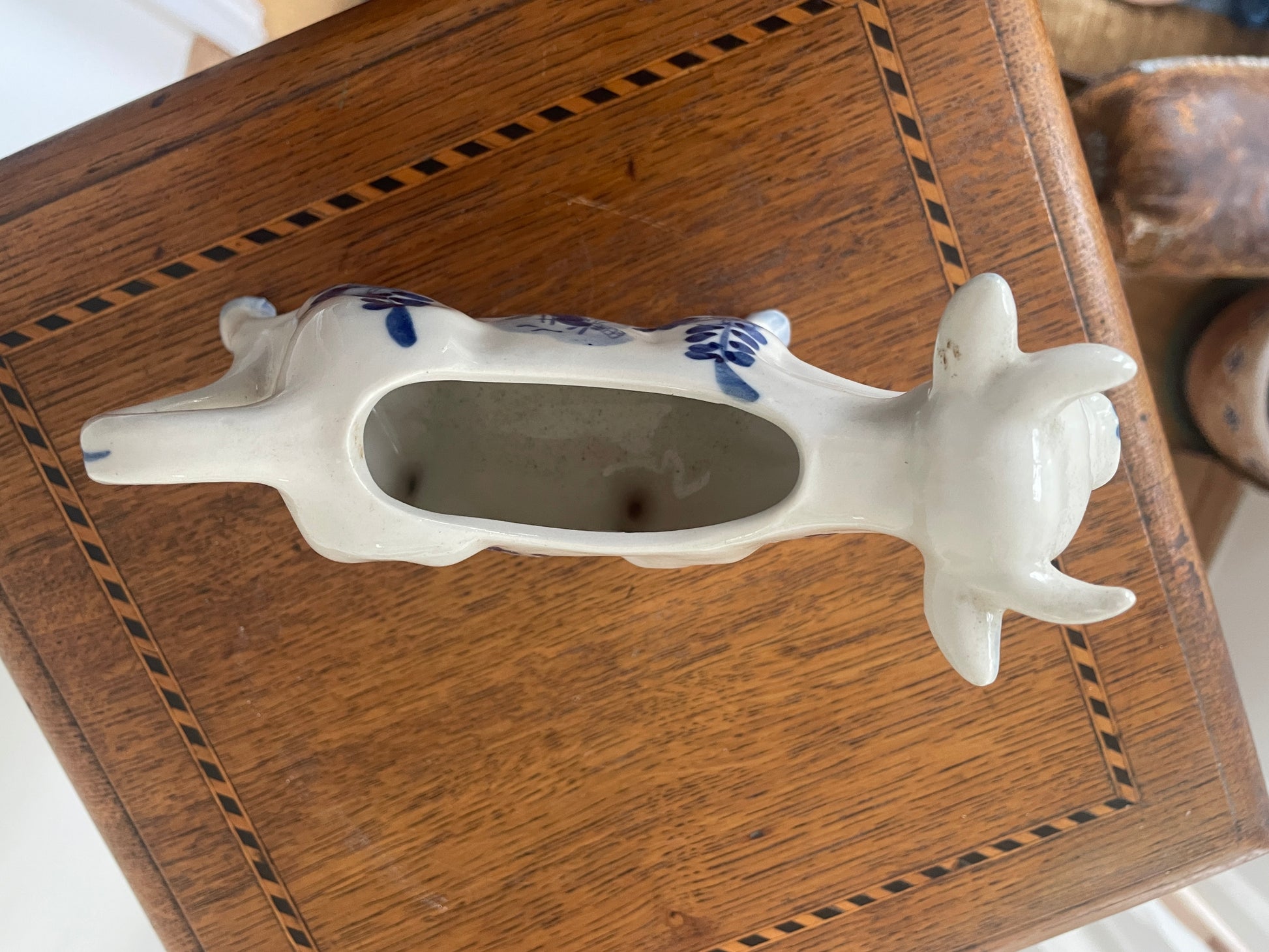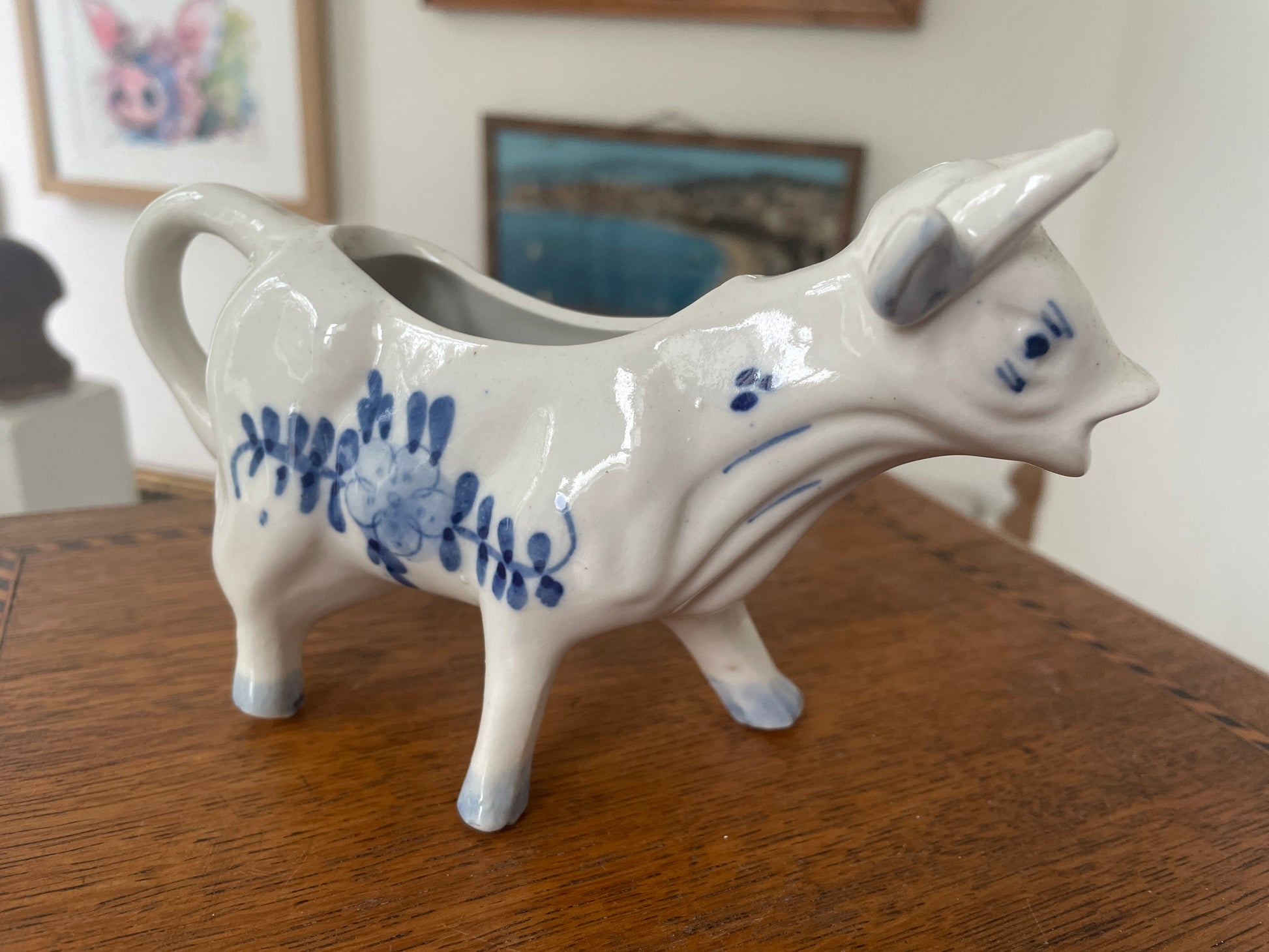 This cow creamer is both decorative and functional – perfect as a serving jug, a farmhouse kitchen accent, or a collectible piece of Delftware for display.