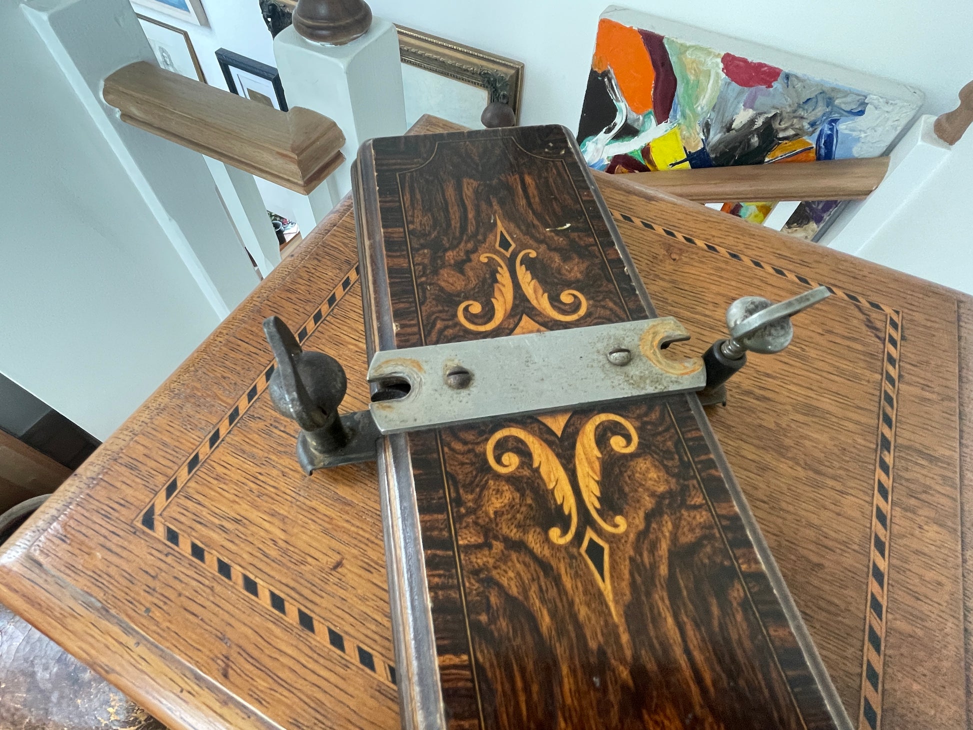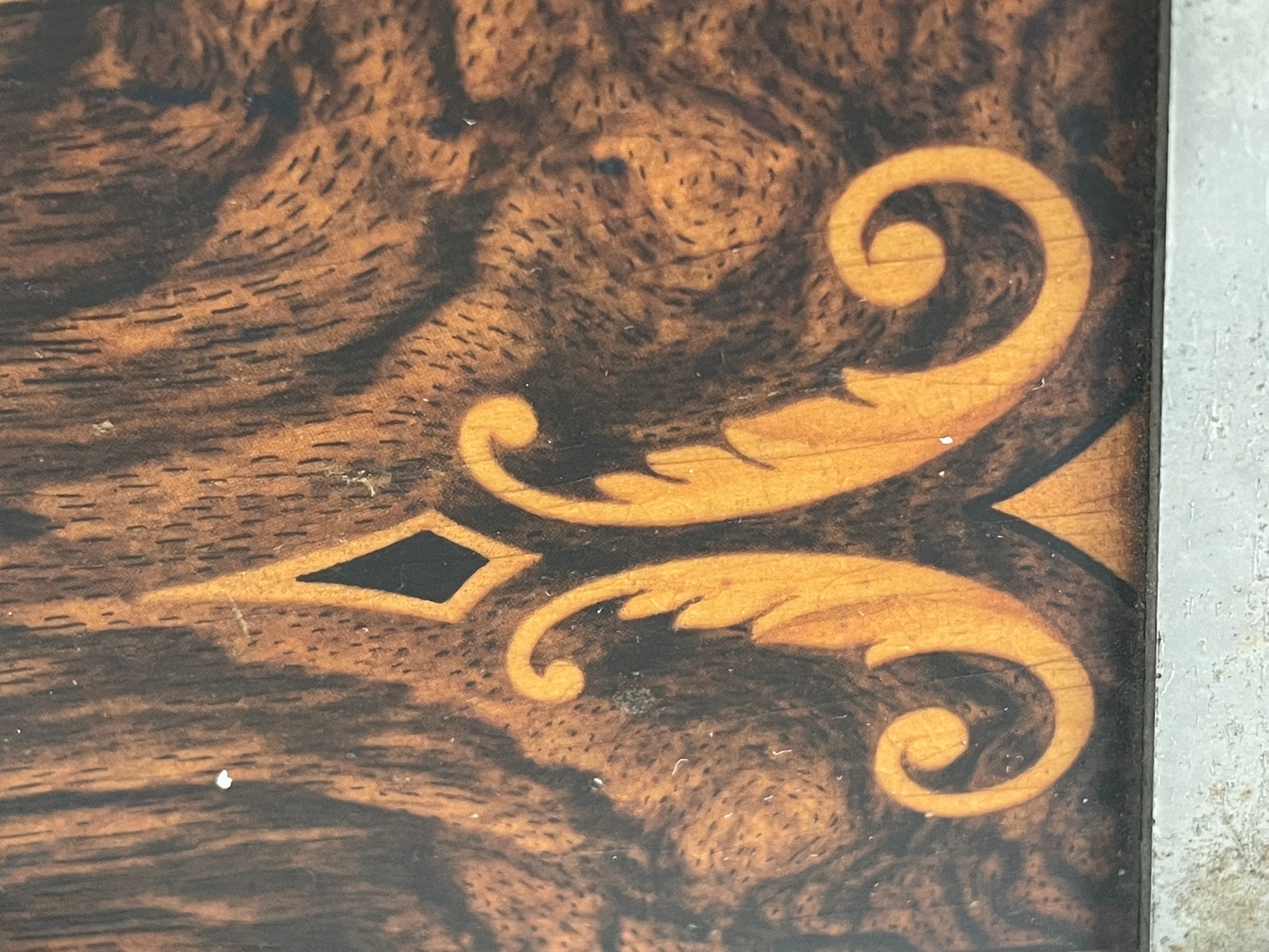 Material: Veneered hardwood with inlay, steel clamp fittings