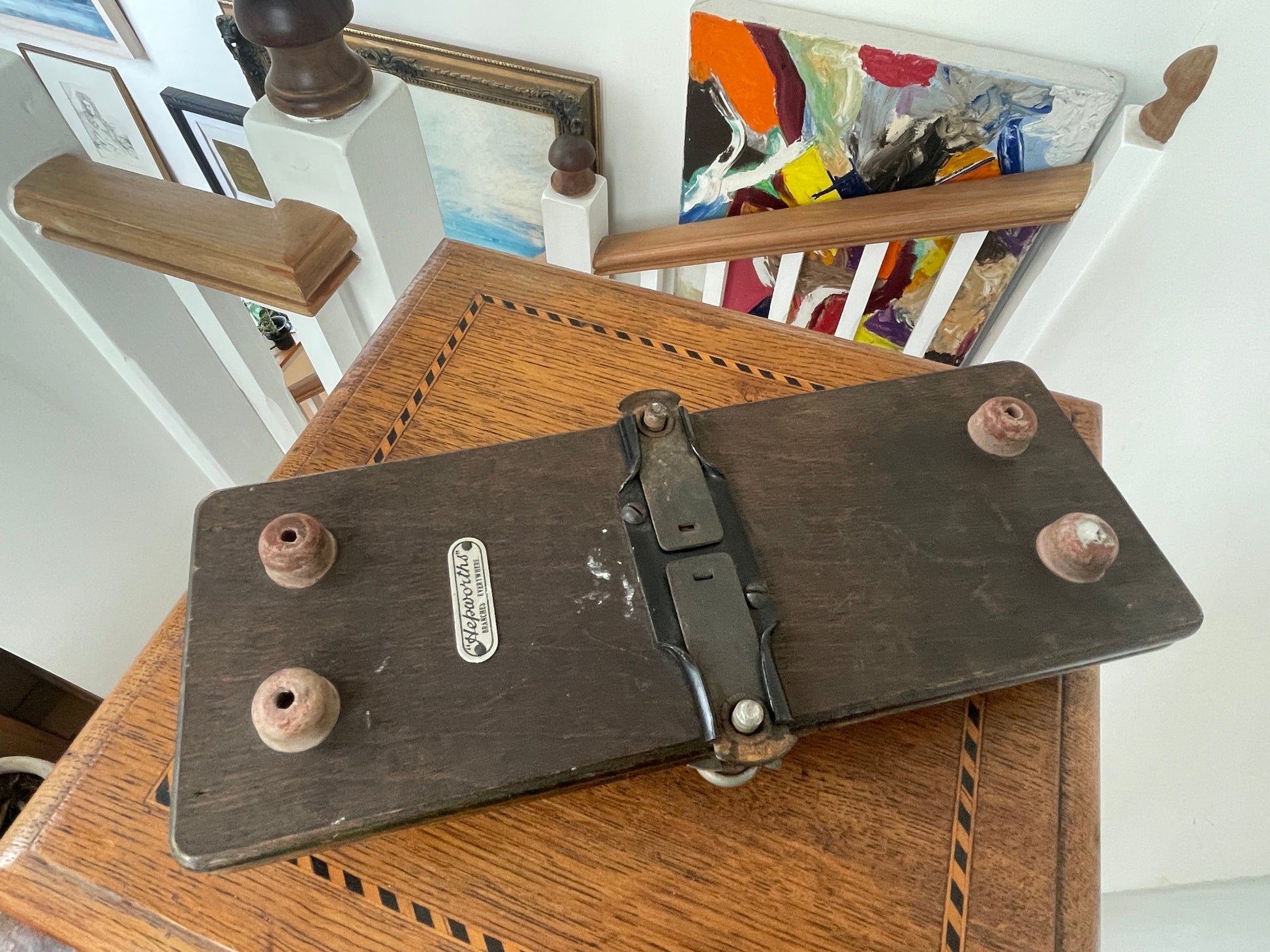 These tie presses were sold alongside Hepworths suits and haberdashery as part of a gentleman’s dressing room set, helping to keep silk ties crisp and uncreased. Today, they are sought after both as collectible menswear memorabilia and as stylish vintage décor.
