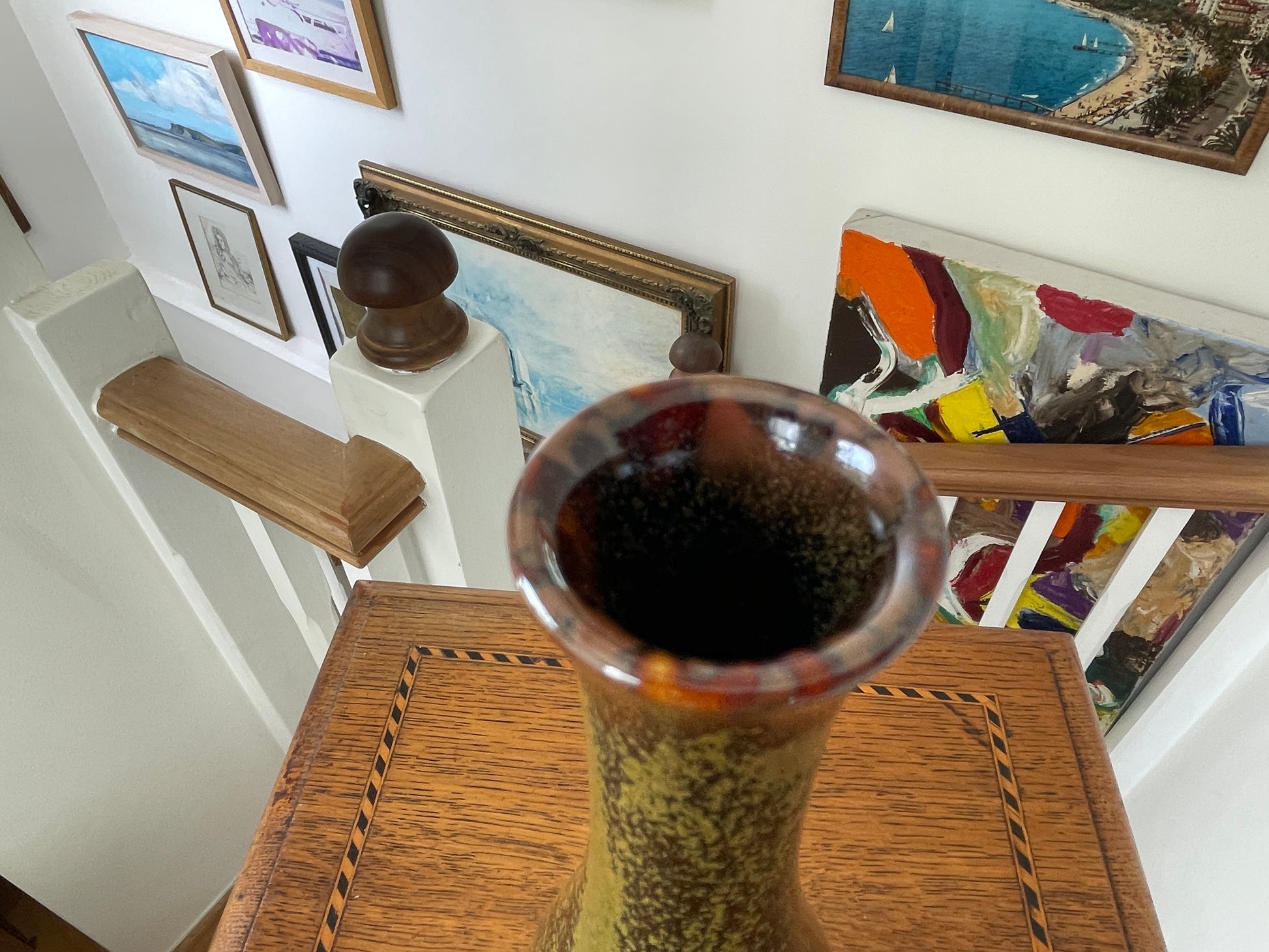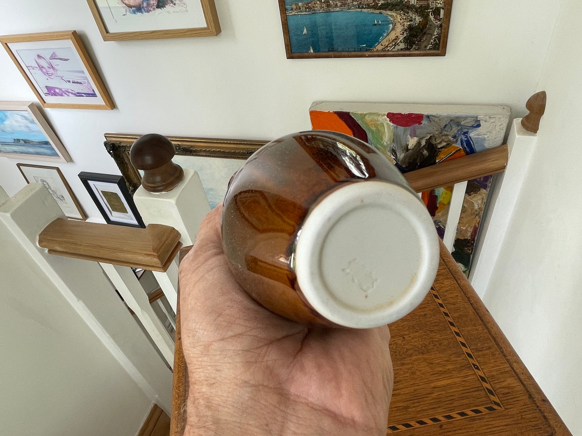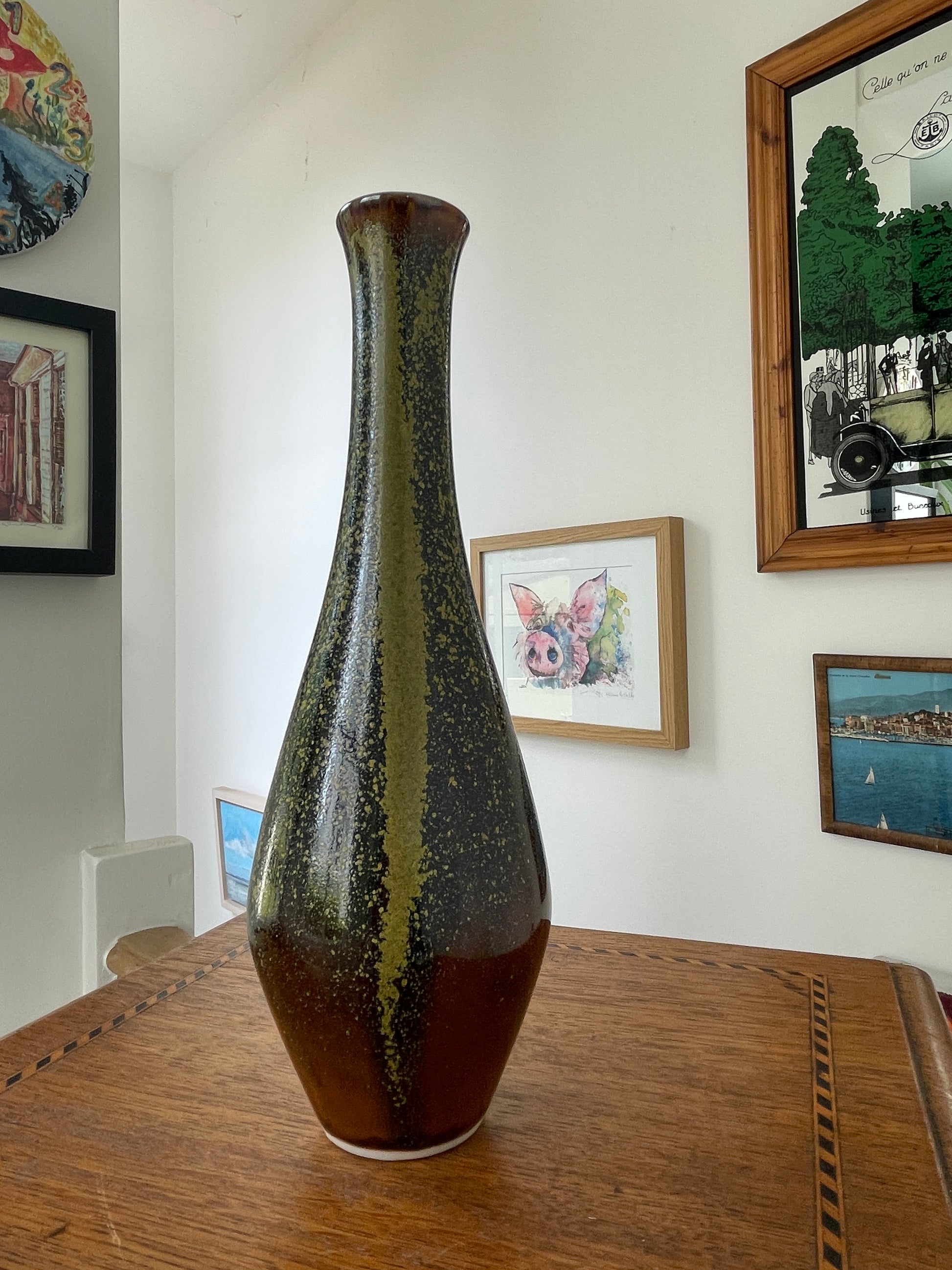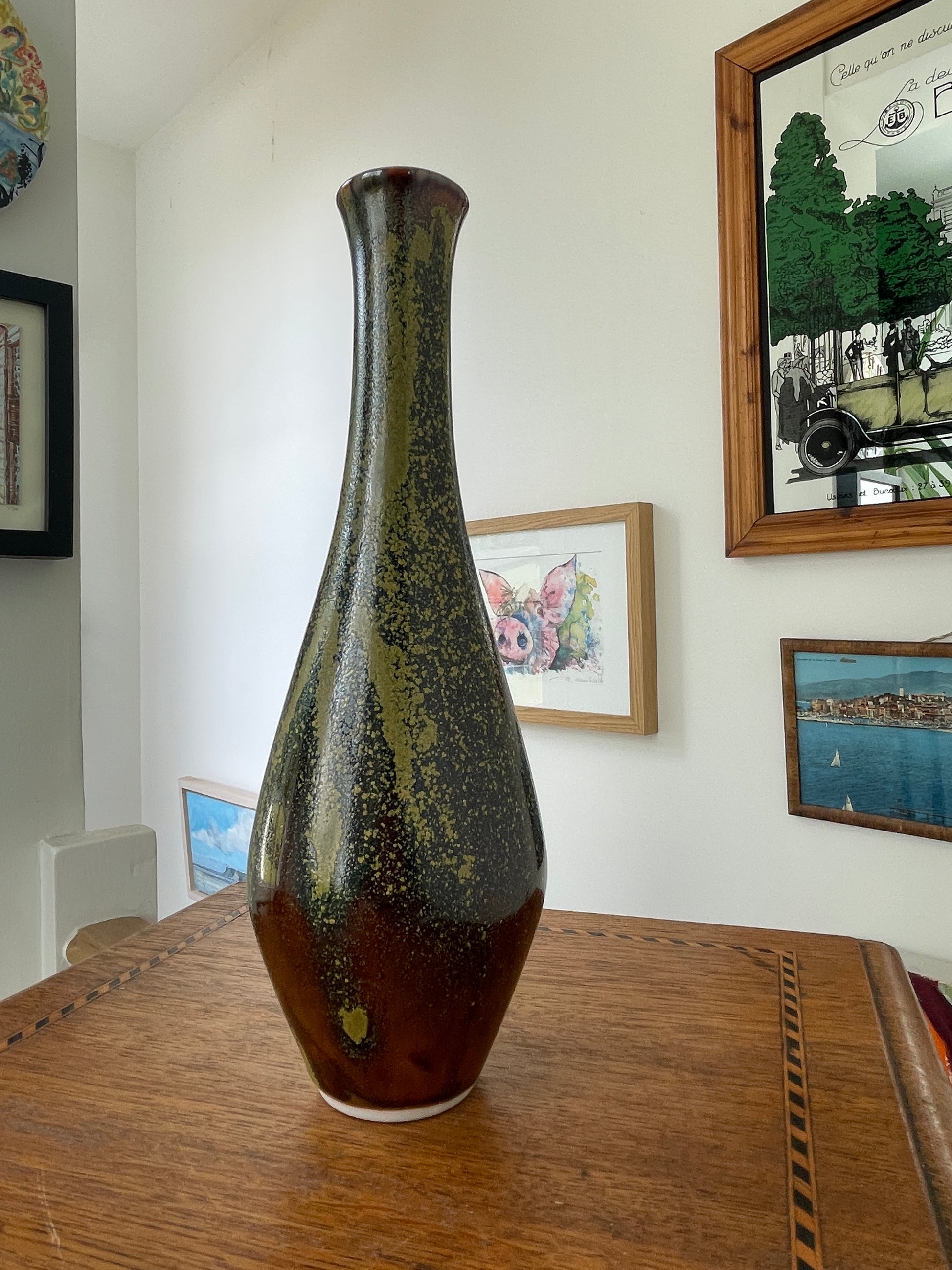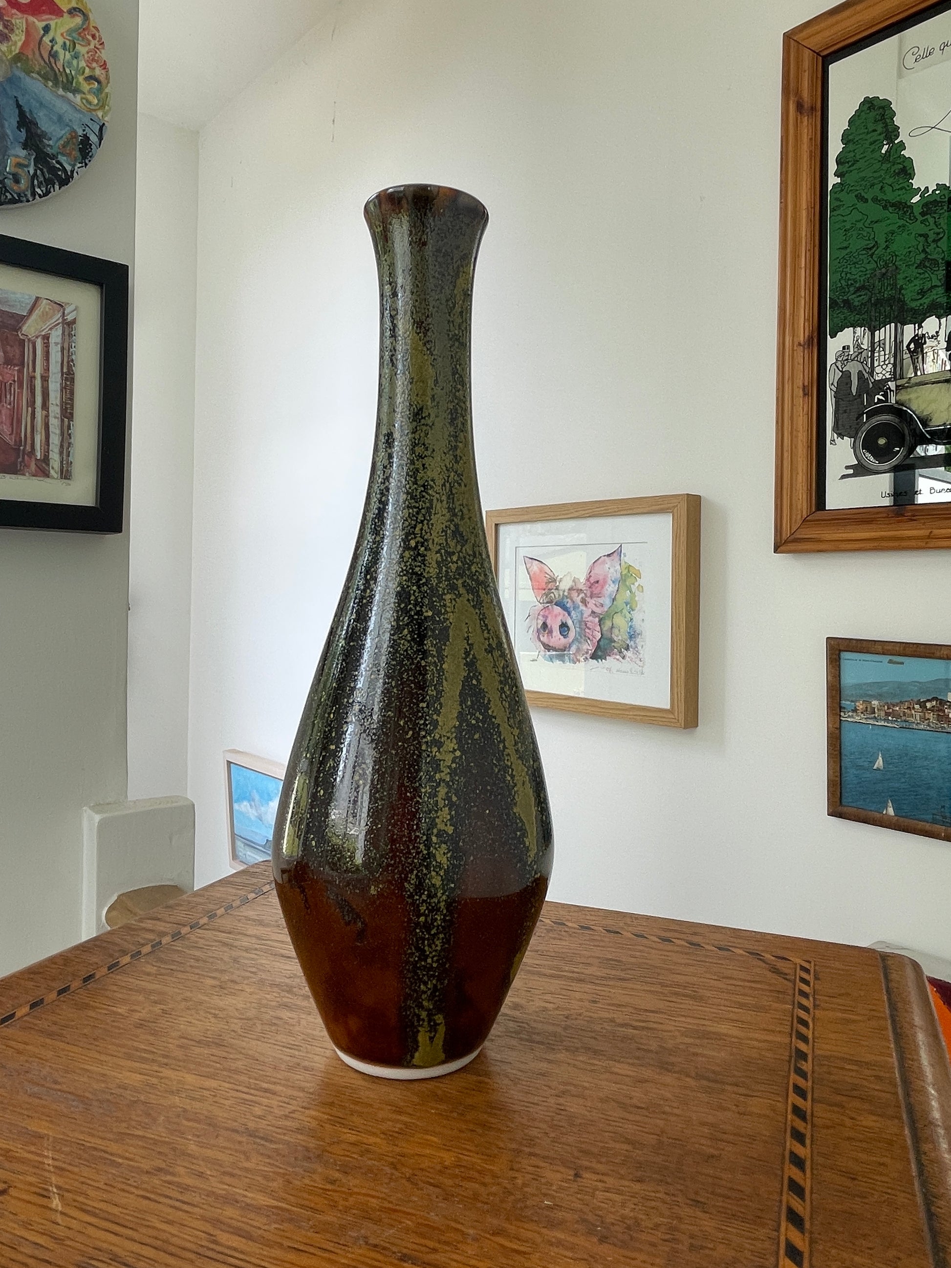 Vintage Japanese Studio Pottery Vase with Signed Wooden Box, 22cm Tall Glazed Art Pottery, Mid-Century Mingei Style