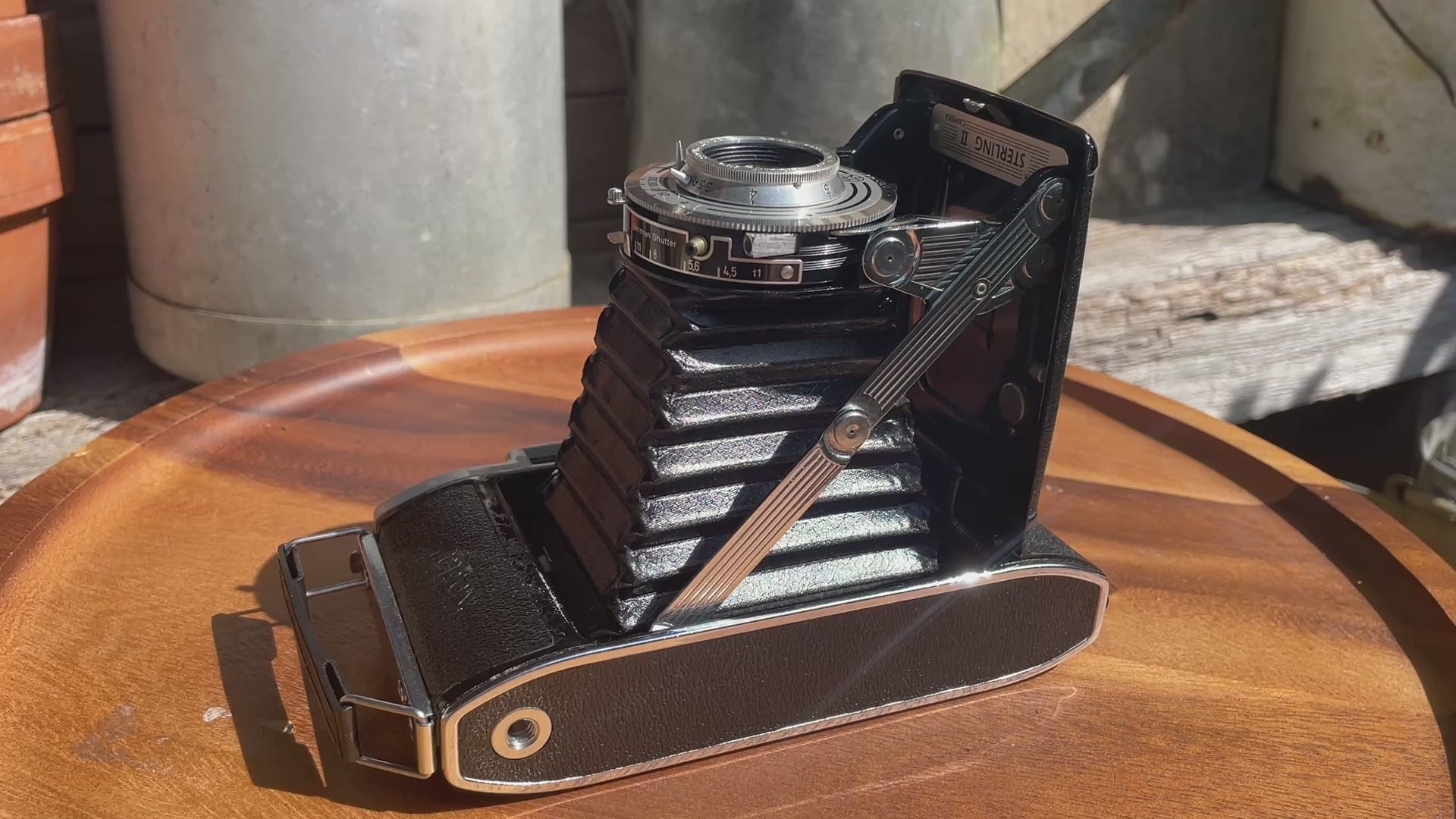 With its sturdy metal-and-leatherette body, pop-out bellows, and classic folding mechanism, the Sterling II is both functional and beautifully designed—a perfect centrepiece for a vintage photography collection.