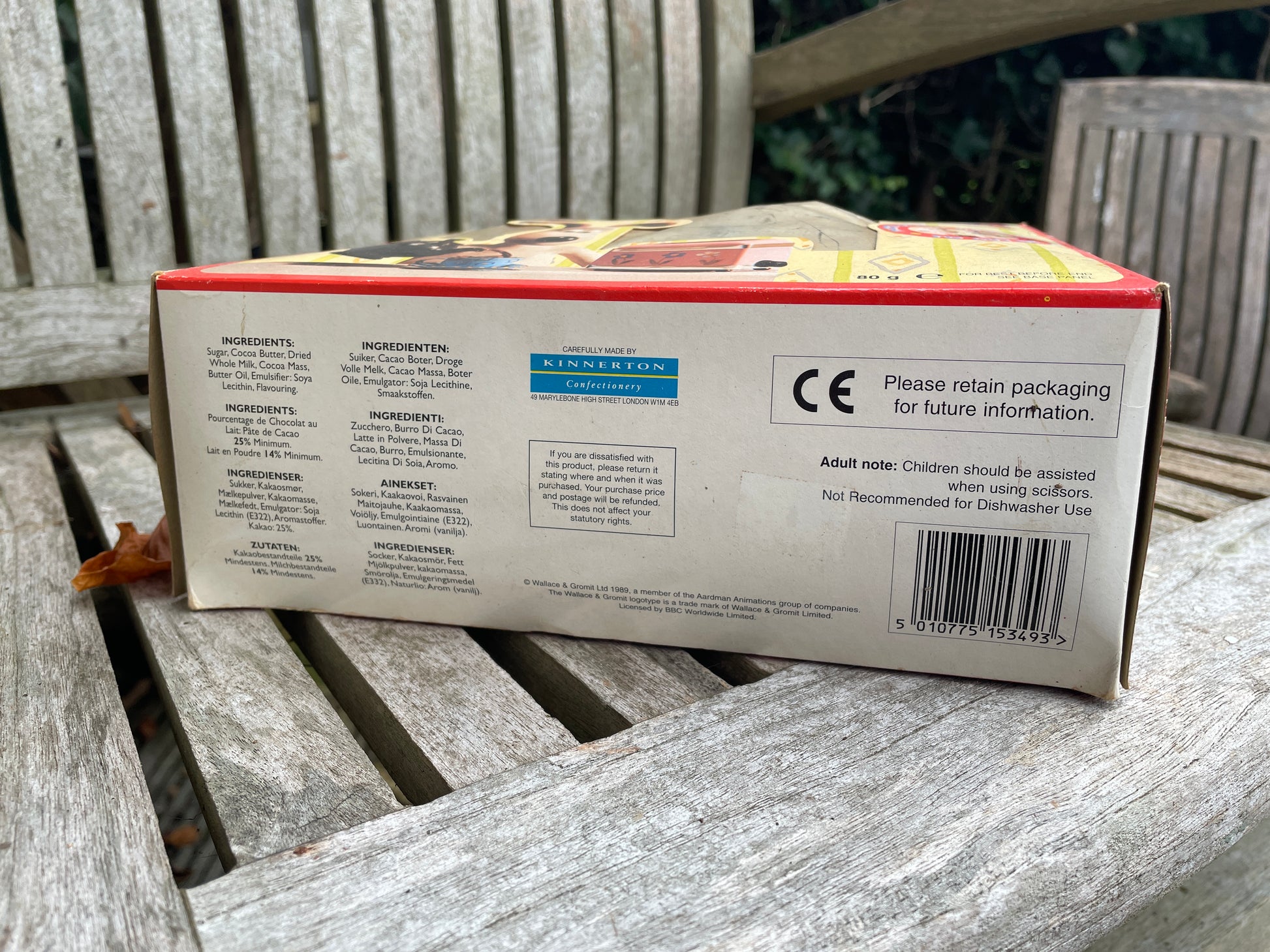 This is a bit grotty but super rare. The Wallace and Gromit breakfast set comes with a ceramic tea mug, Ceramic egg cup and a chocolate egg in each. The eggs are the original eggs so not at all edible and are quite horrible but for a collector this is gold.