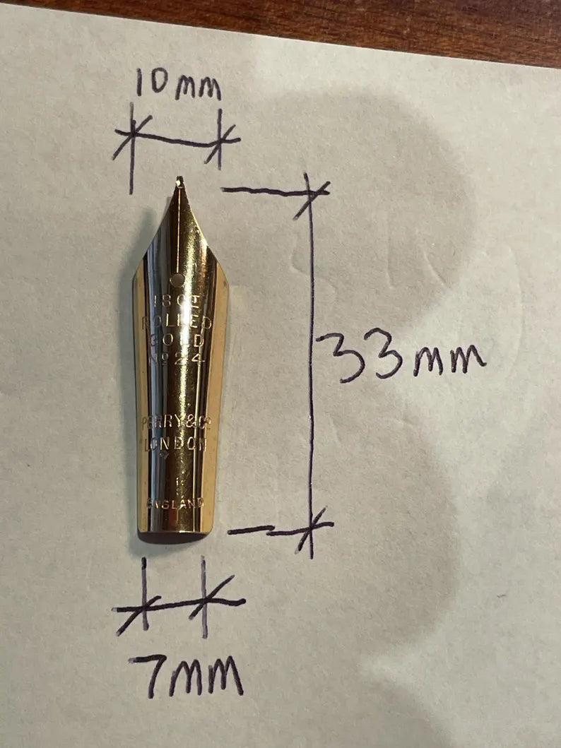 Here we have an 18ct Rolled Gold No. 24 pen nib by Perry and Co. of London